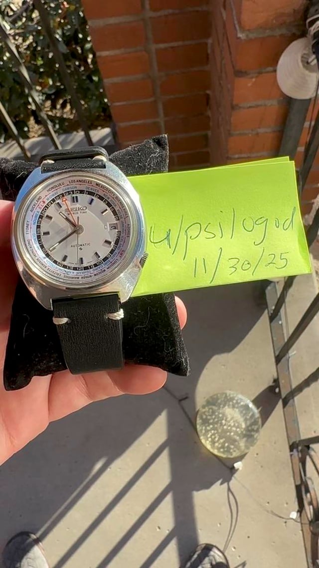 Hello WatchExchange, I am selling my Seiko 6117-6409 World Time GMT from the 1970s. It does not have the original bracelet, but comes with a leather strap. Dial in great shape for age. Payment can be made via Venmo or Paypal FF. Asking $550 insured shipping to Continental 48 US States. Updated time stamp on video. Thanks for looking.