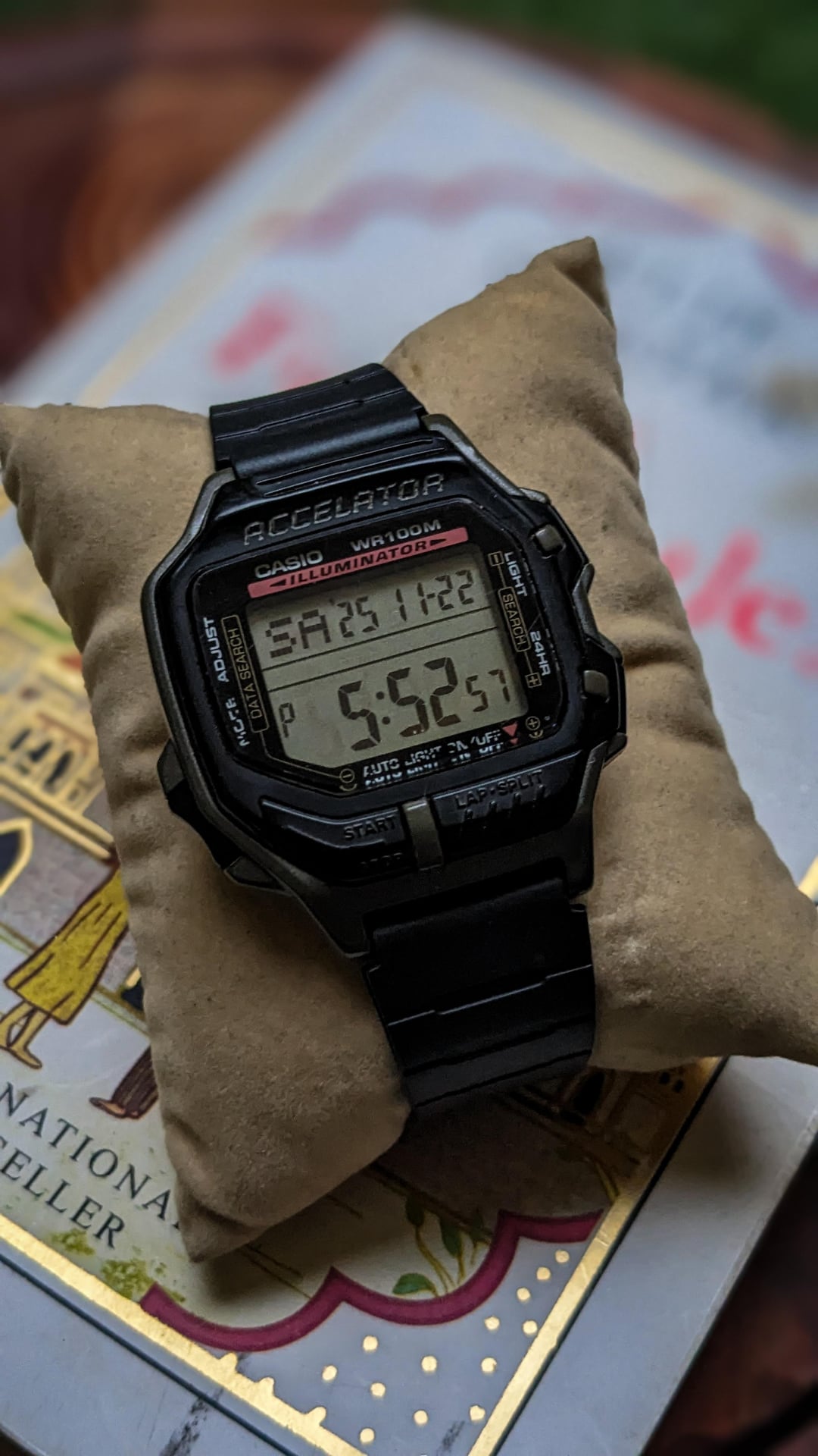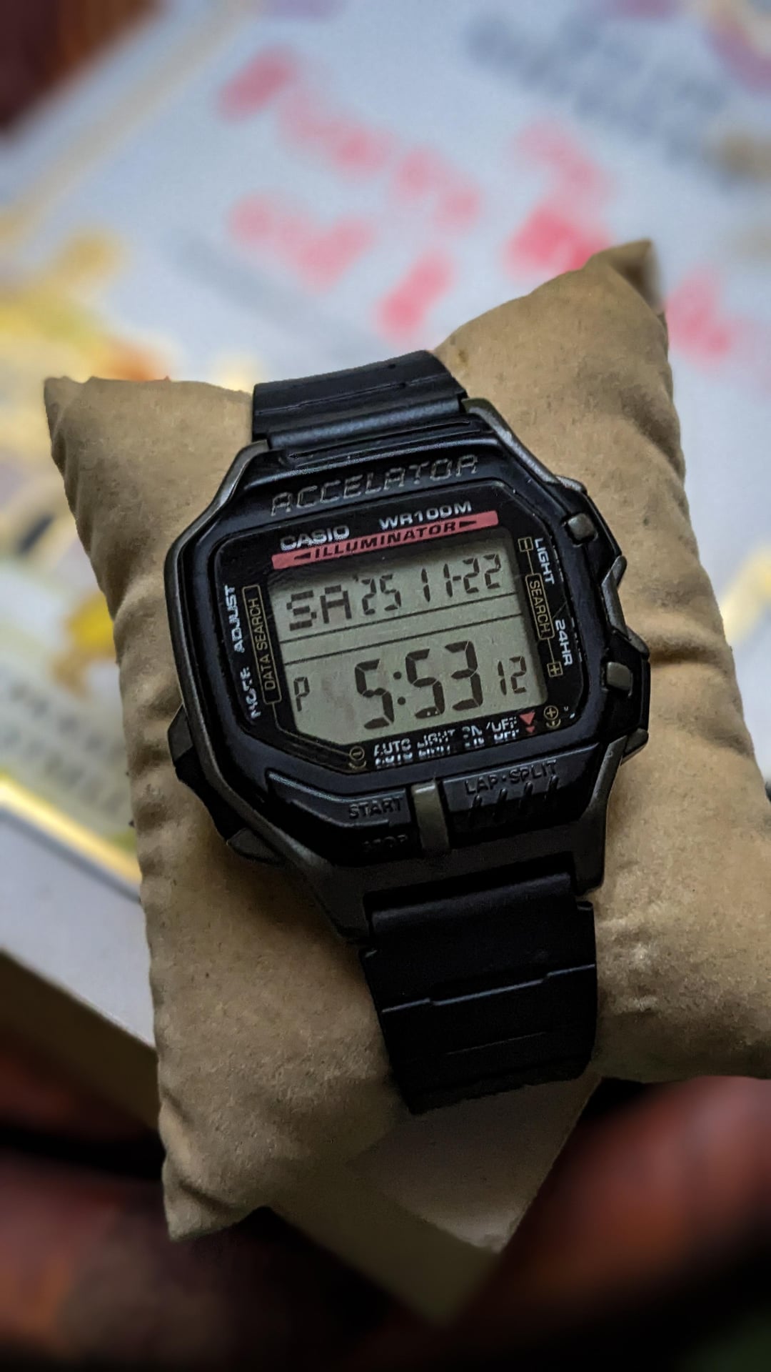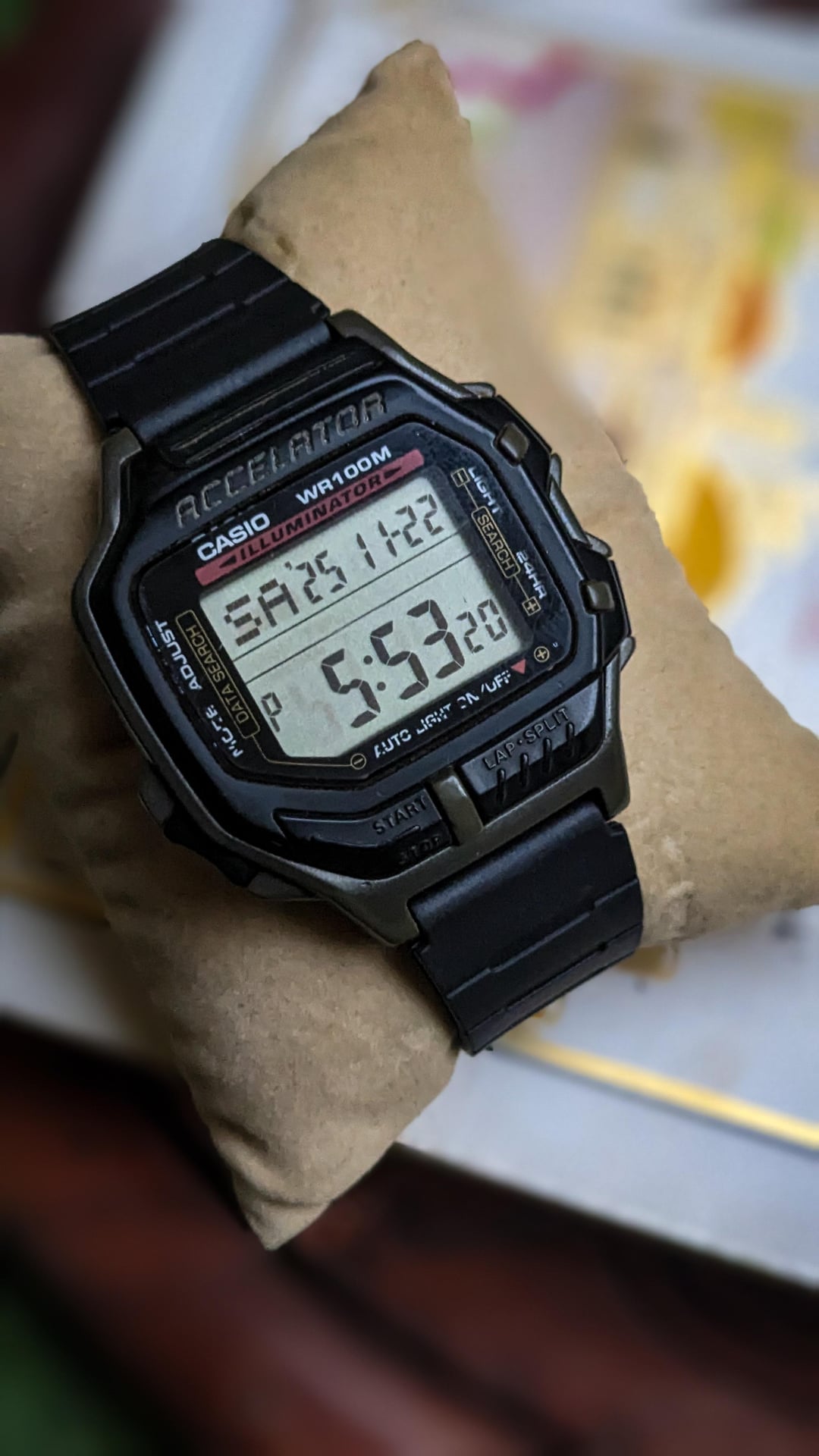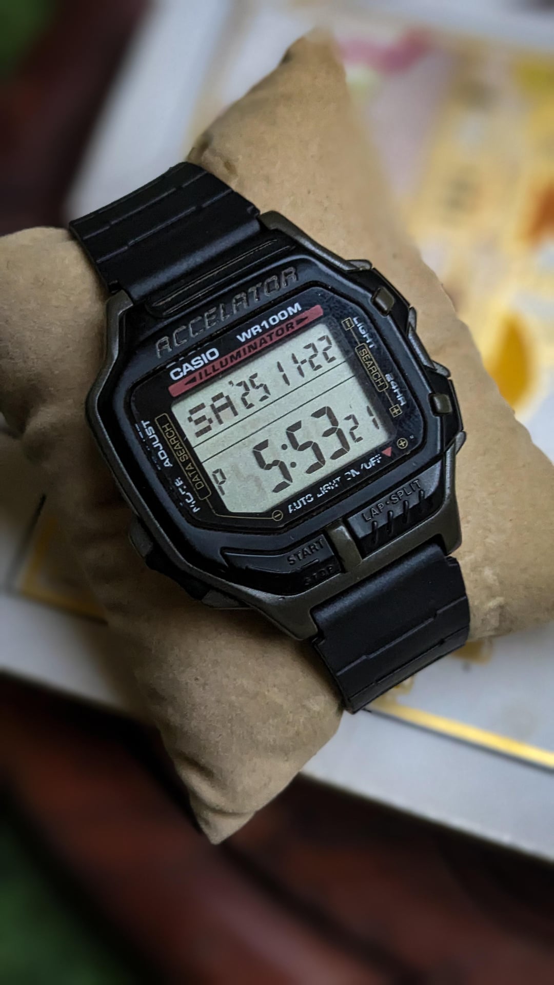 Hello everyone, Up for sale is a rare and highly collectible Casio Accelerator ACL-200, featuring Module 1531. Produced exclusively for the Japan Domestic Market (JDM) in the mid-1990s, the ACL-200 is known for its bold sports styling and advanced lap memory system, designed originally with runners in mind. It has since become a sought-after piece for serious Casio collectors. Key Details • Brand: Casio • Model: ACL-200 (Accelerator Series) • Module: 1531 • Market: Japan Domestic Market (JDM) • Era: Mid 1990s • Features: – Alarm – Chronograph – Lap Memory 50 – Countdown Timer – Dual Time – EL Backlight – WR 10 BAR (100m) • Condition: Fully functional; good overall cosmetic condition A fantastic example from Casio’s golden age of 1990s digital sports watchesmade. Perfect for collectors of vintage Casio, JDM releases, and unique digital pieces. 💵 Price: 120$ 📸 Timestamp: [Imgur: The magic of the Internet](https://imgur.com/a/OsoJqn4) 📩 Please comment here before sending a PM.