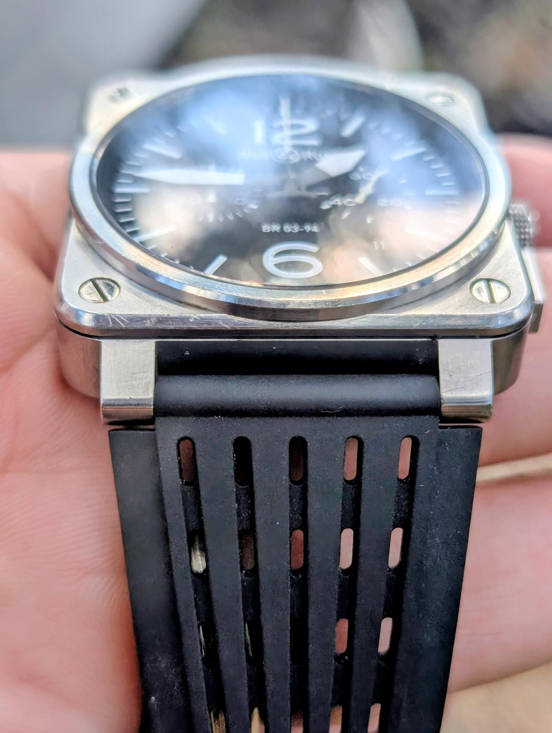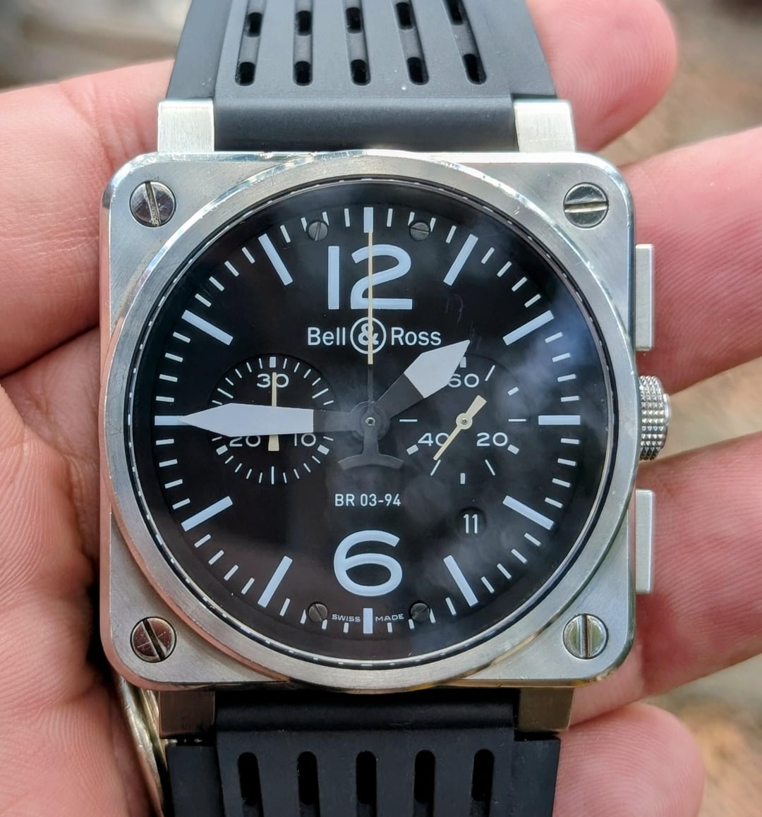 B&R - Bell and Ross BR 03-94 Chronograph Stainless Steel Automatic Reference#: BR03-94-S $2100 shipped CONUS Watch and card only with two additional custom straps. Watch shows some wear with a few minor nicks, but it's a solid tool watch with no major issues and is priced accordingly. Nothing a polish can't cure. * Stainless Steel * Case Size 42 mm x 42 mm * 24mm lug width * Automatic * Features Chronograph, Date, Second Hand * timestamp: [https://imgur.com/a/7tKpELz](https://imgur.com/a/7tKpELz) * Payment via PP or Venmo. PPGS with an additional 3% on top