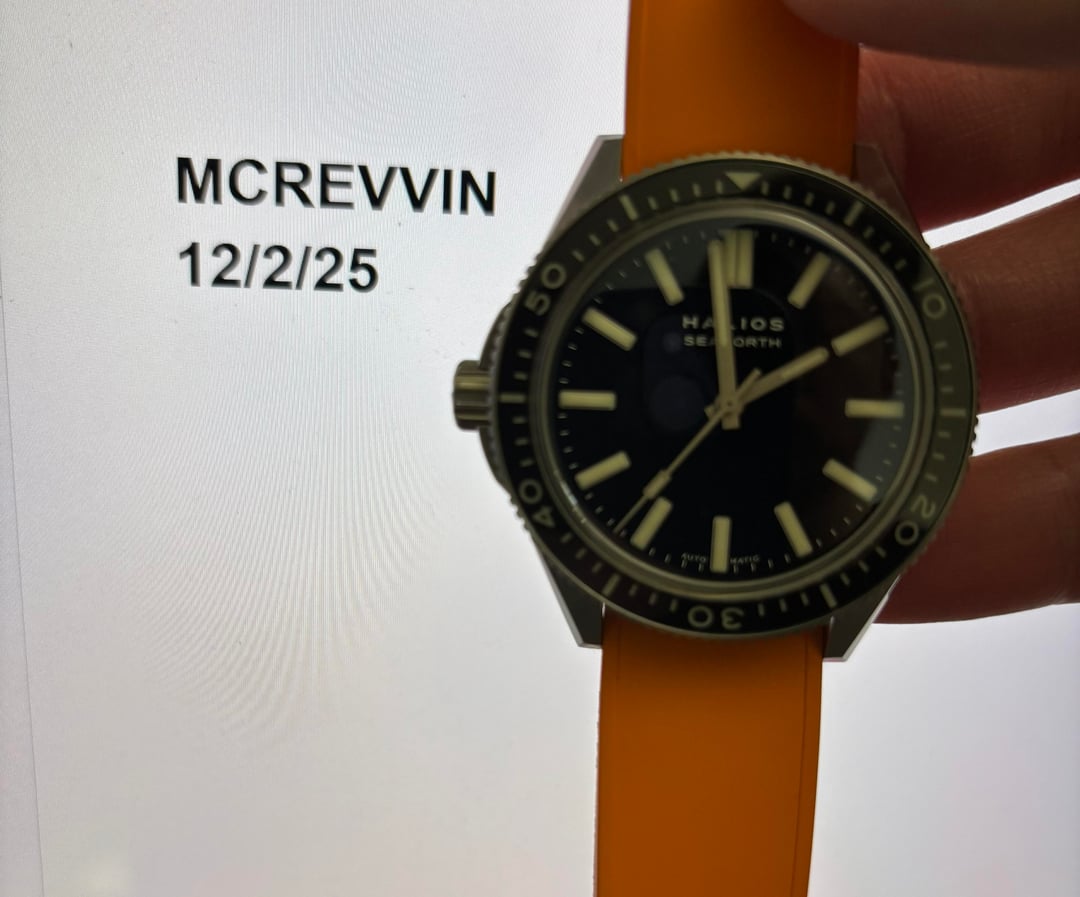 Please see the details below. I am the original owner and purchased directly from Halios. Model: Halios Seaforth IV Destro Color: NF Specs: * Case Size: 41mm * Thickness: 12.4mm (including crystal) * Material: Stainless Steel * Automatic Caliber: SW200-1 * Power Reserve: 40 hours * Lug width: 20mm * Crystal: Sapphire * Water Resistance 20 ATM Purchase Year: August 2025 Purchase History: Halios Includes: Full Kit (box, pouch, full links, bracelet, orange rubber strap) Condition: 9.5 / 10; Do not see any blemishes on the case / bracelet. Very minor marks on lugs from occasional strap changes. Asking Price: $915 shipped No Trades Shipping CONUS only Local Pick Up OK; located in SF / LA