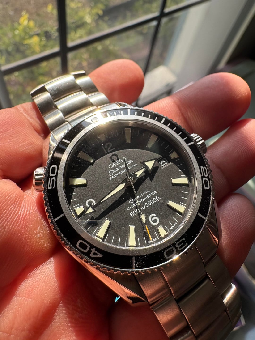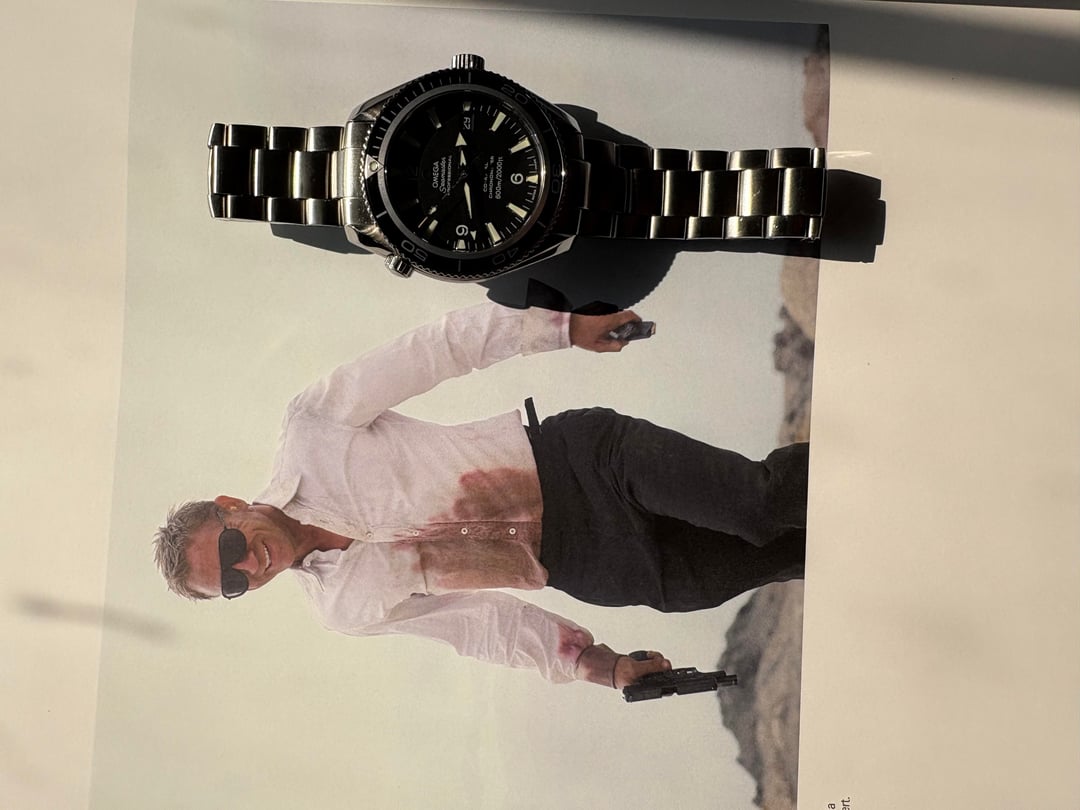 Sale price: $2750 shipped conus Accept Zelle, wire, PayPal Up for sale Omega Seamaster 2201.50, a timepiece that channels the unmistakable style and resilience as seen in the James Bond Quantum of Solace movie. Key Features * 42mm stainless steel case with unidirectional black ceramic bezel * Black dial with luminous markers for superior legibility * Omega Co-Axial Calibre 2500 * 600m / 2000 ft water resistance. * Sapphire crystal with anti-reflective coating * Helium-escape valve, a signature Seamaster detail featured throughout Bond history * Stainless steel bracelet with secure folding clasp A modern classic that captures the cool confidence of Bond himself—timeless, rugged, and effortlessly sophisticated.