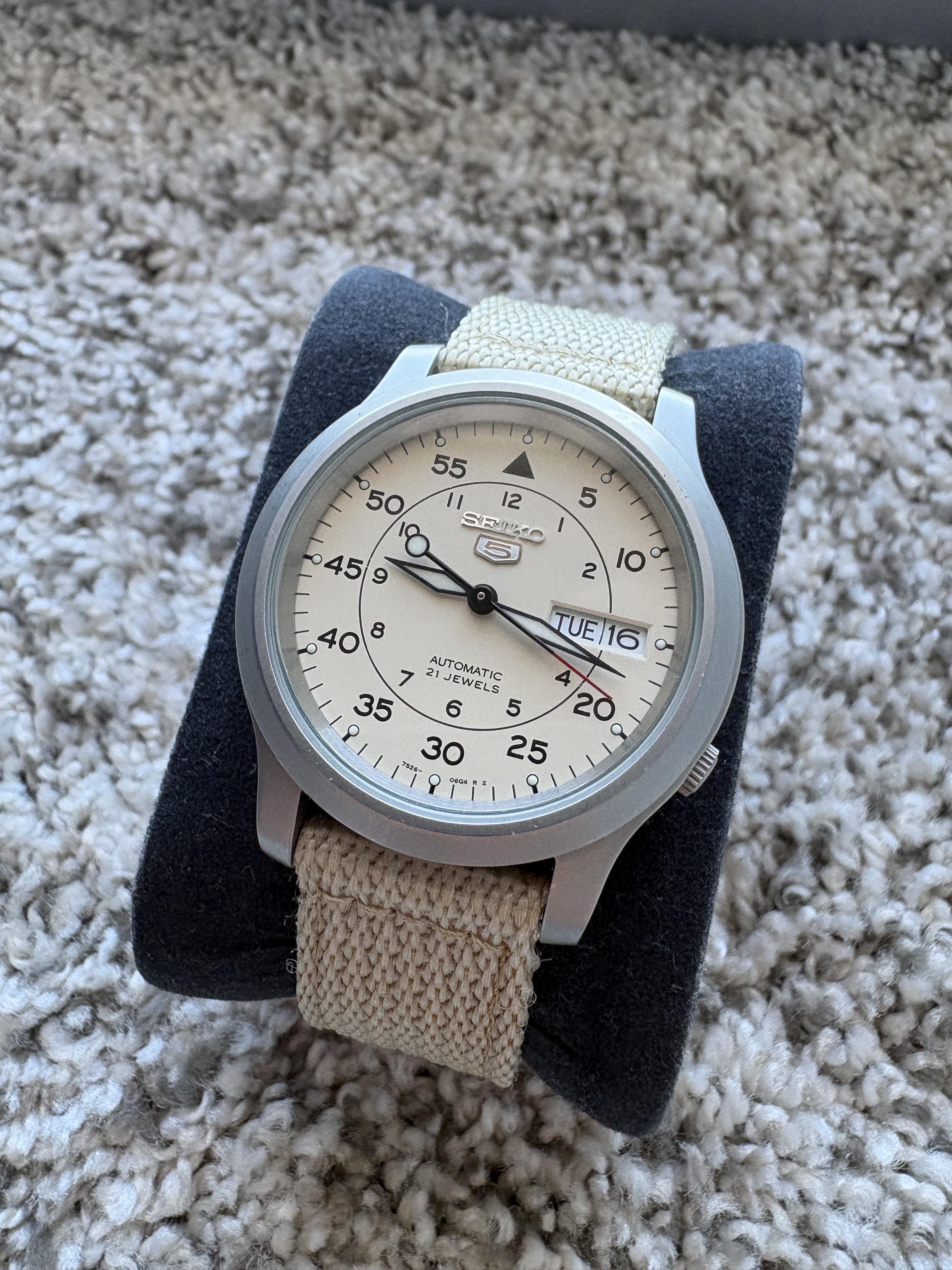 italiano![[WTS] Seiko SNK803 Biege Dial 1](https://cdn-cf.watchpatrol.net/600x600/img/full/d3cb26f31b9a6429a2602a42f4d1d0786af803c8.jpg)