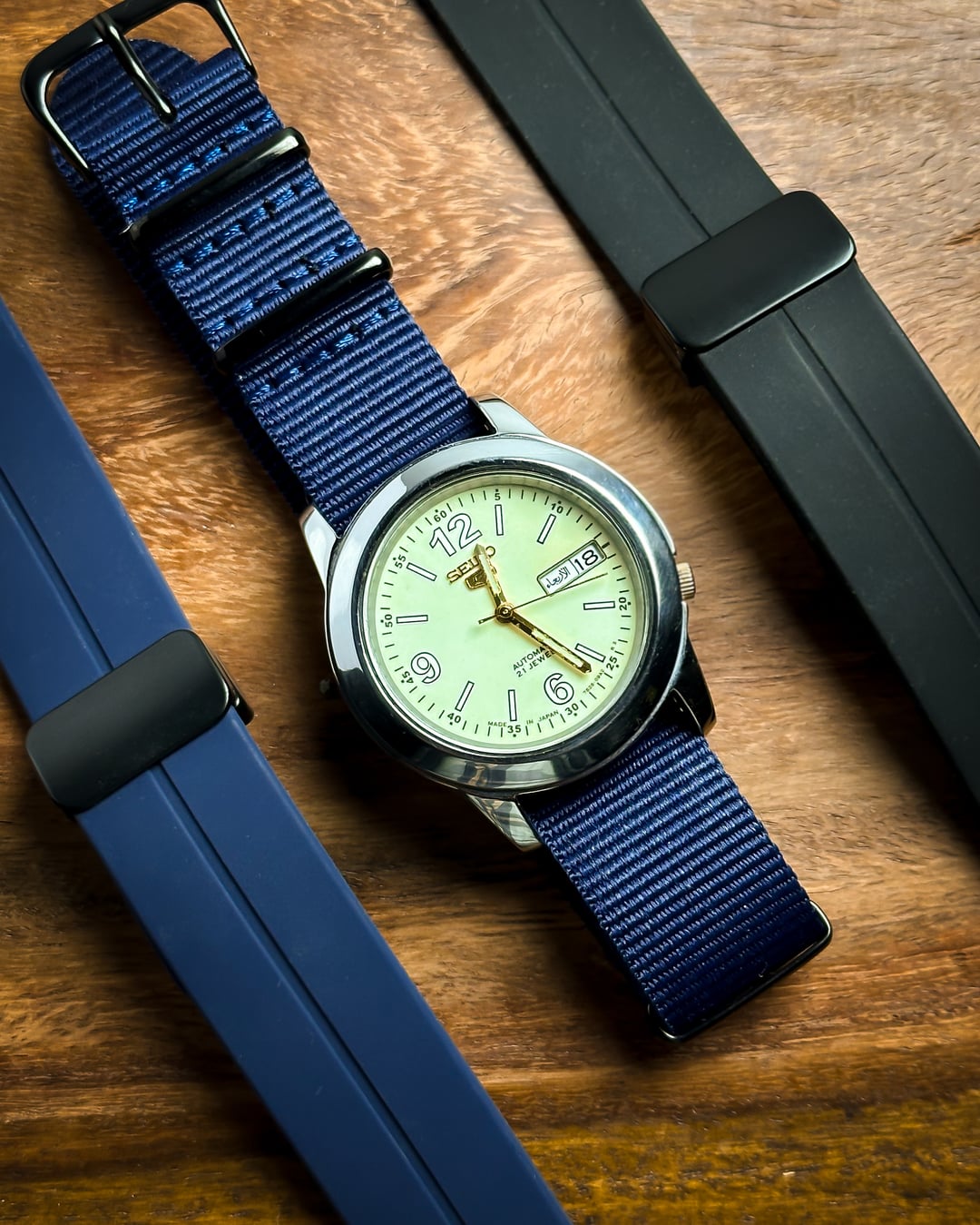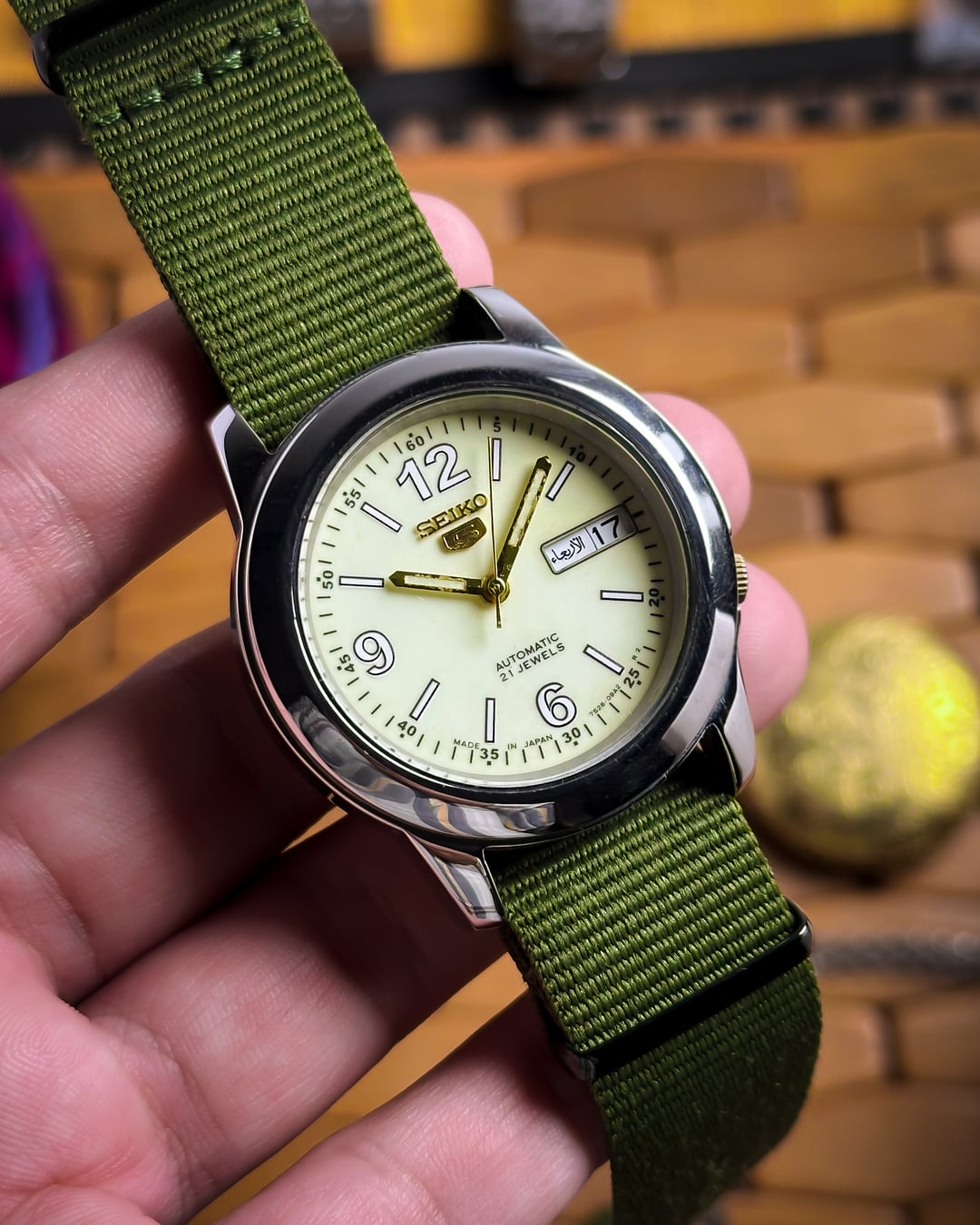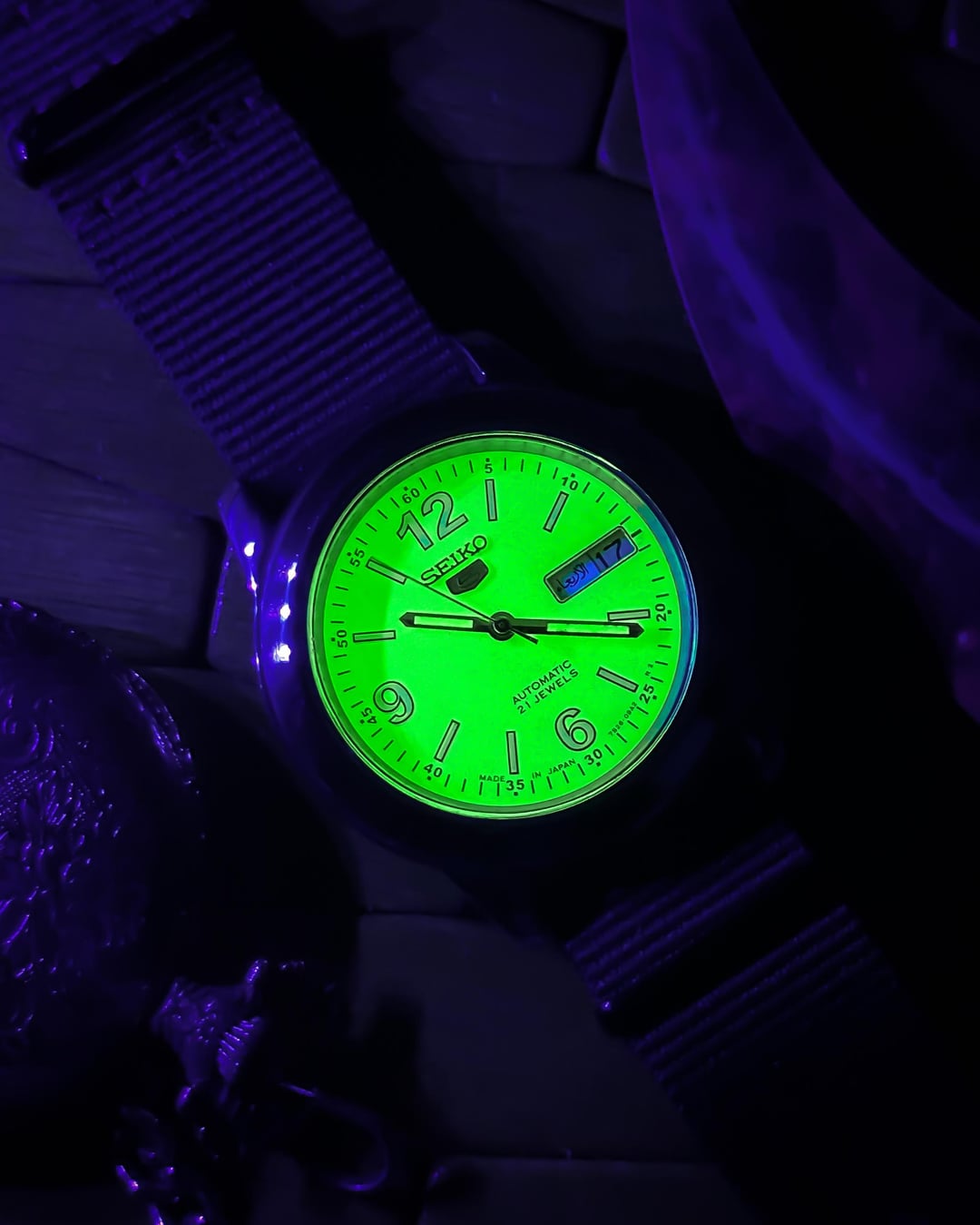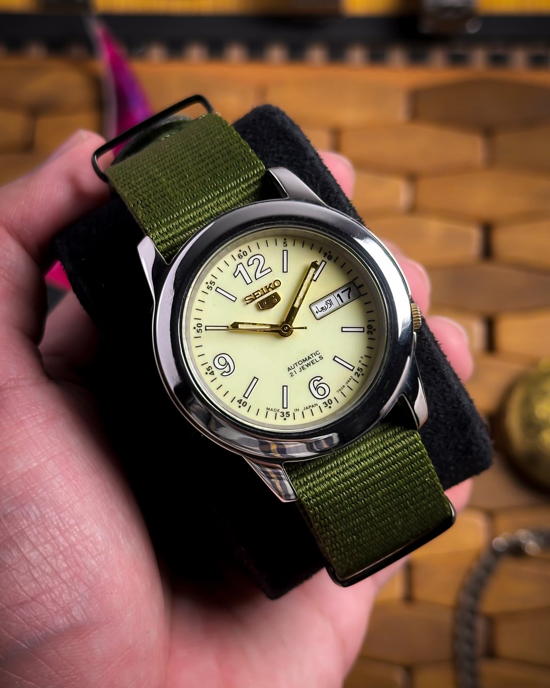 [Timestamp](https://postimg.cc/Mn8THBZs) Hey Watchexchange! This is the **Nuclear Lume**—a nickname we gave this automatic Seiko 5 to celebrate its **stunning, highly legible full luminous dial**. This watch stands out with its robust, classic size and bright visibility, making it a perfect field watch or high-visibility everyday piece. The dial is the star: a **full lume dial** that glows beautifully. It features **golden pencil hands** and **baton indices**. There are **multiples of 5** around the minute markers, enhancing its field watch aesthetic. The day-date complication is at 3 o'clock, and the days are shown in English and Arabic. The case is a robust classic style topped with a **Hardlex crystal**. This model features an **exhibition case back,** allowing you to view the dependable **21-jewel automatic Caliber 7S26** movement**.** This watch offers excellent versatility and comes with a **military green NATO strap** attached. **The buyer gets an extra strap worth $10 for free** and can choose between the sporty **blue NATO strap** or the **black/blue resin magnetic strap**. **🔹 Key Dimensions** * Case Diameter: **38mm** (without crown) * Lug-to-Lug: **43mm** * Thickness: **11mm** * Lug Width: **20mm** 💵 **Price: $150 shipped** 📦 **Payment: PayPal F&F** or G&S (**+4.5% fee by buyer**) or **bank wire (US banks accepted)** 📩 DM me for more pics or a custom timestamp. If you’re after a high-visibility, robust Seiko 5 with a full luminous dial and great strap options, this watch delivers exceptional value. Follow my [**Instagram**](https://www.instagram.com/everistwatches/) and **Reddit profile** for more **vintage drops**.