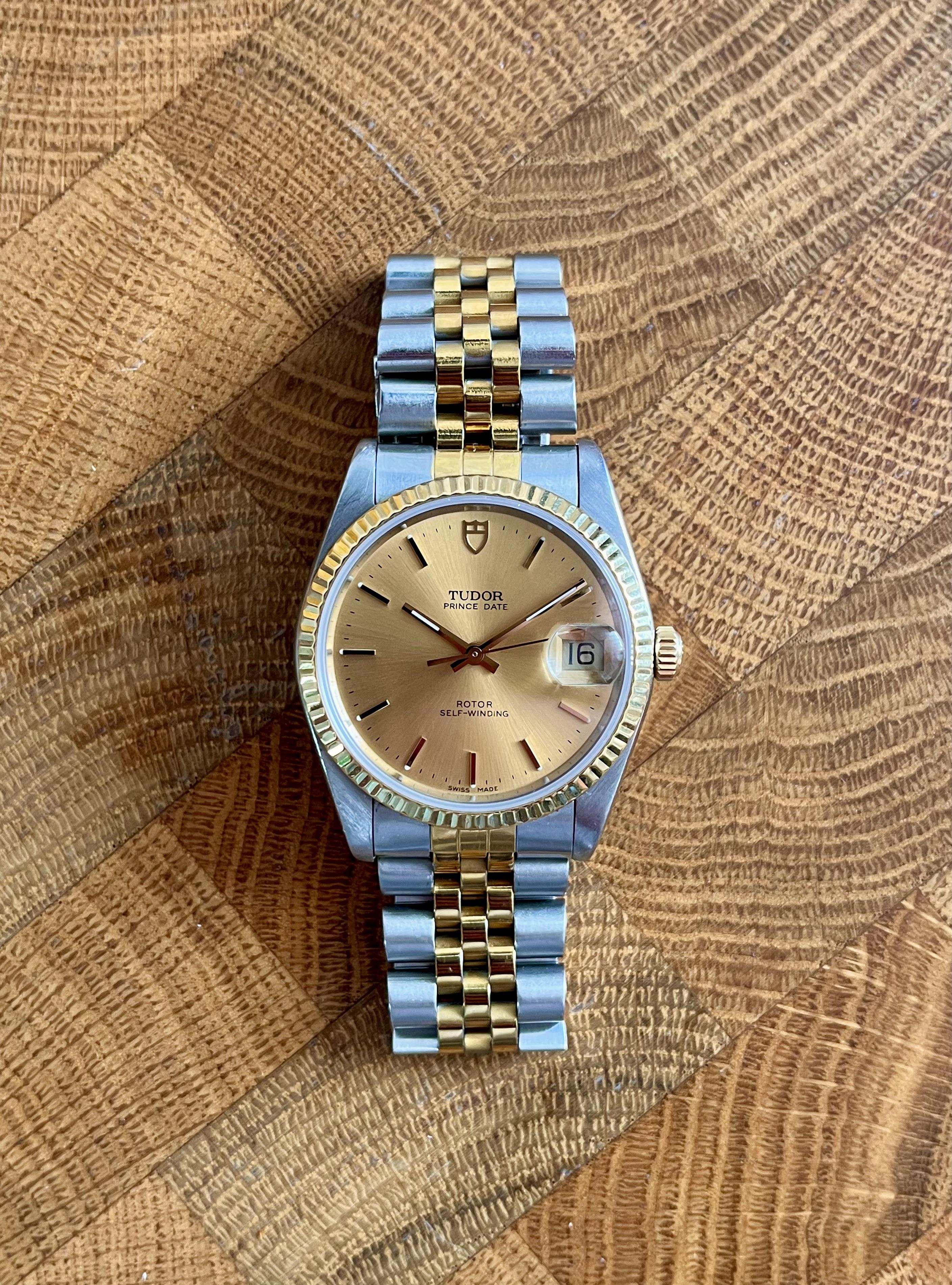 Hi all, Up for sale is a genuinely special watch. I'm not exactly what sets it apart, since this formula has been around for _decades_, but once you wear it, it all makes sense. The 34mm Oyster case wears more like a 36, the thin case just melting into your wrist. The pristine gold sunburst dial always catching the light paired with the 18kt gold bezel is a match made in heaven. I know the discussion of "value" is highly subjective, but I think these neo-vintage Tudors are some of the best value out there. This one is a great example, especially as it was serviced by Rolex in 2019 and comes with the original box and bracelet! As an extra bonus, this one was also issued as a "25 years of service" gift from IBM (not to me, but still cool haha). I'm also including an aftermarket bracelet, since the original folding link is hard to resize. # Media - [Timestamp, Pics, Macro video](https://imgur.com/a/MhYYNFi) # Price - ~~$1600~~ $1499 shipped to the CONUS - Local meetup in the greater Denver area available at a discount