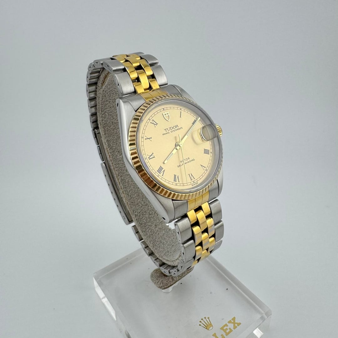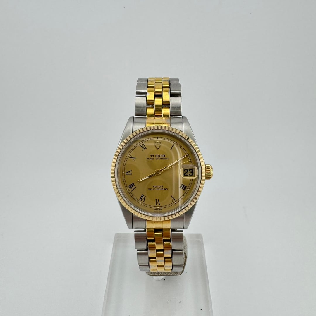Founded in 1926, in Geneva, Switzerland, by Hans Wilsdorf, Tudor is a very close sister to the most well known watch brand in the world, Rolex. Hans Wilsdorf, also the founder of Rolex, created the brand just seven years after Rolex had moved to Switzerland. The intent was to create a more affordable watch while still maintaining that Rolex quality. For a long time, Tudor used off-the-shelf movements with cases and bracelets produced by Rolex. Today, Tudor is still a close sister company to Rolex, providing exceptional watches with great heritage at a more affordable price. This watch is the Prince Oysterdate. Reference 72033. It is the 32mm sized two-tone model. It's smaller size gives it a classic look wearable by both men and women! Overall, this watch is in (A) Very Good Condition. The biggest signs of use is the plating wear on the two-tone bracelet. \- **Ref No. :** 72033 \- **Serial No./Year:** B379987-/-1991 \- **Case:** 32mm diameter, 17mm lug width, 9.75mm thickness, 39.25mm Lug-to-lug. Stainless Steel, 14K Gold Bezel \- **Crystal:** Sapphire \- **Movement & Accuracy:** Caliber: Tudor Auto Prince (ETA 2824-2 Base) Complications: Quickset Date Measured Accuracy: -3 sec/day. Amplitude: 276° Beat Rate: 28800 A/h \- **Band:** Original Tudor Bracelet. Will Fit Wrists up to 7.25in \- **Condition Rank:** (A) Very Good Condition. Please See Photos and Condition Rank Guide \- **Country of Manufacture:** Switzerland **Condition Rank Guide:** \-**NOS**: Item is in **New Old Stock** condition (NOS). Shows little to no signs of wear apart from some minor handling wear. \-**A+**: Item is in **Excellent** condition. Micro-scratches can be seen on the sides of the case, bezel, and/or bracelet. No pitting/gouges on the case or scratches in the crystal. \-**A**: Item is in **Very Good** condition. Minor scratches and scuffs can be seen on the sides of the case, bezel, and/or bracelet. No pitting/gouges on the case or deep scratches on the crystal. \-**B**: Item is in **Good** condition. Moderate scratches and scuffs can be seen on the sides of the case, bezel, and/or bracelet. Minor pitting/gouges may be visible on the case. One or less deep scratches may be visible on the crystal. See photos. \-**C**: Item is in **Fair** condition. Heavy scratches and scuffs can be seen on sides of the case, bezel, and bracelet. Significant pitting or gouges are visible on the sides of the case and the crystal shows multiple deep scratches \-**NR**: Item is in **Non-Running** condition. Item is not functional. For parts or repair only. Asking $1,255. Acceptable Payment methods include PayPal Goods & Services, Bank Wire, or Invoice payable via credit card through my online storefront. Watch will ship free anywhere in the U.S. fully insured with signature tracking. Open to reasonable offers.