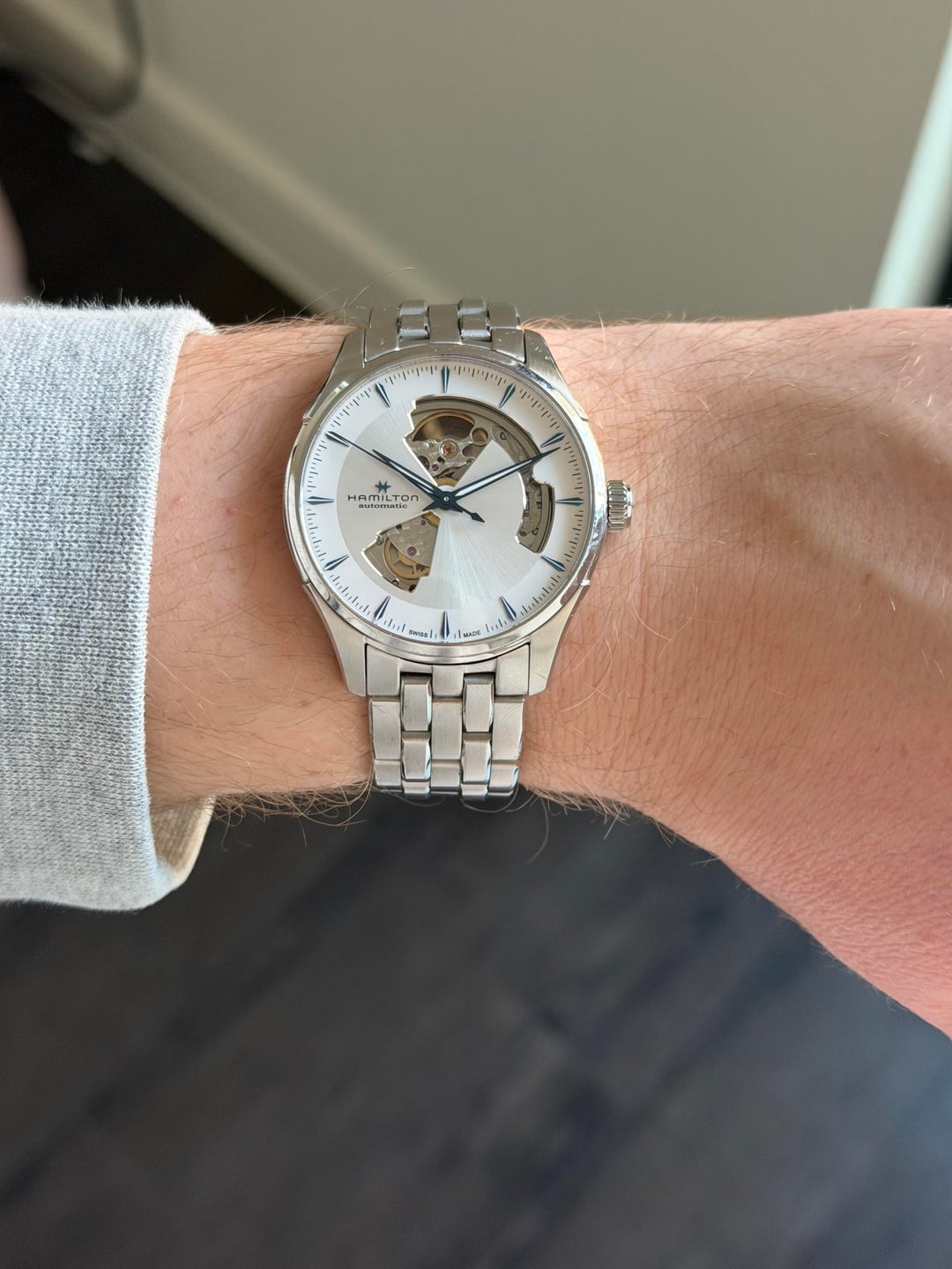 Hamilton Jazzmaster Open-Heart H326750. 40mm. 7.5” bracelet **$565** / Zelle, Venmo, or WU accepted. Timestamp: https://imgur.com/a/UtQv9jW I have tons of references on multiple platforms including WatchExchange. I am more than happy to show these.
