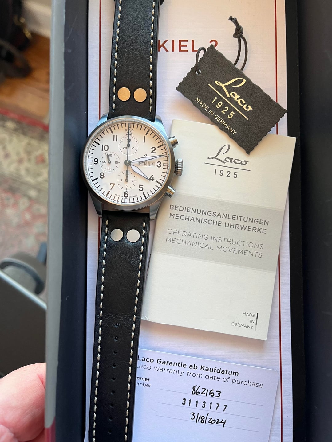 ![Thumbnail [WTS] Laco Kiel.2 Chronograph 43mm - Near Mint - Great White Dial - Warranty $1165 Shipped 9](https://cdn-cf.watchpatrol.net/120x120/img/full/481296fabf4944dc71bd3eba48486265790ad4b5.jpg)