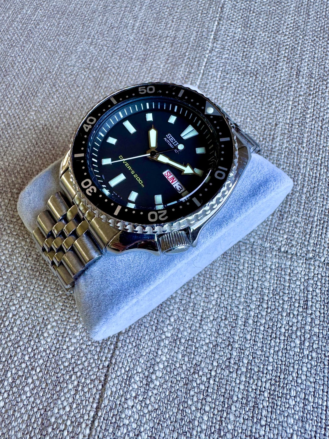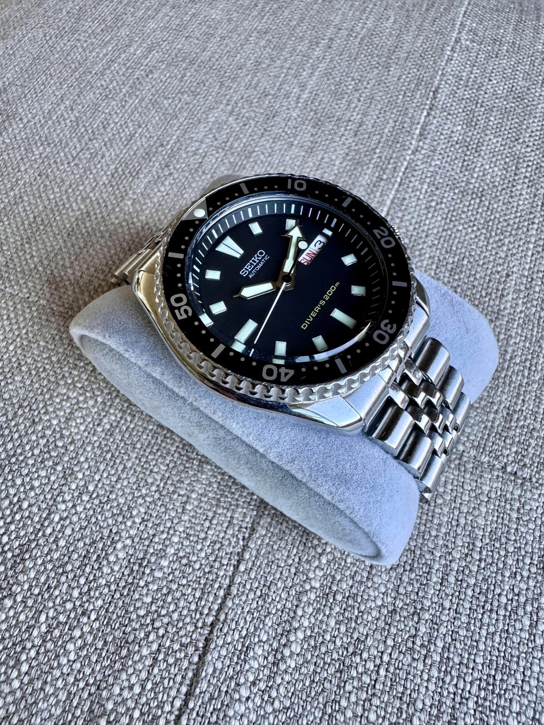 **Description**: This 42.5mm Seiko SKX399 is in superb condition; please see the photos to verify. Its brand new 7S26 movement was recently replaced by a professional watchmaker (not me!) and tested for accuracy and water resistance. This example comes with an OEM Seiko jubilee bracelet that's the most comfortable bracelet I've ever worn. [Timestamp.](https://imgur.com/a/timestamp-u-wizard903-r-watchexchange-pfogl3z) **Price**: $260 (firm) shipped CONUS. Zelle/Venmo preferred, PayPal FF available for those with purchasing history. No trades at this time. **Miscellaneous**: I've sold many watches, including higher-end pieces, on Reddit with 100% positive feedback; please feel free to examine the details of my selling history. And feel free to send a chat with any questions! I currently have \~10 other watches for sale; please check my profile for details. All watches have been cleaned with a microfiber cloth and gentle solution.