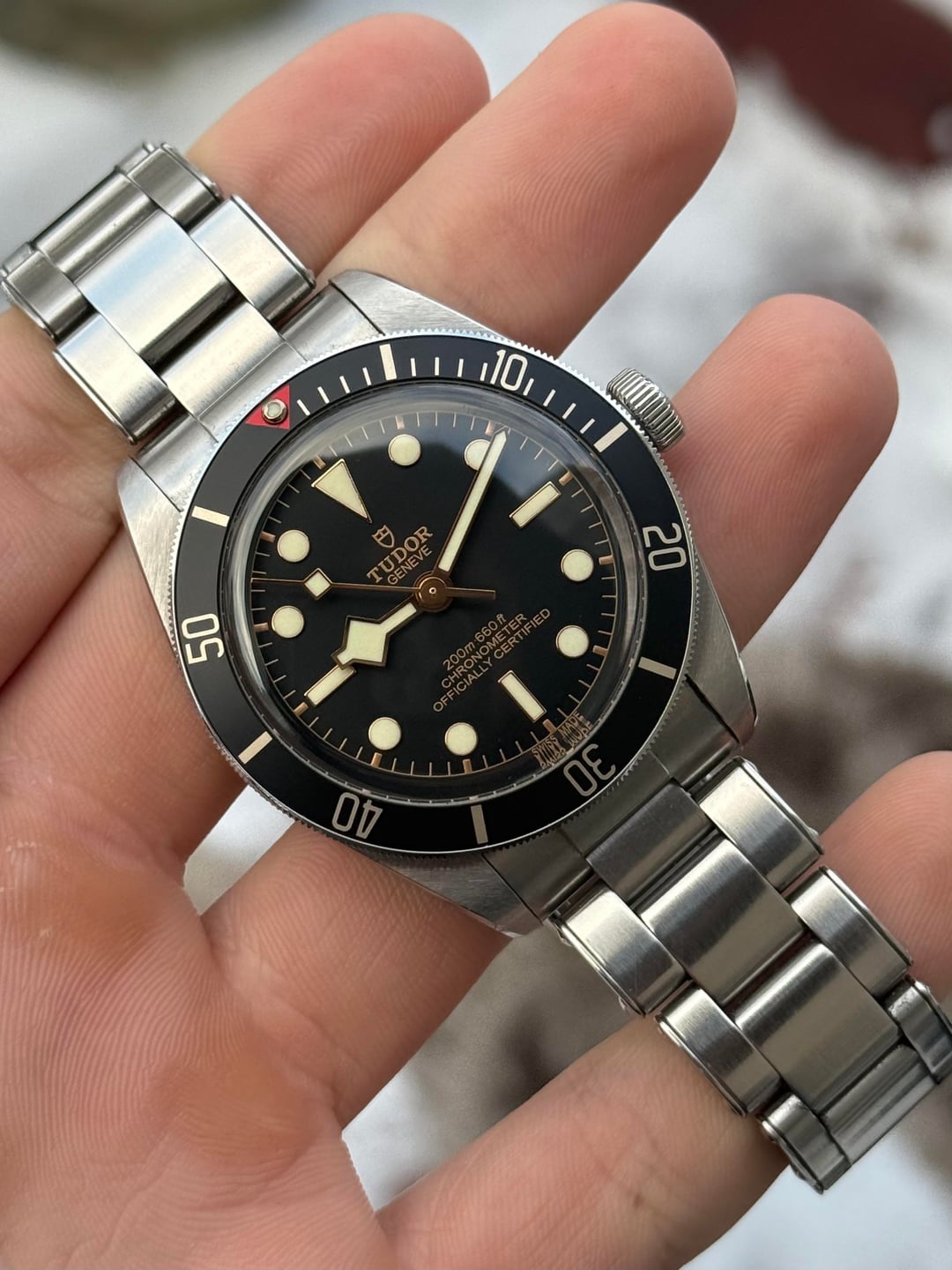 Hey everyone! Selling my Tudor BB58 in black. Full set, with box and papers. Condition: Watch is overall in great shape, light signs of use with some light scratches on clasp bracelet, and case. Crystal is clean, please see photos for accurate representation of condition. Watch runs perfectly as it should. 💰Price: $2,650 Shipped CONUS or best offer. Thanks for looking!! Please message me with any questions you may have. Payment preference is bank wire or zelle, i can also accept paypal f&f for buyers with strong transaction history on the sub.