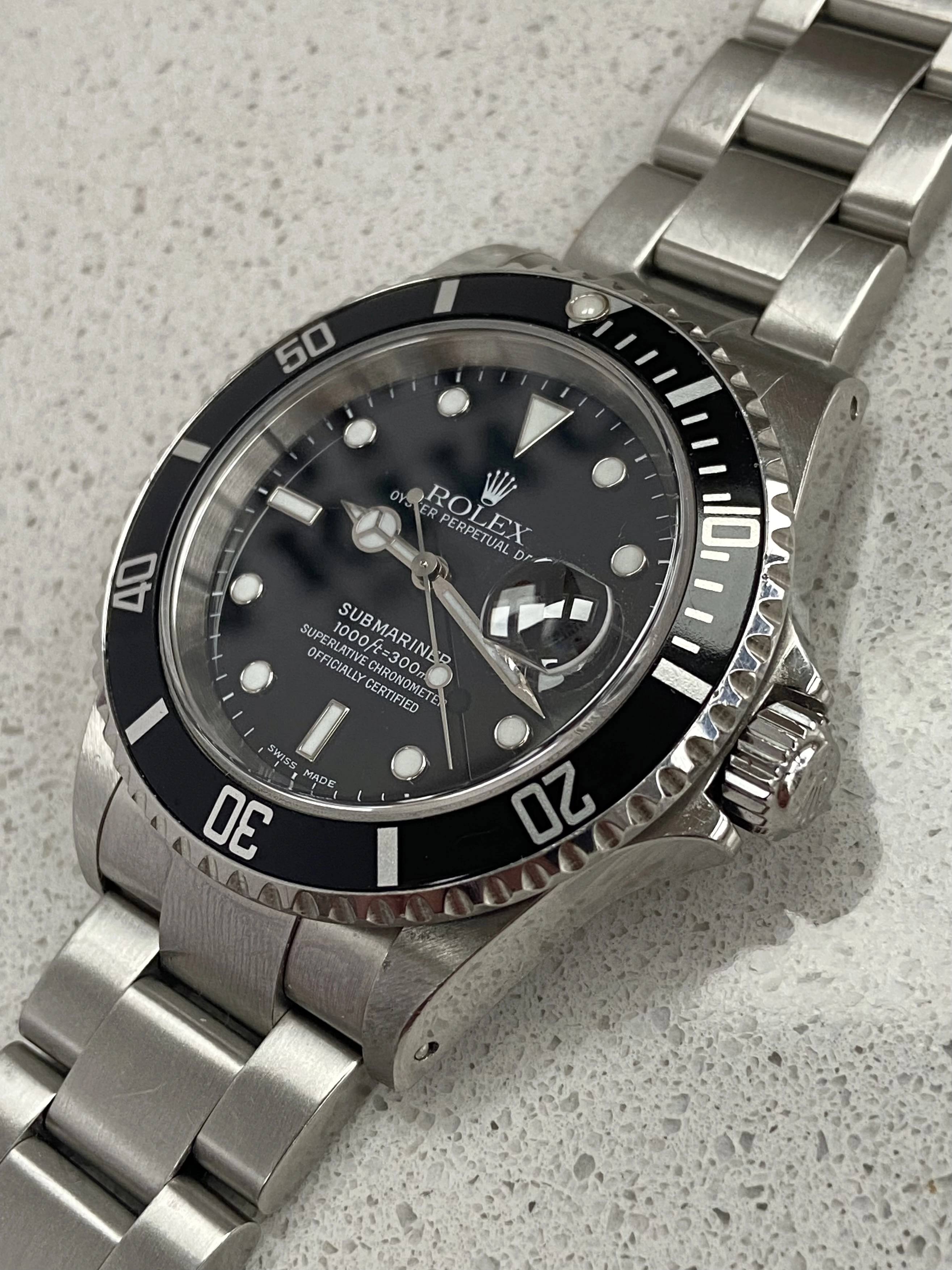 Offering for sale a Rolex Submariner 16610 from 2001. I’m moving a few Rolex’s on as I’d like to add a sharp 36mm Explorer and a holes case 16710 GMT (or possibly a 16700). So although I’m listing this as a sale, I’d be open to trades for those as well, obviously with additional cash either way.