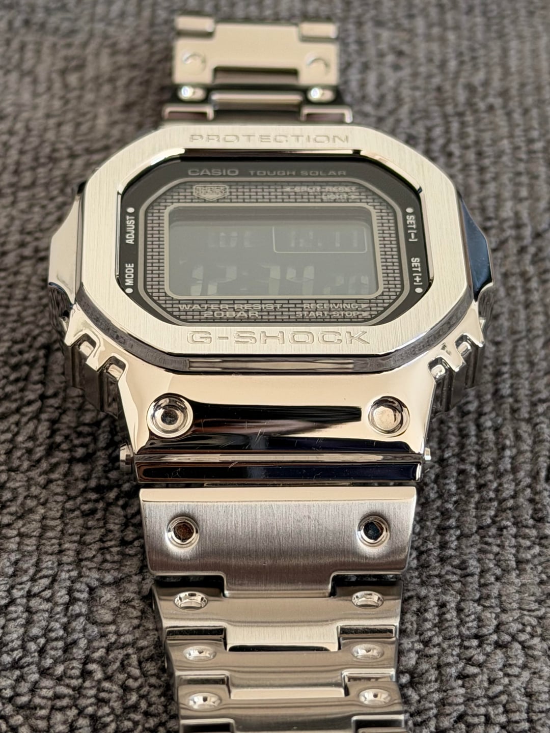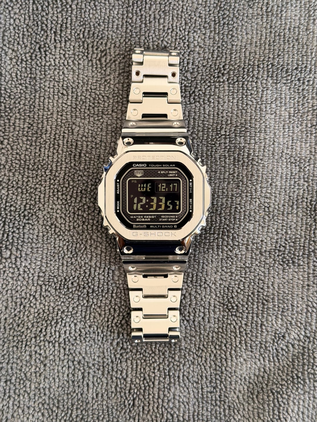 **Price**: $400 shipped (PayPal G&S) **Shipping**: Within CONUS only This is the silver full-metal square (originally sold on resin), fitted with an original Casio metal bracelet. Watch is fully functional and well cared for. **Includes:** \- Watch w/metal bracelet \- All extra links \- Original tin \- Manual \- Warranty card \- Price tag **Condition:** \- Mint / excellent overall \- Minor blemishes from daily usage. No damage or dings of any kind. This watch was well taken care of. \- Crystal is clean and scratch free \- Functions perfectly (Tough Solar, Bluetooth, Multiband 6) **Notes:** \- Bracelet is sized but will ship with all extra links \- Happy to provide additional photos or a timestamp on request **Payment & Shipping:** \- PayPal G&S \- Ships within 1-2 days Thanks for looking!
