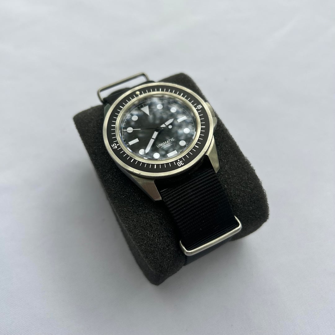 $450 + shipping. Scroll for details. Maker: Unimatic Model: U1-F: 393/600 Movement: Automatic Case: Steel Bracelet: Textile Case diameter: 41.5 mm Water resistance: 30 ATM Bezel: Aluminum Crystal: Sapphire crystal Year: 2020 Condition: Used (Great). Watch shows minor scrapes around outer edge of case (at around minute 7 and 37). Nothing that can’t be tended with a bit of TLC. Strap requires washing. Scope of delivery: Watch, Strap, Original box/Warranty card. Ships out of: Florida, USA Description Limited edition 393/600. This watch was given to me as a present few years ago. While it's the perfect day-to-day watch (and it's a wrench for me to sell), travelling around with the original case has been a bit of a hassle. So I've decided to part with it. The only visible signs of wear are on the strap (no damage, just requires cleaning) and the edges of the case (imagine a line extending from minutes 7 and 37 to the edge of the case); both can be tended with a bit of care. Average Resell Price: $950 + shipping My Price: $450 + shipping Payment methods: PayPal, Zelle I would be more than happy to jump on a FaceTime, WhatsApp, Telegram, or Zoom video call. I can also send more photos if requested.