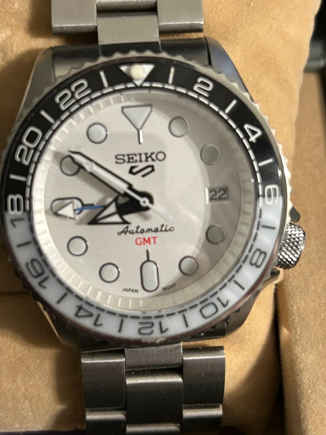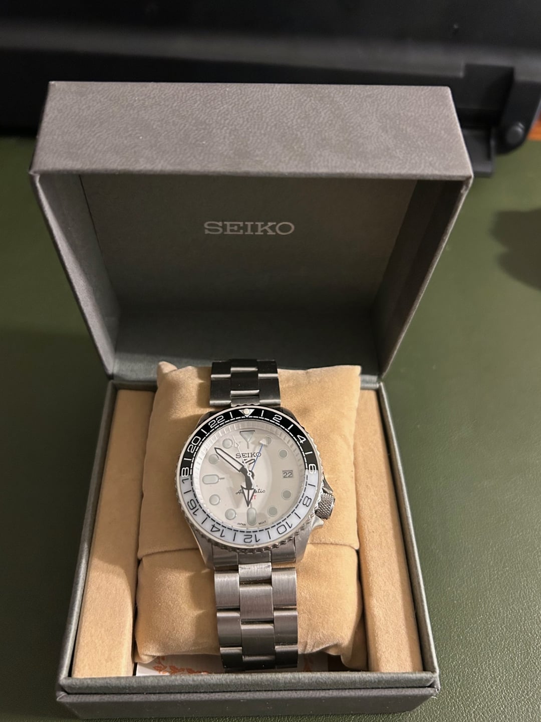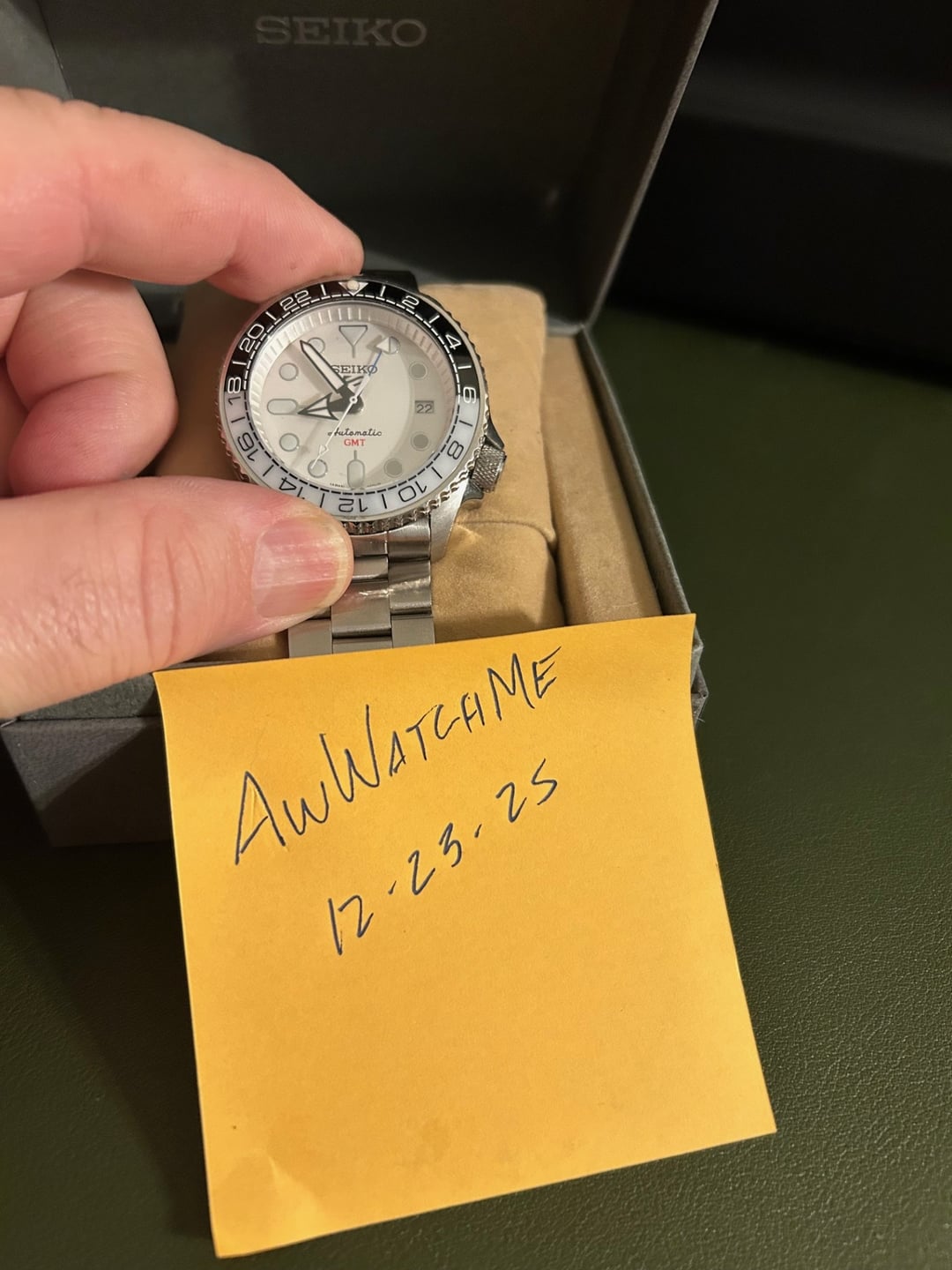 Offering this strange Seiko GMT - NIB - for $200 + $10 Shipping. Purchased and never got around to wearing this unique timepiece. I is my only Seiko purchase ever...just not a Japanese watch guy. All links included, box and papers included...I've been trading on eBay since 1999, almost 2,000 100% positive transactions under "Vazaroo", so check me out there. Sorta new to [r/watchexchange](https://www.reddit.com/r/watchexchange/) \- eBay and Chrono24 were killing me with fees. Open to f2f (in the NJ/NY/PA tri-state area), video call or whatever for you to feel comfortable. I prefer PayPal ff or Zelle, ship USPS; I send buyer a picture of the packaged watch and the mailing receipt from the P.O. as I drop it off. receipt. Find pictures and timestamp : [https://imgur.com/a/seiko-gmt-nHlt80i](https://imgur.com/a/seiko-gmt-nHlt80i). I'll be listing watches here over the next while to see if I can be successful, thanks and have a great end-of-year!