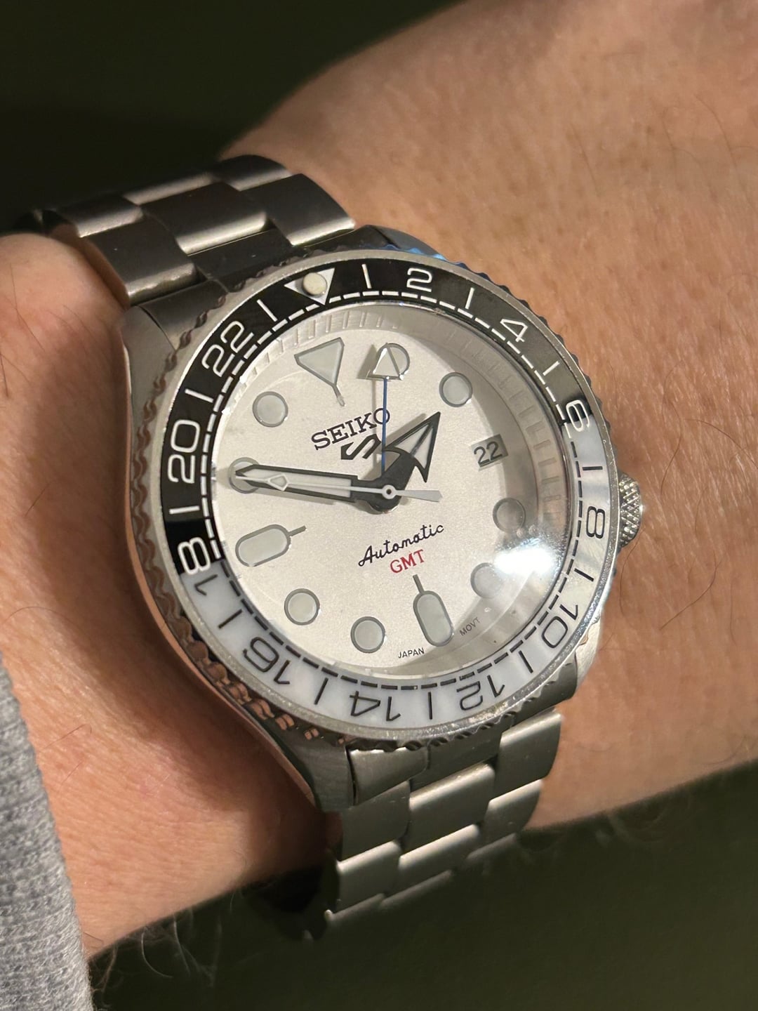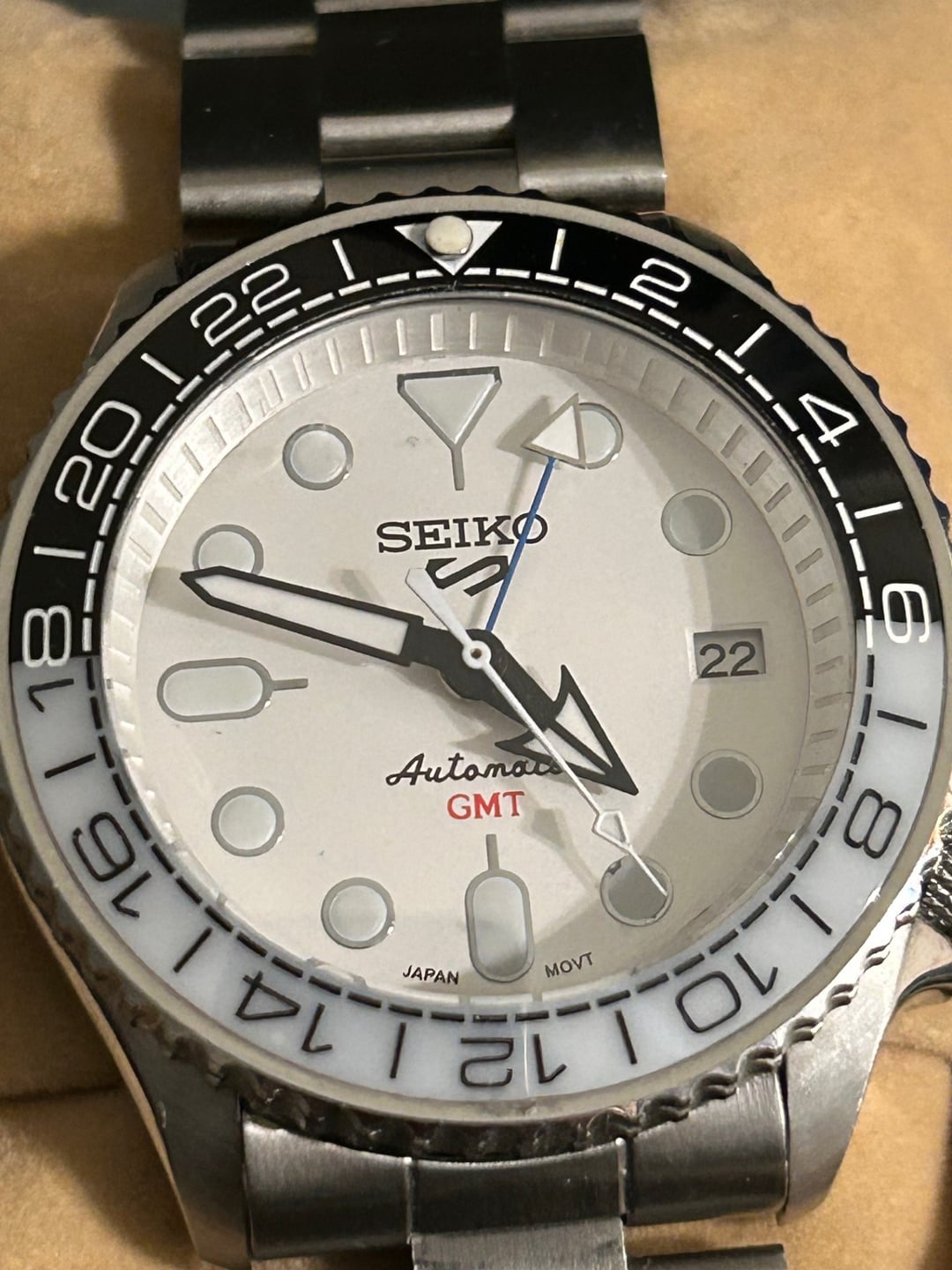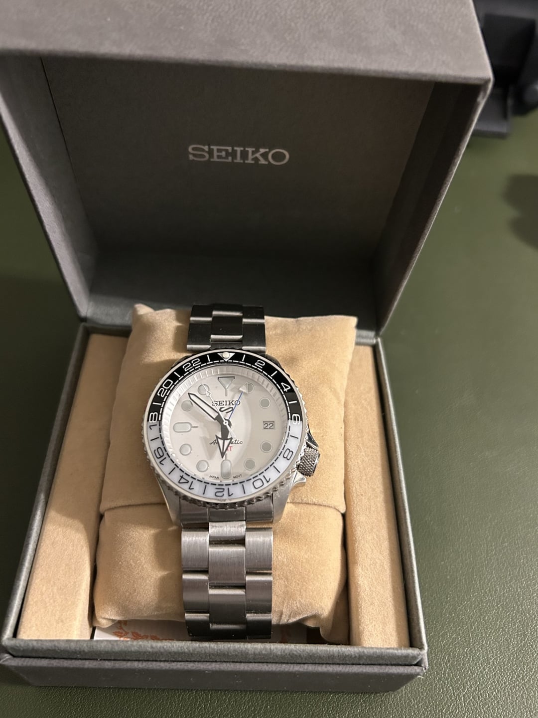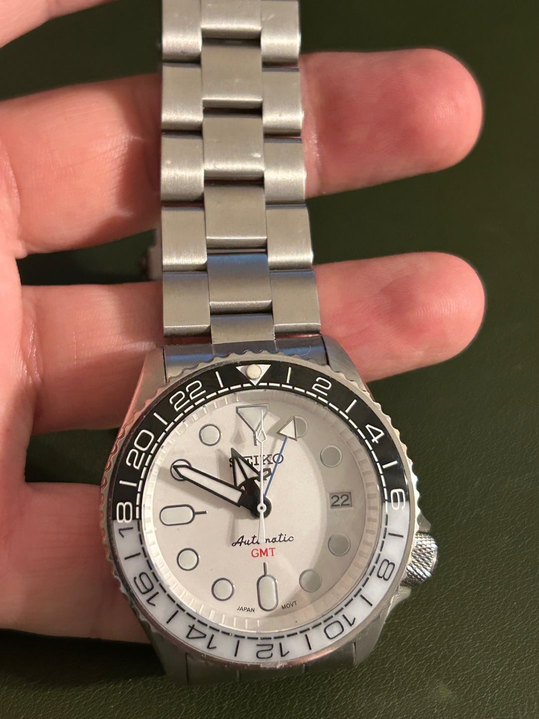 Offering this strange Seiko GMT - NIB - for $200 + $10 Shipping. Purchased and never got around to wearing this unique timepiece. I is my only Seiko purchase ever...just not a Japanese watch guy. All links included, box and papers included...I've been trading on eBay since 1999, almost 2,000 100% positive transactions under "Vazaroo", so check me out there. Sorta new to [r/watchexchange](https://www.reddit.com/r/watchexchange/) \- eBay and Chrono24 were killing me with fees. Open to f2f (in the NJ/NY/PA tri-state area), video call or whatever for you to feel comfortable. I prefer PayPal ff or Zelle, ship USPS; I send buyer a picture of the packaged watch and the mailing receipt from the P.O. as I drop it off. receipt. Find pictures and timestamp : [https://imgur.com/a/seiko-gmt-nHlt80i](https://imgur.com/a/seiko-gmt-nHlt80i). I'll be listing watches here over the next while to see if I can be successful, thanks and have a great end-of-year!