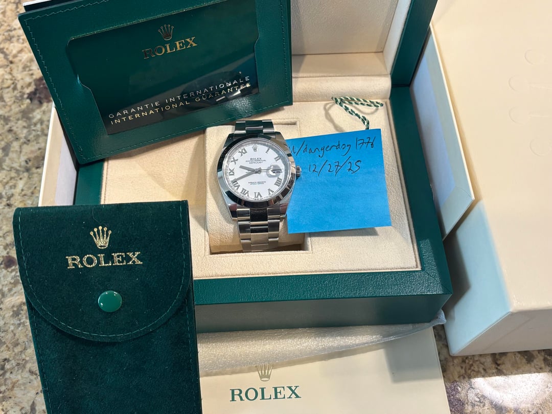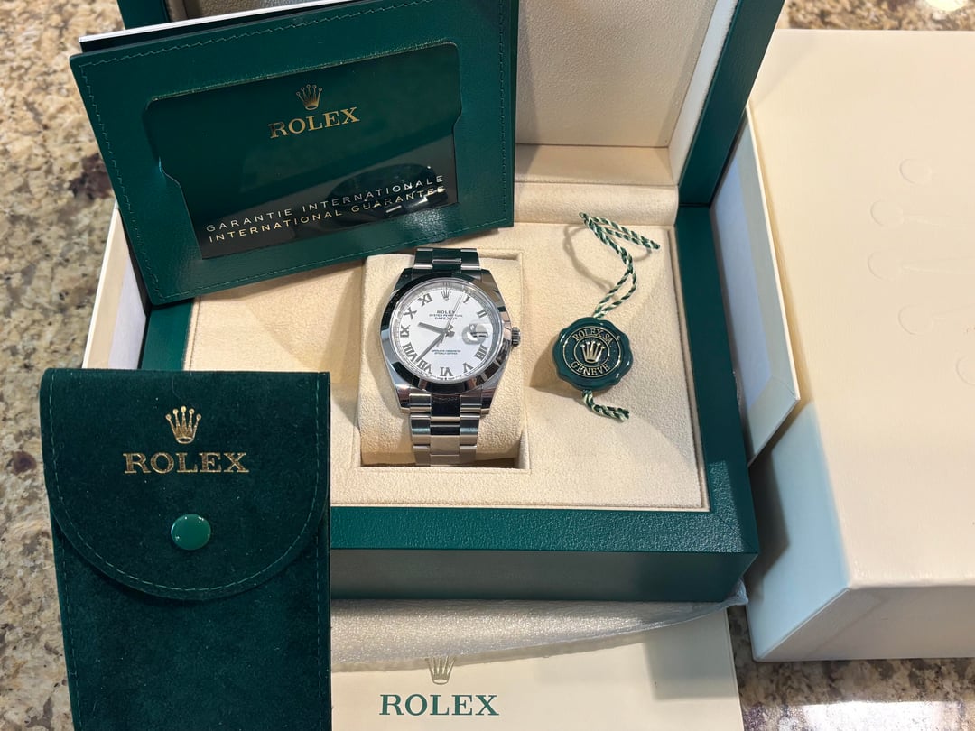 Up for sale is a beautiful Rolex Datejust 41 (Ref. 126300), the watch is in fantastic condition with only minor swirling on the clasp and bracelet. The watch itself is running exceptionally as it just came back from Rolex for servicing in November, but no polishing was performed, movement only. This comes as full kit, inner and outer boxes, and warranty card dated 4/20/21 (so yes still under the original warranty but with a servicing so recent it is essentially brand new under the hood!) asking $10,500 CONUS shipping only, thanks!
