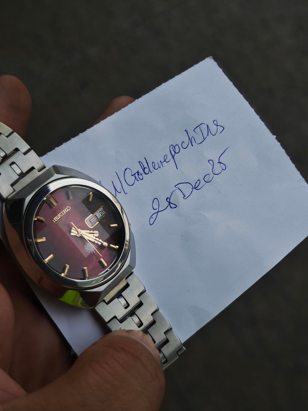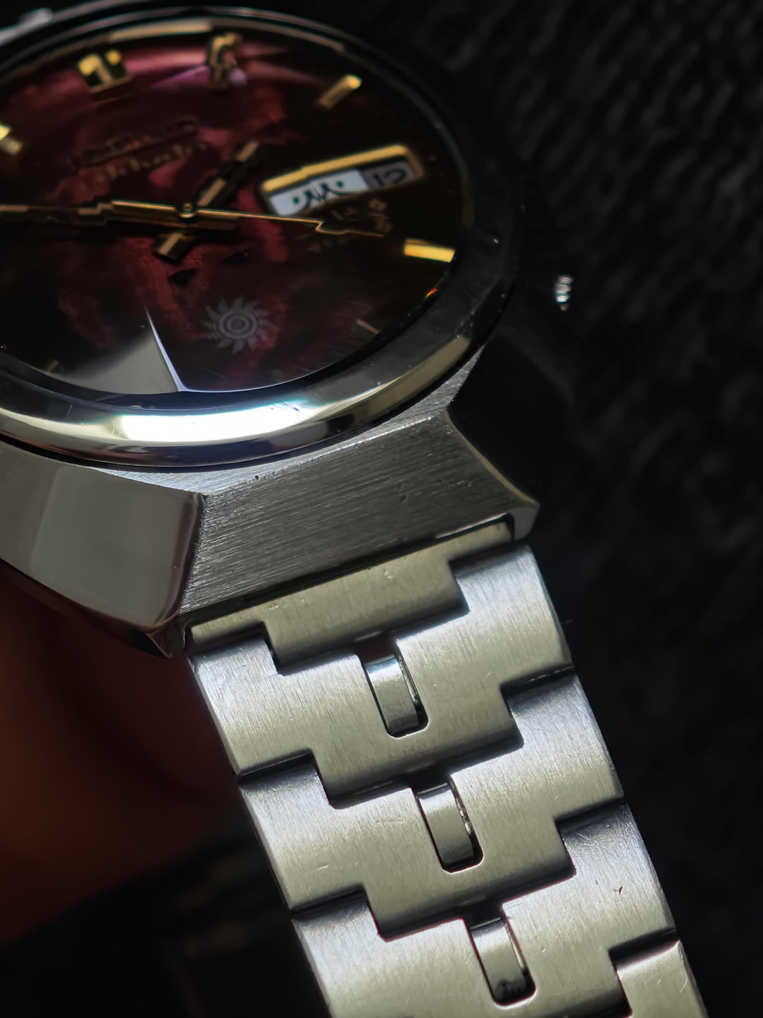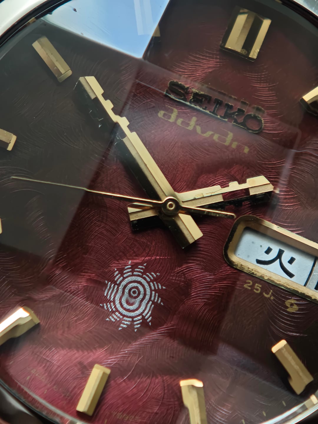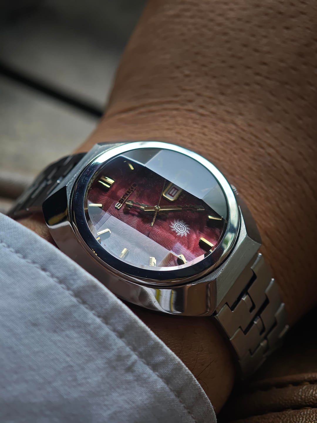 Up for sale a fiery classic from the early ’70s — the Seiko Advan “Inferno.” Deep textured red dial that shifts from ember-dark to glowing flame depending on the light. Gold baton markers, stepped Advan hands, and the sharp sunburst crest at 6 o’clock complete the look. Powered by the 6106 automatic: clean, reliable, and running strong. Case lines remain bold with that unmistakable Advan presence. Price: $600 shipped (tax duty included) Details: – 6106 automatic – Day/date quickset – Textured red “Inferno” dial – Gold indices + Advan hands – Excellent overall condition A standout piece from one of Seiko’s most expressive early-’70s lines. Let me know if you need more pics or wrist shots.
