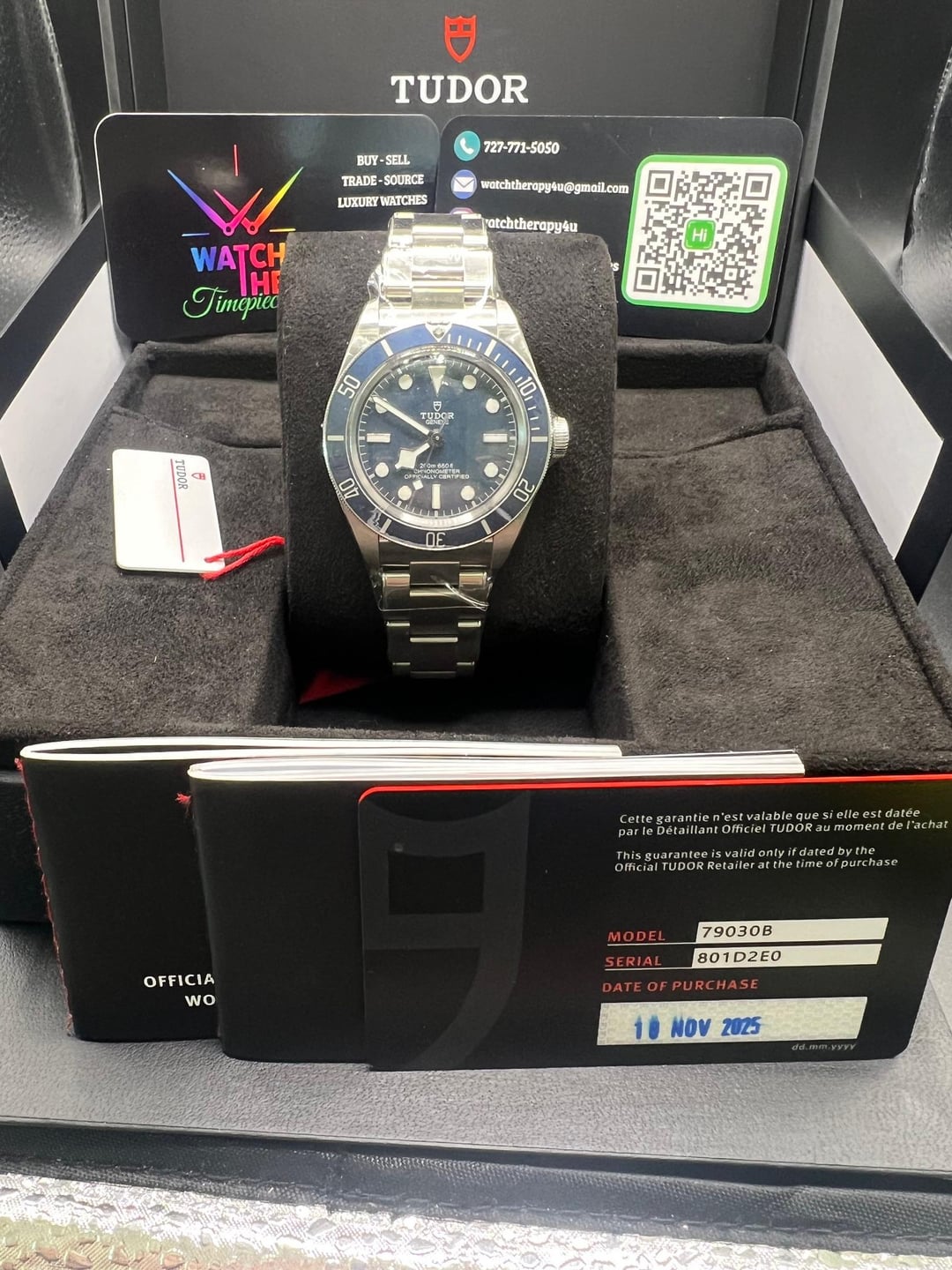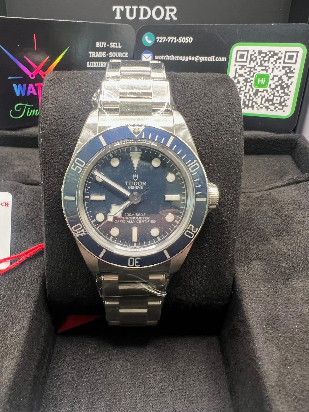 **F/S: New Tudor Black Bay 58 Blue 11/25 Ref# 79030B** **Shipping from Florida!** **Specs:** \* Beautiful blue domed dial \* Automatic self-winding \* 39mm \* SS Riveted Bracelet \* 200M Water Resistance \* 70-hour power reserve \* MT5602 (COSC) movement **Includes**: Warranty card 11/25, double boxed, booklet, hang tag and full links. **Condition:** 9.9/10 unworn, unsized- small handling mark on the back of the case. **Price: $3299.00 + Insured shipping to your local FedEx for pick-up in Con US**. I am also open to a face-to-face public transaction in or around the Tampa Florida Region, within reason. I have many strong and viable references within Reddit and from Buy/Sell/Trade Watch Facebook groups. Always willing to jump on a call or meeting link to show you the watch. Thank you and please reach out if you have any questions or concerns. Florida residents may be subject to sales tax w/o a valid reseller cert. ***No Trades, TY*** **Location**: Tampa Florida **Payment:** Zelle or Wire Timestamp: [https://imgur.com/a/3FKnlgx](https://imgur.com/a/3FKnlgx) FB: Watch Therapy Timepieces IG: [@watchtherapy4u](https://www.reddit.com/u/watchtherapy4u/)