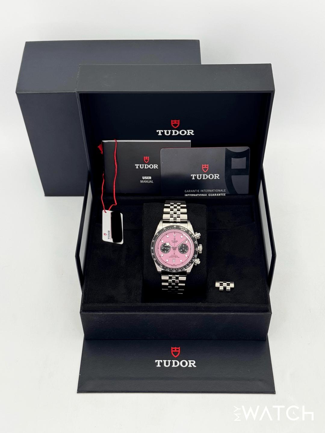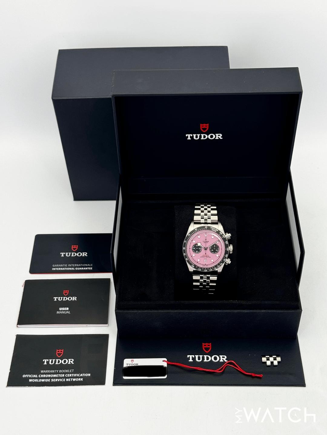 🔵**2025 Tudor Black Bay Chrono 41mm 79360N Stainless Steel Pink Dial** 🔵**TRADE or SELL us your luxury watch, all brands considered. Message me details.** **Includes the following:** **✔️Original Tudor Double boxed** **✔️Box and Papers - Yes** **✔️Warranty card dated December 2025** **✔️5 year manufacturer warranty** **✔️Manual and Warranty booklets** **✔️White Hang Tag included** **✔️Size: 8.5inch wrist (Full Links)** **✔️Watch is in mint condition.  Please see photos for details.** **✔️**[**Trades**](https://mywatchllc.com/pages/sell-rolex-watch) **welcome**  Business Name: **My Watch LLC**  LOCATION: Oak Park, Michigan ✔️[MyWatchLLC.com](http://mywatchllc.com/) for current inventory ✔️Google Business Listing [https://g.co/kgs/Cmd6FPW](https://g.co/kgs/Cmd6FPW) ✔️Business Hours M-F 9-6 ✔️Facetime/Video chat/calls welcome to view the watch interested.  ✔️Contact: 248-422-0909 via text or call for quickest response. 🟢TERMS: Visit [MyWatchLLC.Com](http://mywatchllc.com/) for payments accepted 🟢REFERENCES/REVIEWS: We are well reviewed on all platforms from google, trust pilot, rolexforums, additionally we have 300+ reference in multiple FaceBook watch groups, reference checks welcome. 🟢SHIPPING: If you are not local, we offer Fully Insured FedEx overnight shipping in the USA for a fee. International shipping available. [https://mywatchllc.com/products/2025-tudor-black-bay-chrono-41mm-79360n-pink-dial-1](https://mywatchllc.com/products/2025-tudor-black-bay-chrono-41mm-79360n-pink-dial-1)