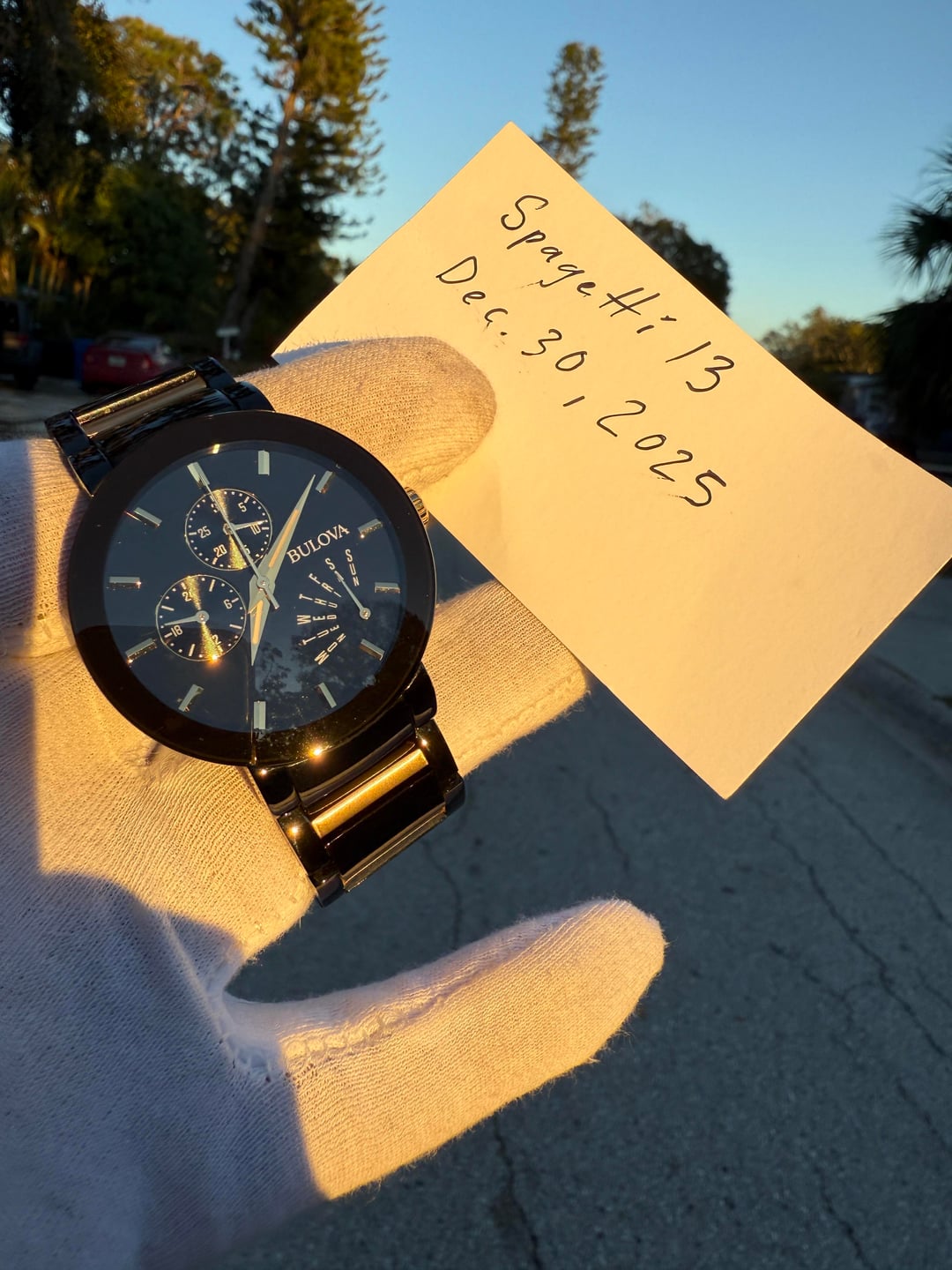 This is an unworn Bulova Futuro from 2024. Still has the protective sticker on the caseback. It came from a Macy’s liquidation and may have been a display model. No tags or box or extra links on this one but it is pristine and running strong. 40mm size Bracelet is sized to 7.5. Asking $140 shipped.