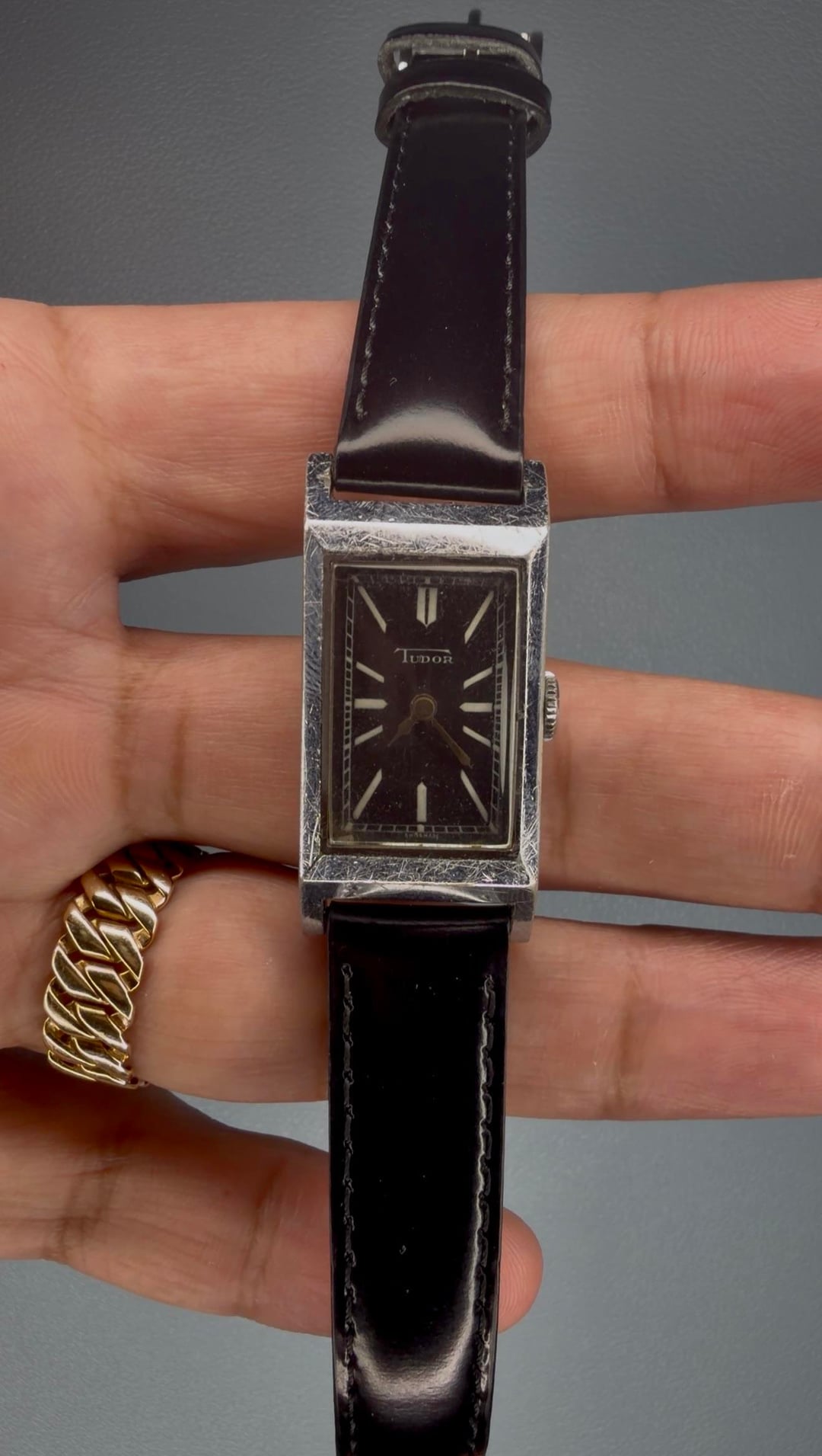 Vintage Tudor Tank -Details: Steel case (unpolished), hesalite crystal, new black leather straps. Rolex signed case on the inside. Back when Rolex and Tudor shared the same cases, before the shield and rose logos. -$1,297 shipped -Includes shipping (US). I accept Venmo, Zelle, CashApp, and PayPal (+4% if using G&S) -Case size: 19x32mm including crown -Movement: manual winding -Timestamp: https://imgur.com/a/PozebNo IG: @ColeccionDeLosSantos TikTok: @Chris.DeLosSantos