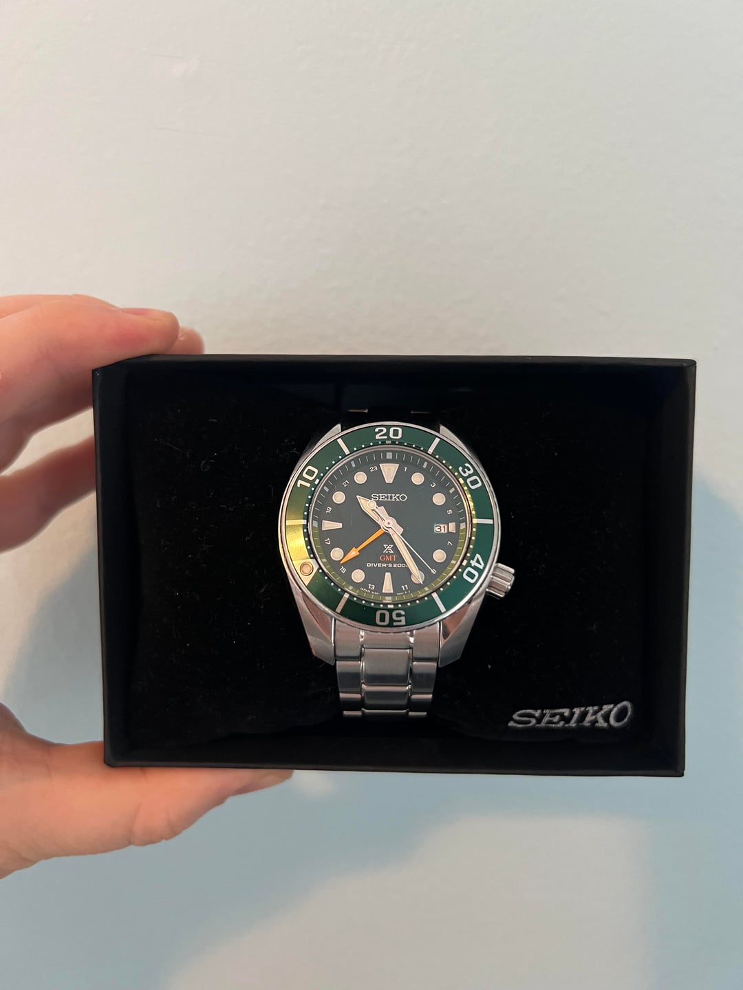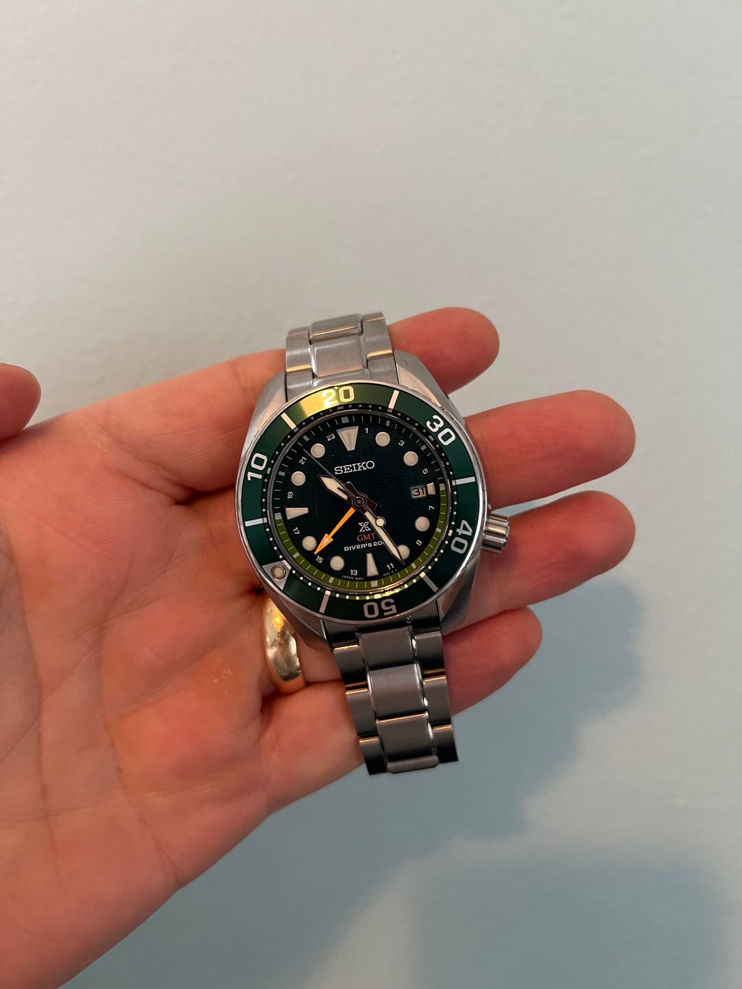 Up for sale today is this green dial Seiko Sumo GMT with the solar movement. The reference number is SFK003. Watch comes full kit and is in good condition. Shows some honest wear on the polished surfaces and some mild desk rash. I did my best to capture it in the photos. Asking 450 shipped CONUS or best offer. I’m more than happy to share some more pictures or videos if you’re interested! Thanks!
