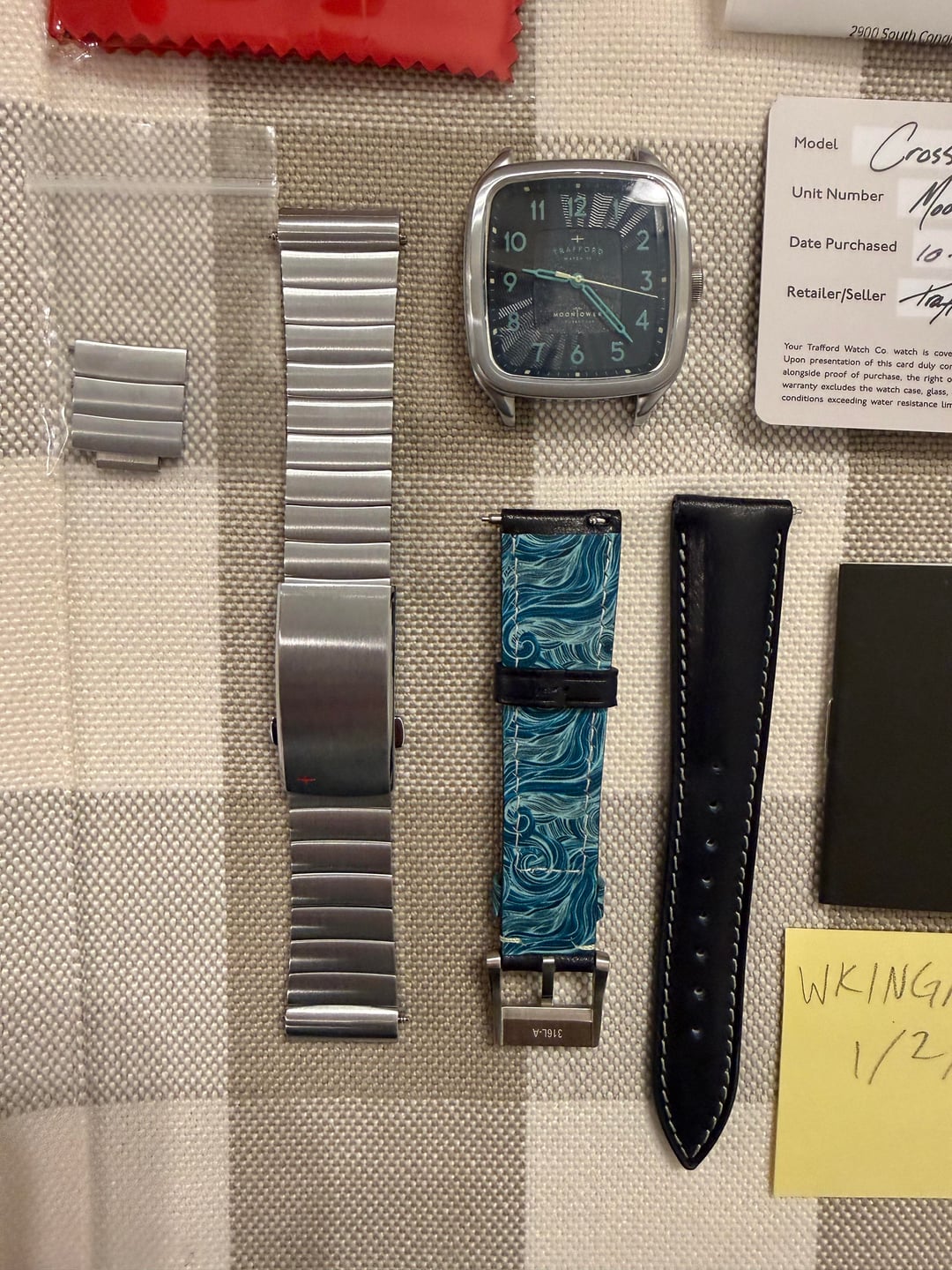 Selling a Trafford Moontower. Very clean, worn a dozen times on a sailcloth strap. The square shape isn’t my thing. Comes with full kit and bracelet with spare links (currently sized for 6.5in wrist). $820 shipped CONUS