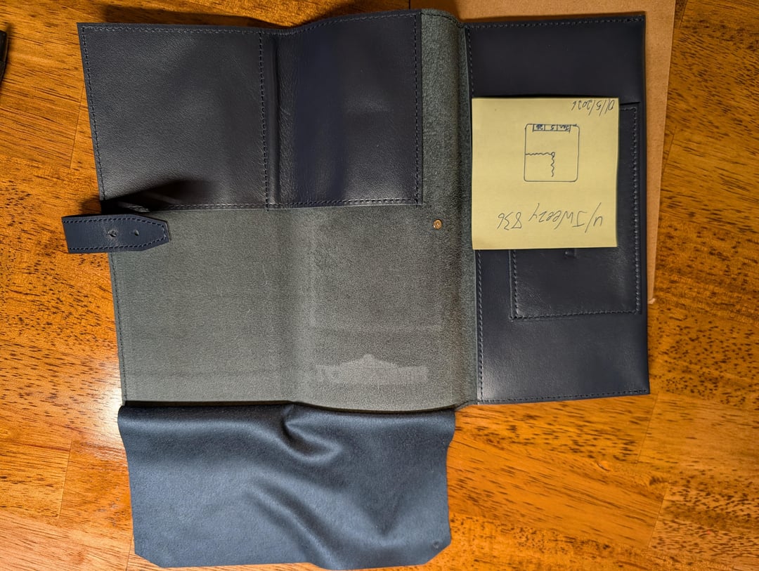[SOLD! VERIFICATION TO FOLLOW] Up for sale today is a Longines Leather Travel Case new with the original packaging. The case is a very nice, deep navy leather. The interior fold houses two pockets for watches and a larger pocket for sunglasses or a third watch. The case is a trifold wrap style with a two size button slit clasp. A felt covering is also in the center to protect scratching the contents when used. Received this from the AD in Louisville and never got around to using it. It's condition shows! Asking $60 shipped in the US. Can accept cash app, Venmo, or PayPal.