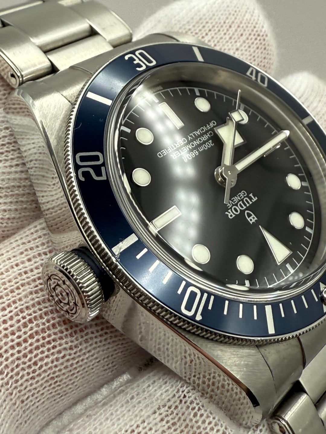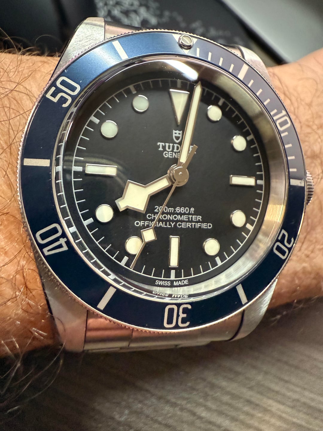 Tudor Black Bay Heritage 41 Blue bezel black dial 41mm 2021 Unpolished Fully linked Timestamp https://imgur.com/a/x5gBNMB Video https://imgur.com/a/OtyTx0i#hhPn111 Good pre owned condition overall. The case remains sharp and unpolished. The crystal and bezel are perfect with no chips or marks. The bracelet and clasp are fully linked and show normal wear consistent with regular use, nothing serious or structural. All visible wear would polish out easily if desired. Optional professional polishing is available for an additional $150. Includes full set with inner and outer box, warranty card dated 2021, booklets, and tags. The watch is running properly. Timestamp photos and video are shown. Price $2,600 shipped within the continental United States. Payment via Zelle or bank wire. Located in New York. Established watch dealer and active member of Moda and RWB with references available. I primarily sell on Facebook and am expanding to Reddit. Happy to assist with buyer verification including phone number, live FaceTime, use of a trusted middleman or escrow service, and reference checks on Facebook or within any watch community you are comfortable with to ensure a smooth and confident transaction.