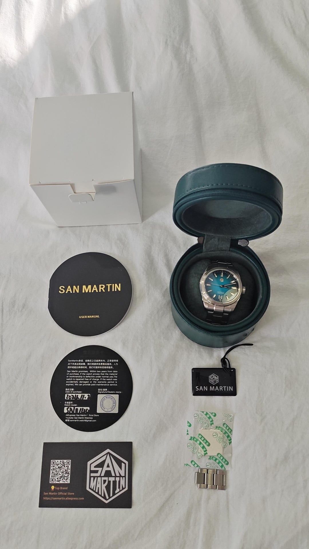 San Martin SN0144 39mm blue dial. Catch and release, excellent condition! Full kit as seen in pics. $250 shipped US ONLY. Payment accepted through Venmo/Cashapp/Zelle or paypal as long as buyer covers the G&S fees.