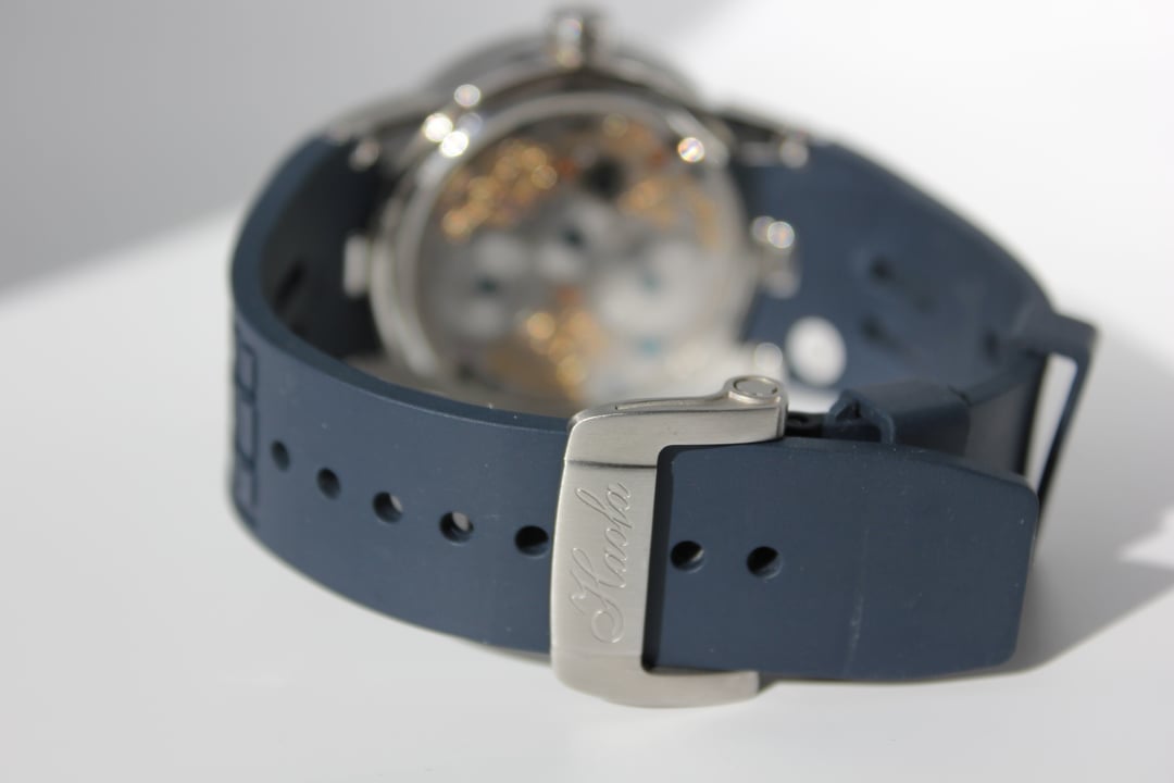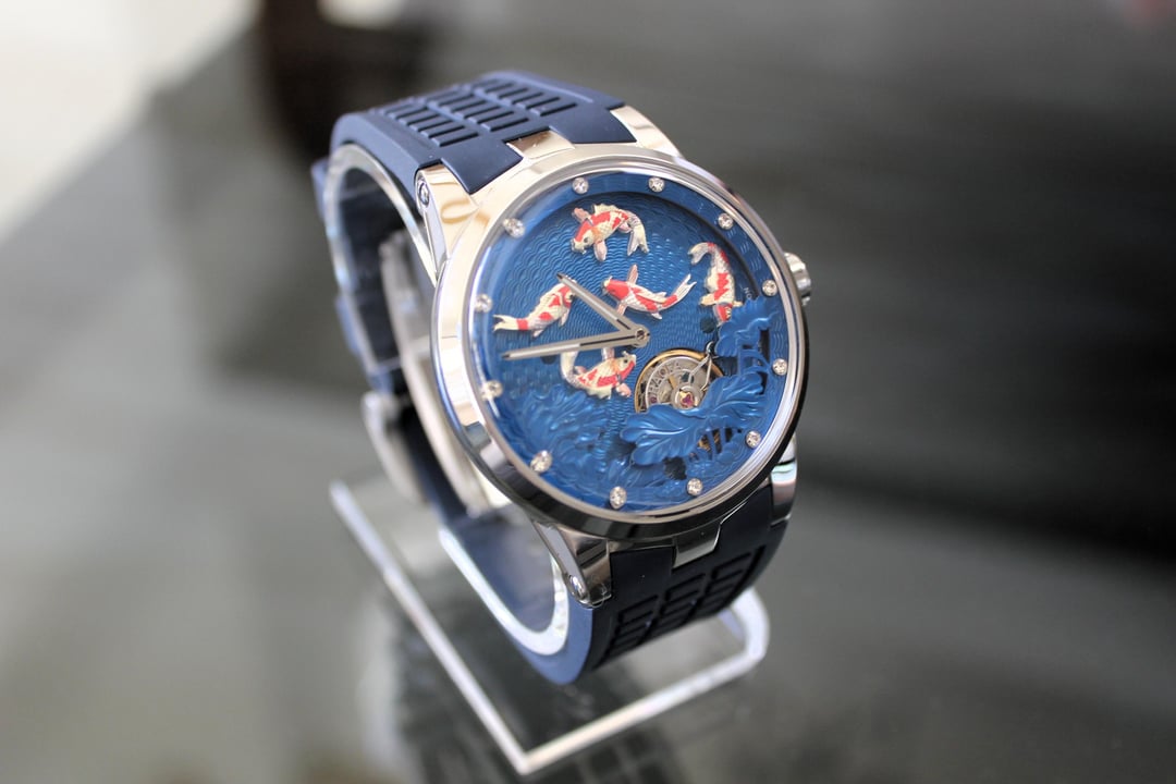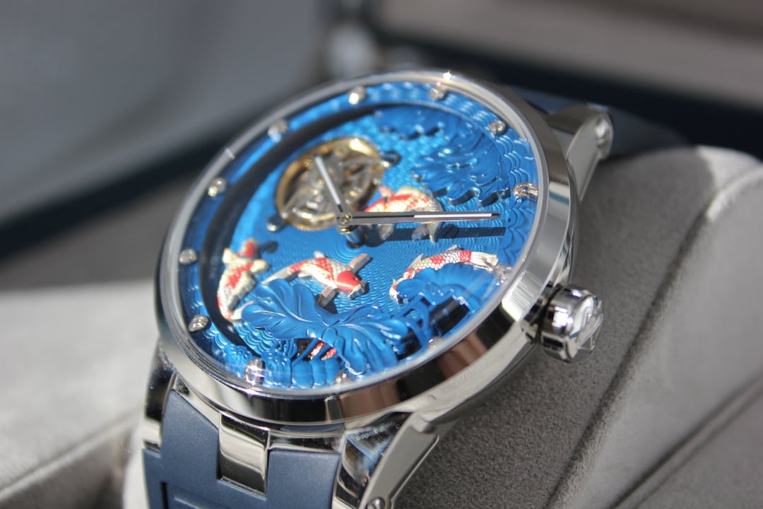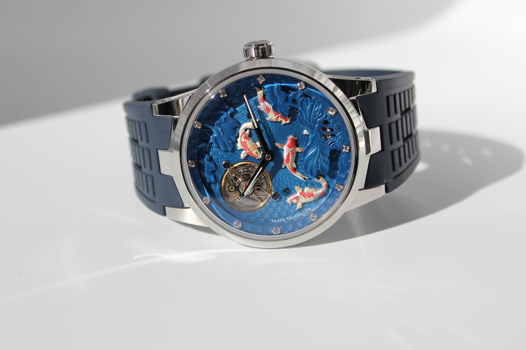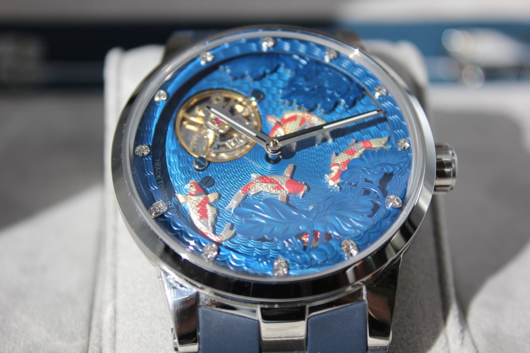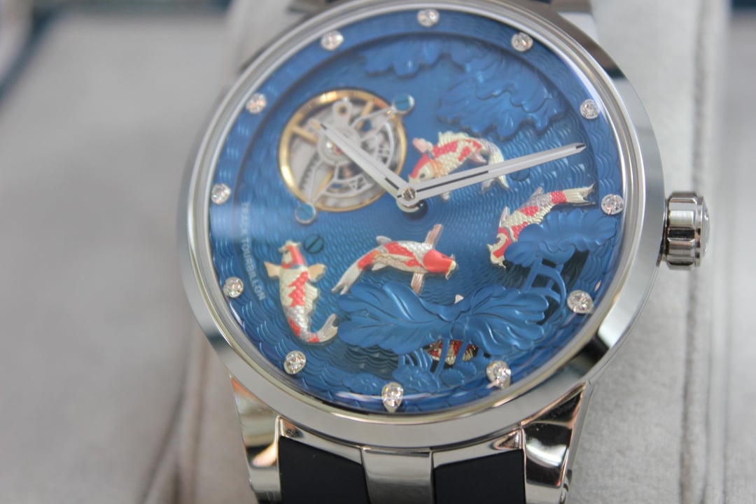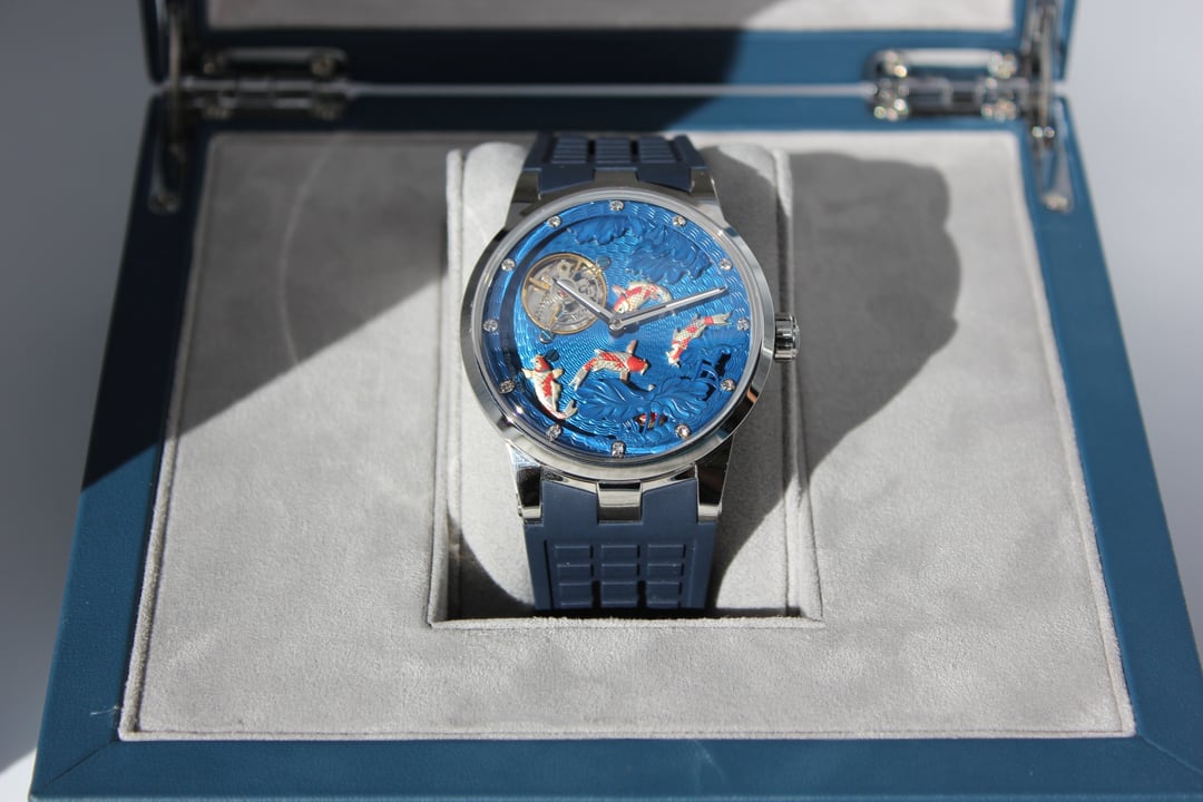 **Summary**: For sale is a very interesting Chinese watch from Haofa. This model's standout feature is the intricate, revolving guilloche dial, on which several playful carp swim. The exposed balance wheel and dial are located on a mobile plate, which revolves around the center point of the dial face once every 60 minutes. In other words, the carp swim around the dial--a classic Chinese motif symbolizing harmony and fortune. This watch's interesting rotating dial is achieved using a modern variant of the (very rare) and classic carousel design of Bahne Bonniksen, who designed it in the1890s to compete with Abraham Breguet's technically brilliant but complicated tourbillon mechanism. Bonniksen's resulting design, named "carousel", [was patented in 1895](https://patents.google.com/patent/US549287A/en) and survives to this day as one of the few mechanisms invented to address the variance in accuracy caused by gravity. Very few watch manufacturers have attempted a modern carousel caliber. The only ones (to my knowledge) who have done so are Haofa and Shanghai Watch Factory. Blancpain has marketed a "carousel" mechanism in the recent past, but this is a misnomer -- Blancpain's mechanism it is not actually anything like the true carousel mechanism of Bonniksen but more similar to an eccentric tourbillon. This watch comes with "full kit" -- shopping bag, outer cardboard case, inner display case, accessories bag, etc. **Price**: **$850** (PRICE REDUCED FROM $910). Shipping is **$25** in continental US via USPS Priority Mail, signature required. Local sale in Los Angeles area welcome. I accept Zelle, Venmo, and Paypal (+4%). This price represents a savings of roughly **$150 off** of the lowest available price on AliExpress and Haofa's website. **Timestamp and entire photo album**: [https://imgur.com/a/pUdy2ld](https://imgur.com/a/pUdy2ld) . I have tried to take multiple photographs from multiple angles in multiple lighting conditions to show the true state of the watch. **Overall condition**: Like new / extremely light marks on case. Worn a small handful of times -- less than five times. See detail photos for reference. **Dial**: 43mm. **Crystal**: sapphire. **Movement**: Haofa in-house caliber, no. 125.02K **Strap/bracelet**: proprietary 22mm width strap, rubber (FKM or silicone), spring-loaded butterfly clasp. **Accuracy**: regulated by Sangamon Watches to to achieve excellent accuracy. The timegrapher photo is a "best case" reading across 1 minute in dial-up position; your experienced accuracy may vary. But the accuracy snapshot gives you a good idea of what to expect--well within the ISO 3159 chronometer standard. **Miscellaneous**: I posted a brief review of this watch on [r/Chinesewatches](https://www.reddit.com/r/Chinesewatches/) [here](https://www.reddit.com/r/ChineseWatches/comments/1p3d1nc/haofa_carousel_model_1951_carp_on_rotating/). **Official listing from manufacturer**: [https://haofatourbillon.com/products/haofa-carrousel-tourbillon-koi-fish-watch-1951?variant=40979514327217](https://haofatourbillon.com/products/haofa-carrousel-tourbillon-koi-fish-watch-1951?variant=40979514327217) **Haofa b-roll showing rotation of dial**: [https://www.youtube.com/watch?v=lfijgqs2zsU](https://www.youtube.com/watch?v=lfijgqs2zsU)
