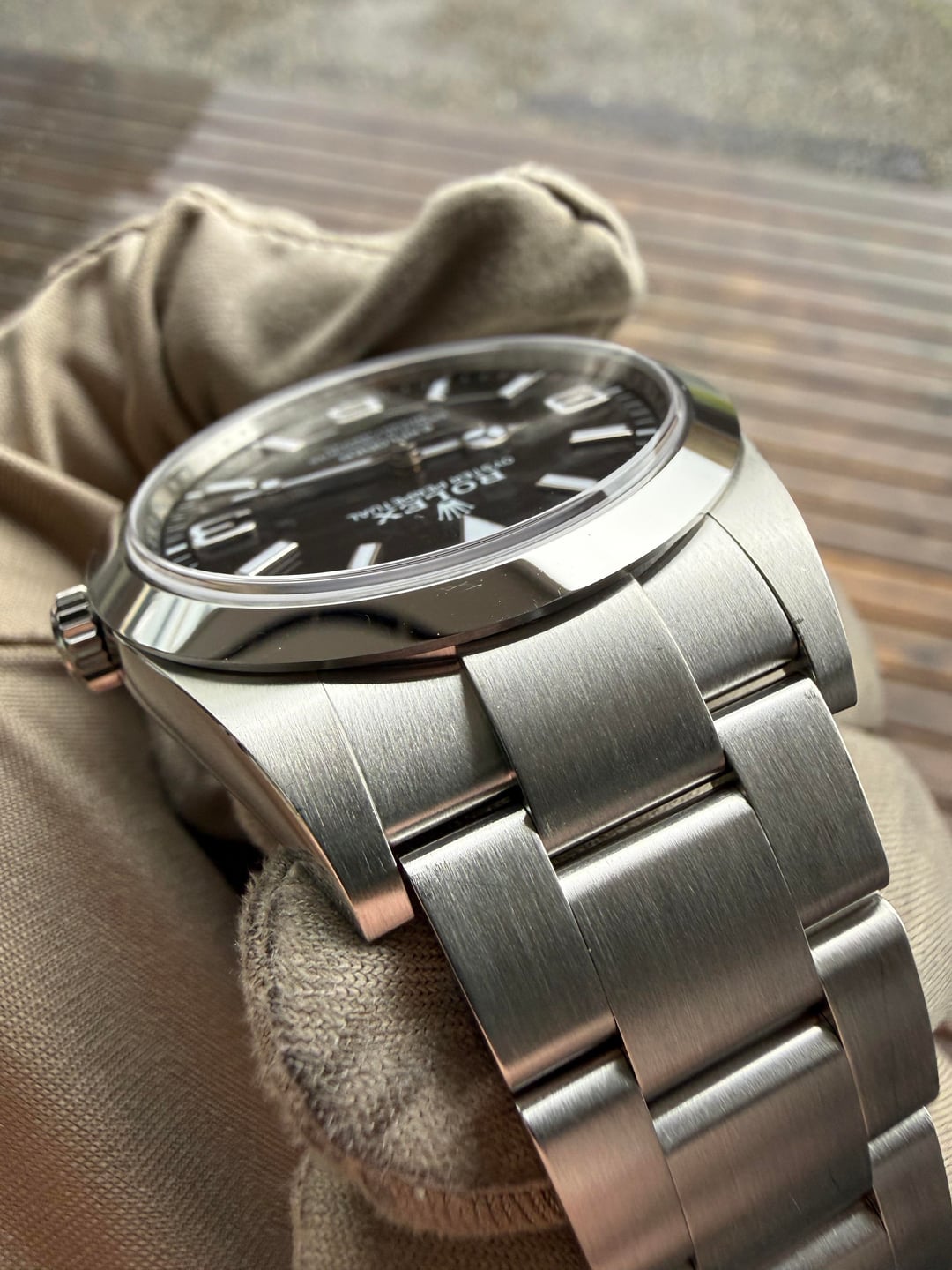 Is this the perfect everyday wear Rolex? I think so. Model: Explorer 39 Ref. 214270 Case Material: Stainless Steel Case Dimensions: 39mm Bezel: Stainless Steel Smooth Bezel Dial: Black MK2 Dial Lume 3 6 9 Band Material: Stainless Steel Oyster Bracelet Max Wrist: 7.75 in. Original Purchase Date: August 2019 Movement: Automatic, Mechanical Accessories: Comes with Rolex Warranty Card. No box or manual Condition: Nice preowned condition with light scratches on the case, bezel and bracelet. Comes with a 1-Year Warranty! Price: $8,000 shipped! Bank wire price. WA residents subject to sales tax. Email: [email protected]