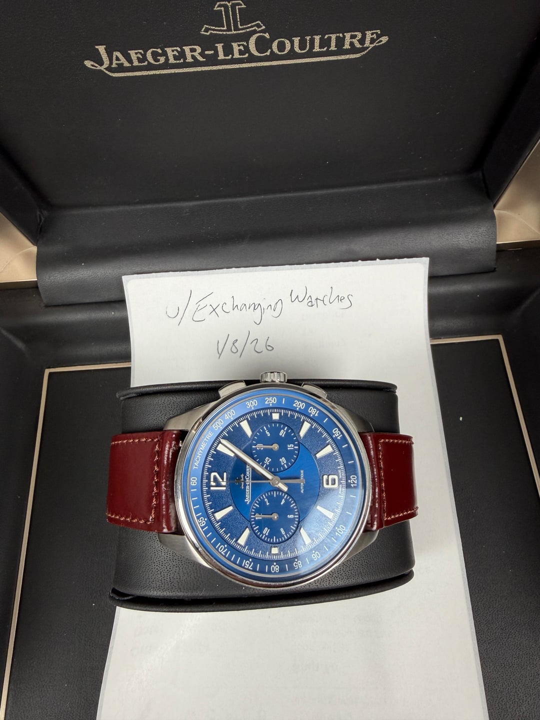 Jaeger LeCoultre Polaris Chronograph is a standout modern interpretation of Jaeger-LeCoultre’s iconic Polaris line, marrying sporty chronograph functionality with refined everyday elegance. Housed in a 42 mm stainless steel case with a rich blue sunburst dial and fitted on a handsome brown leather strap, this automatic chronograph exudes presence on the wrist. The layered dial with luminous hands and markers, polished/satin finishes, and classic Polaris proportions make this a versatile choice for both casual and dress settings. I am a full time firefighter and have been in the watch industry for a few years after turning something I love into a small side venture. Working with high horology timepieces has been a joy and I’m very thankful for everyone who I have worked with. I recognize that reputation goes a very long way here and I have earned mine with honest straightforward transactions. Reach out an any time for questions or a FaceTime. 7,850 with insured shipping included