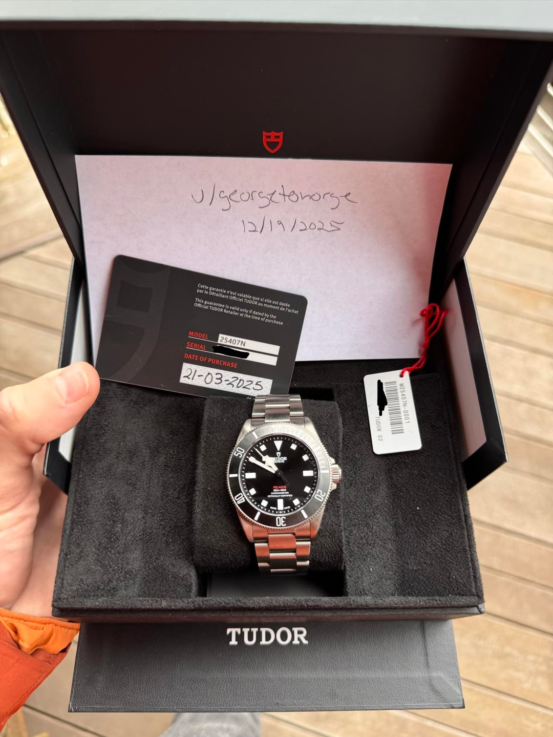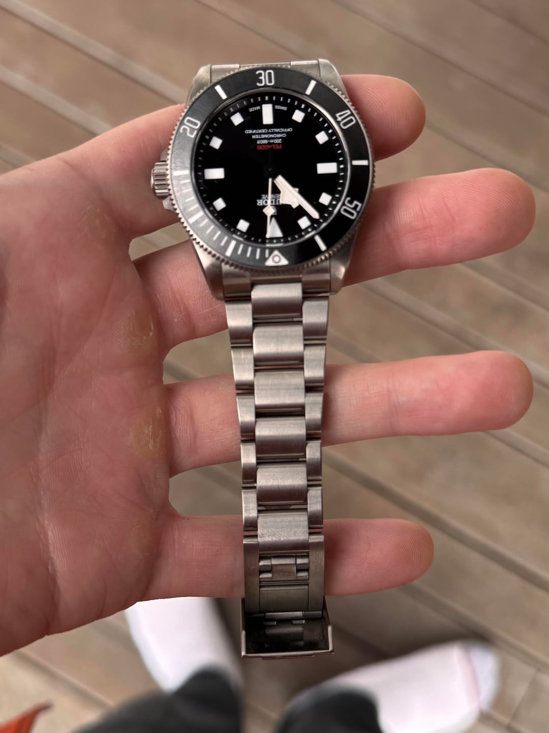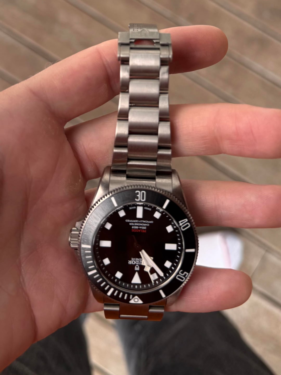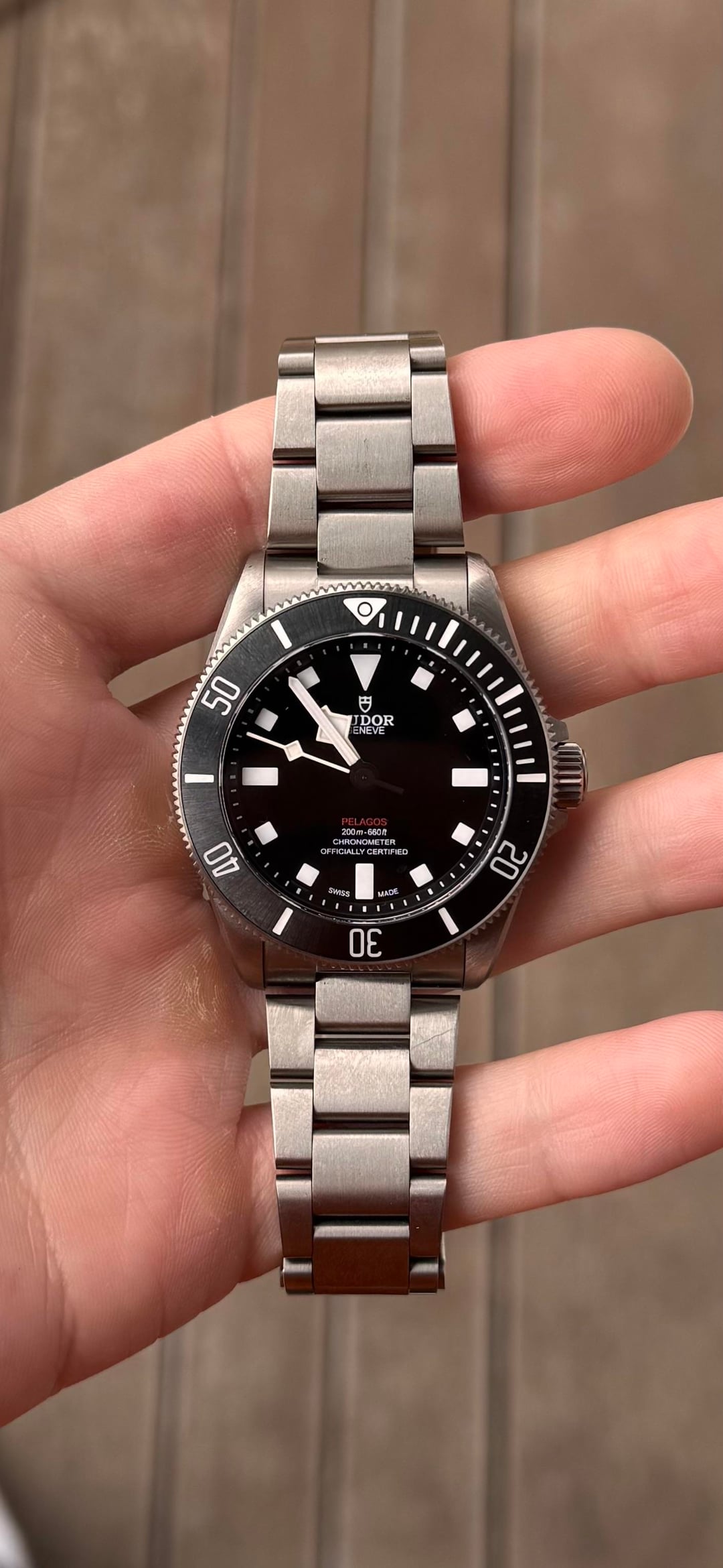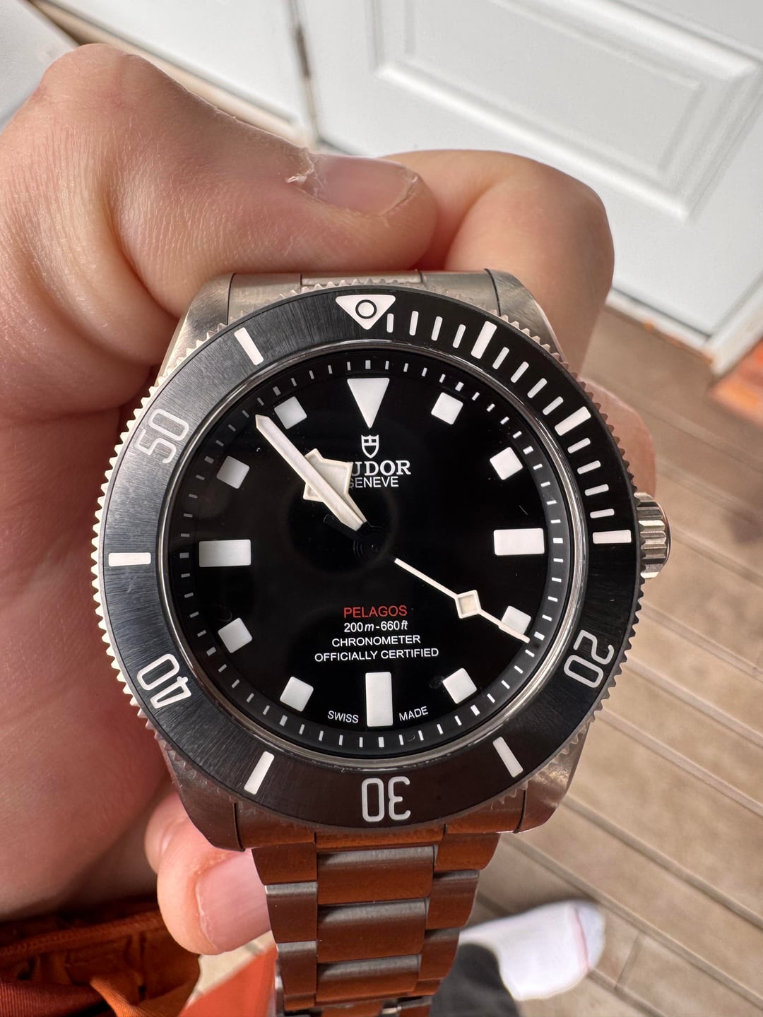 For sale is my 2025 full kit Tudor Pelagos 39 on bracelet with the extra rubber strap and strap extension. March of this year warranty. In very good condition, it’s not even a year old, with clean case, and bezel. Most notable wear is probably the clasp, and a hairline on the top right side. Photos are a good representation of the condition. An absolute beast of a watch, but it’s just not my style. A little too matte and utilitarian for my dainty little fancy boy watch taste. Wears great on my 6.5in wrist and the t-fit clasp allows for the perfect fit no matter what the weather is. I will dearly miss that. Due to the titanium, it feels way less bulky than the BB58 and is extremely comfortable. Price: $3800 shipped Trades: only in person LA area Timestamp: see last photo (the very last, not the second to last with the kit)