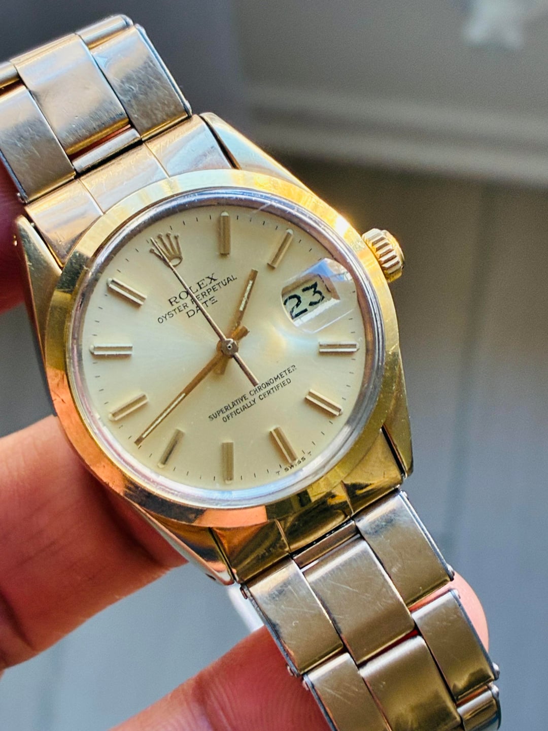 Parting w 1550 goldshelled Rolex Oysterdate Comes w full bracelet rivet edition very rare comb!!! Had it fully overhauled a few months back. Case is 34.5mm beefy case sharp lugs LA f2f 😷 Zell Venmo Wire 3350 takes it ! Ships USA 🇺🇸 only .