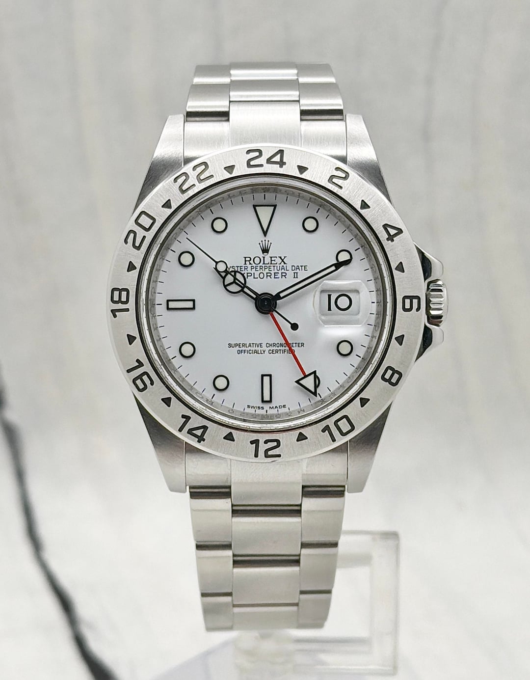 | Rolex Explorer II 40mm Polar White Steel Oyster Watch 16570 elegantswiss (1167) |