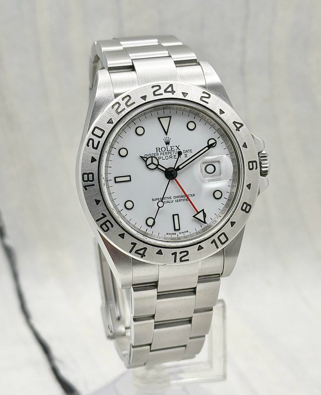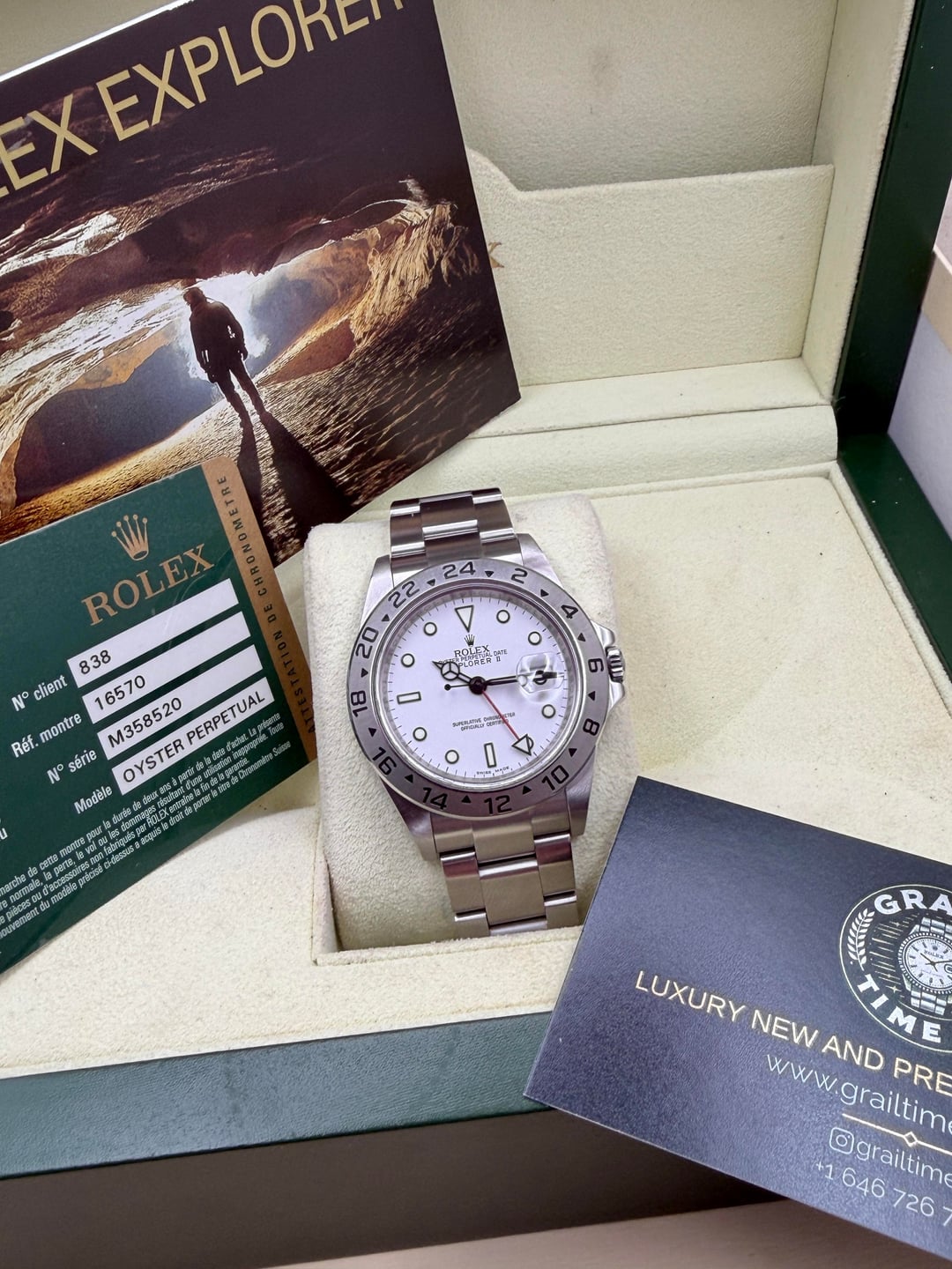 **\[WTS\] Rolex Explorer II "Polar" - 16570 - 2011 - Serviced** [MORE PICS](https://www.grailtimeco.com/rolex-explorer-ii-16570-polar-2011-m/) [YOUTUBE VIDEO](https://youtube.com/shorts/rKcH-DE31t8) [TIMESTAMP](https://imgur.com/HDlA1Dl) [TIMEGRAPHER STATS](https://imgur.com/jSAUPDJ) [INSTAGRAM](https://instagram.com/grailtimeco) **Pure Polar** This Rolex Explorer II from 2011 is the highly desirable late example, featuring the sought-after Polar dial paired with the upgraded 3186 movement. The improved GMT performance from the 3186 movement, along with the engraved rehaut, elevates this classic 40mm Explorer II into true collector territory. With its fixed 24-hour bezel, bold black markers and clean, highly legible layout, the Polar 16570 strikes the perfect balance between everyday wearability and serious tool-watch heritage. This Explorer II is in superb all round condition. Was looks to have been used very lightly. Watch has had a full movement service, including a pressure test, and is running to spec. Watch comes with original 2011 warranty card, inner and outer boxes, Explorer booklet and Grail Time Co watch roll. Watch is an M Serial. **$9,950** shipped Fedex next day, fully insured, to the USA or arrange pick up from Hoboken, NJ. Can ship internationally if you provide the label. Wire payment, zelle or paypal friends and family. Please feel free to contact via Reddit DM with any questions. **As per sub rule, please comment “PM” before sending a PM or DM.** Thanks Plenty of references available from Reddit Watch Exchange, Rolex Forums and on my Website. **Grail Time Co LLC**