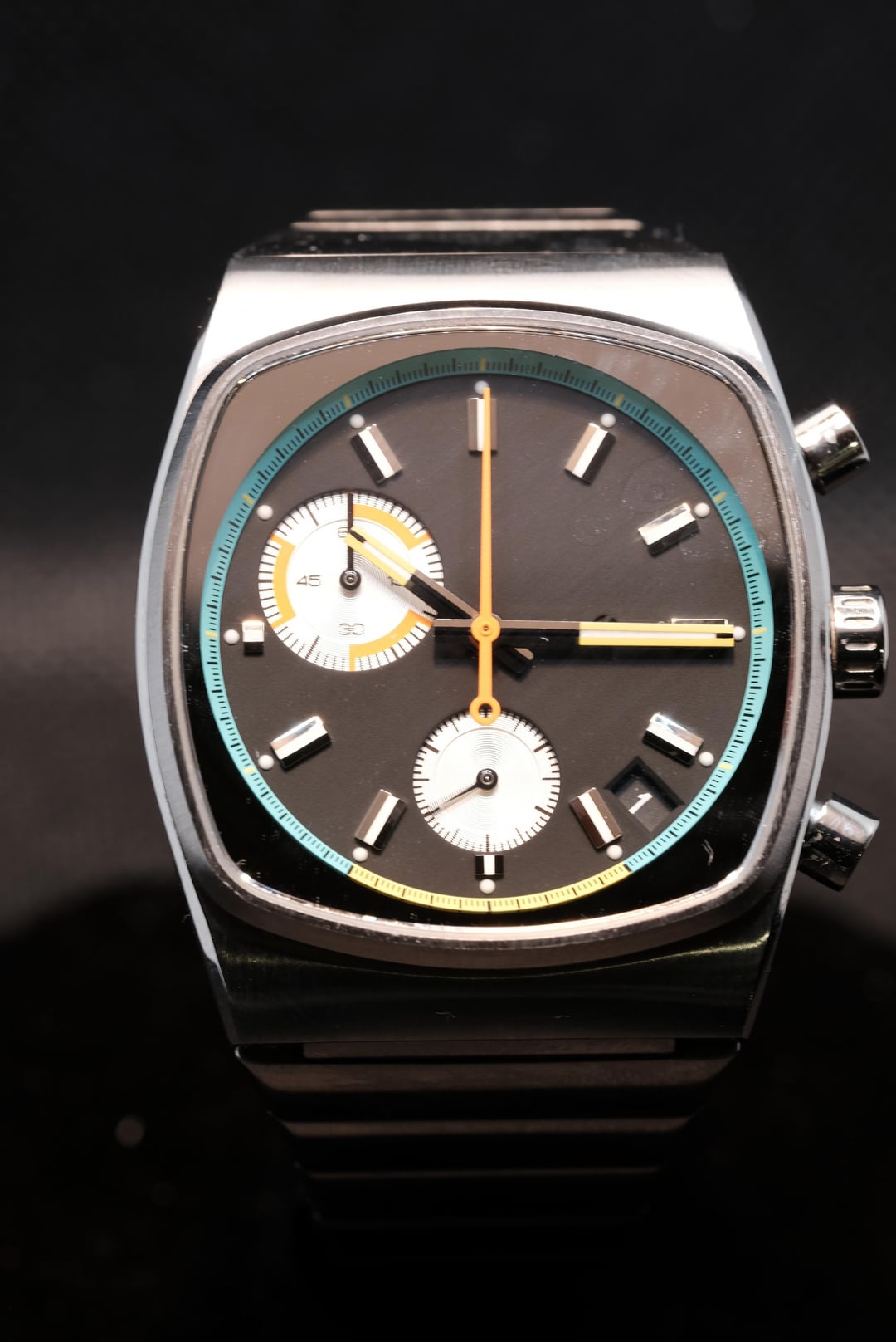 CASE DIAMETER: 36MM x 41.5MM CASE THICKNESS: 10.75MM LUG WIDTH: 19.85MM CRYSTAL: SAPPHIRE GLASS CASE MATERIAL: STAINLESS STEEL 316L CASEBACK: STAINLESS STEEL 316L BAND: STAINLESS STEEL, BRUSHED + POLISHED BUCKLE: FOLDING CLASP, MICRO-ADJUSTMENTS DIAL: BLACK MULTI-COLOR, RECESSED SUBDIALS WATER RESISTANCE: 5ATM (50 METERS) MOVEMENT: HYBRID VK68 MECA-QUARTZ CHRONOGRAPH This watch comes with the case, and box. The watch is in excellent condition, hardly worn, which is why I am selling it. The watch has a few light scuffs on the case and bracelet from normal wear. Crystal is free of any marks. Please see the photos for more details. [Photos and time stamp](https://drive.google.com/drive/folders/1C03JBLeJOYGz2xbSIYl8jjF9_vL_38VF?usp=sharing) Asking $365, insured CONT US shipping included. Watch ships from Boston. International shipping is at buyer's expense. Local meetup is an option in Boston area. I accept PayPal buyers G&S fee 4%), Venmo, Zelle, and Wise. Not looking for trades. Please see my other listings. No refunds unless the watch is misrepresented or lost in transit.