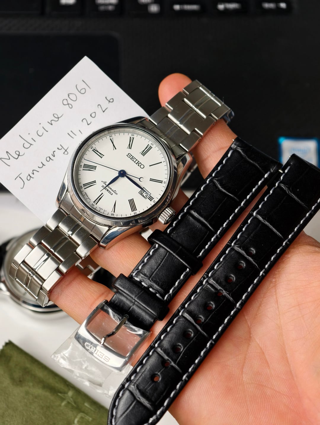 Timestamp & Photos: 👉 https://imgur.com/gallery/gGjA96m Condition: Pre-owned, in very good condition. Originally came on leather strap, currently fitted with a genuine Seiko stainless steel bracelet. Includes an unused handmade leather strap. Full box & papers, warranty card and accessories included. Specs: Case size: 40.5mm Thickness: 12mm Lug-to-lug: 44mm Crystal: Sapphire Water resistance: 5 ATM Movement: Seiko 6R15 automatic Jewels: 23 Power reserve: ~50 hours Dial: White enamel, Roman numerals Hands: Heat-blued Exhibition caseback Price: 💲 $480 🚚 Shipping: $60 💳 Payment: PayPal Friends & Family, or Goods & Services (+4.6% fee) 📍 Location: Japan 🇯🇵 — happy to ship worldwide Feel free to DM me if you have any questions or would like additional photos.