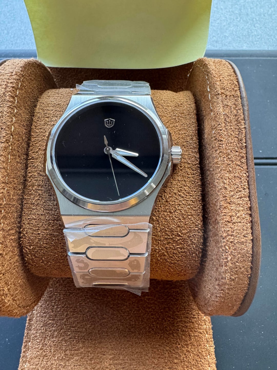 Up for sale is the Watchdives WD0016 featuring the "Musou Super Black" dial. I received this just 2 days ago, but unfortunately, it wears a bit too large for my wrist. The watch is in Brand New In Box (BNIB) condition. It is completely unworn and still has all the original factory protective stickers intact. The standout feature is the dial, which uses ultra-black coating technology to absorb nearly all light, creating a "black hole" effect that makes the hands appear to float in space. It’s a stunning piece for the price and punches way above its weight class in terms of visual impact. Specs: • Movement: Japan VH31 / VH60 Sweep Second Quartz Movement (smooth sweeping seconds hand) • Case Material: 316L Stainless Steel • Crystal: Sapphire with AR coating • Dial: Musou Super Black (Ultra-Light Absorbing) • Water Resistance: 200m • Condition: New with stickers Price: $209 + shipping Shipping: Within CONUS via USPS/UPS Payment: PayPal F&F, Zelle, or Venmo. Please comment on this post before sending a PM! Feel free to reach out with any questions.