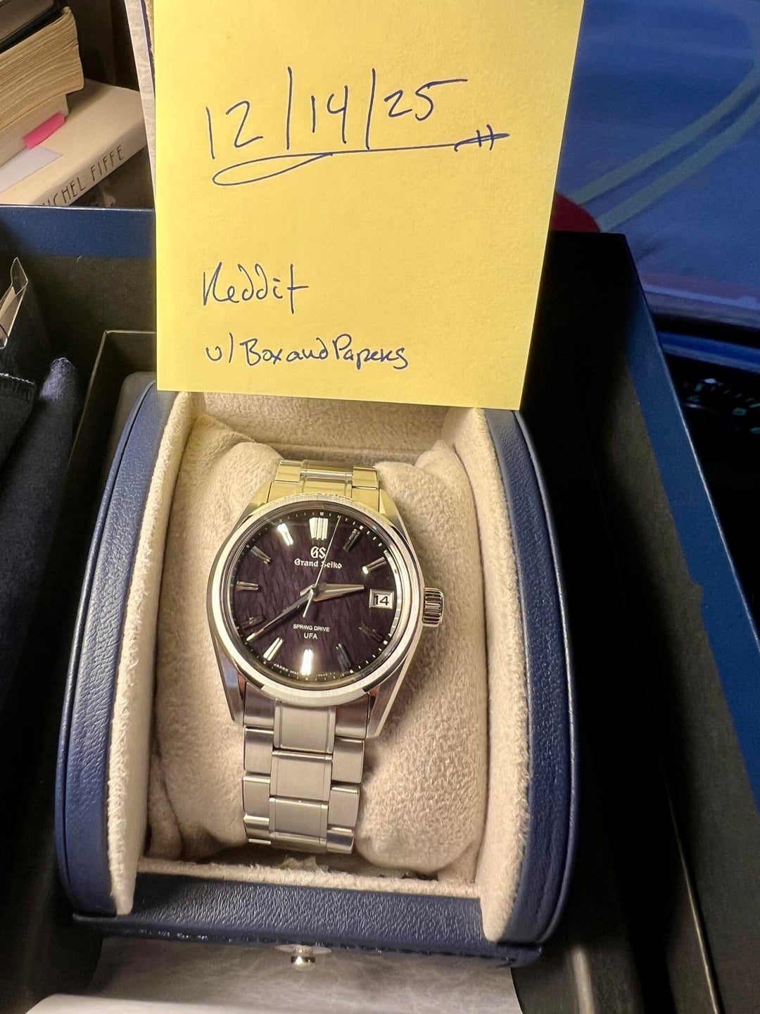 Grand Seiko 'Violet Dawn' SLGB005 Limited Edition of 1300 I am the original owner, only selling because I took delivery of this piece and now my grail watch has become available. Full set boxes and papers with warranty card stamped December 2025. This watch is incredible—my loss, your gain. This watch has not been worn, only resized. The condition is Like New. Tagged Photo: [https://www.reddit.com/media?url=https%3A%2F%2Fpreview.redd.it%2Fwts-grand-seiko-ufa-spring-drive-slgb005-limited-edition-v0-r4t0pwrlbuag1.jpg%3Fwidth%3D1080%26crop%3Dsmart%26auto%3Dwebp%26s%3D6c40ff78884e4103769e9f99f41a30ef9dda734d](https://www.reddit.com/media?url=https%3A%2F%2Fpreview.redd.it%2Fwts-grand-seiko-ufa-spring-drive-slgb005-limited-edition-v0-r4t0pwrlbuag1.jpg%3Fwidth%3D1080%26crop%3Dsmart%26auto%3Dwebp%26s%3D6c40ff78884e4103769e9f99f41a30ef9dda734d) From Grand Seiko: Powered by the Caliber 9RB2, the groundbreaking movement in this special watch receives the U.F.A. designation which stands for “Ultra Fine Accuracy,” this creation boasts an astounding annual rate of ±20 seconds, making it the most accurate wristwatch movement powered by a mainspring today. $8999 FIRM – USDC, Bank Transfer, Wire, BTC, or ETH ok Price includes insured shipping within CONUS via USPS Registered Priority mail. Located in the SF bay area and many watch trading references. Technical specifications: Grand Seiko UFA Spring Drive 'Violet Dawn' SLGB005 LE Case Material: Ever-Brilliant Steel Case Diameter: 37.0mm Thickness 11.4mm Lug-to-lug 44.3mm Lug Width: 20mm Caliber: 9RB2 Accuracy: ±20 seconds per year (±3 seconds per month) Power Reserve: 72 hours (3 days) Water-resistance: 100m Magnetic resistance: 4,800 A/m Reference: SLGB005G