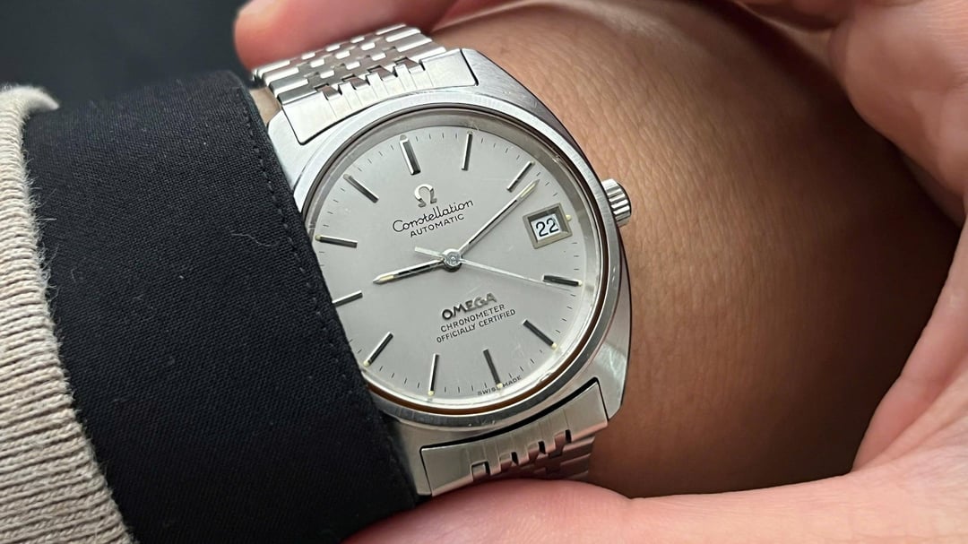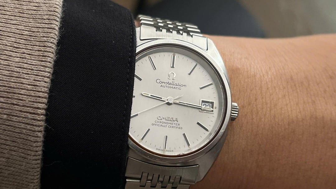 Hi everyone, For sale is a very clean **1971 Omega Constellation Chronometer** in the classic **C-Case**: **ref. 168.0056** with the **cal. 1011**. The highlight here is the **excellent, clean dial** paired with **original period correct bracelet**. The watch was **serviced in Dec 2025**, and it presents beautifully on the wrist. The only notable negative: **a few scratches on the crystal** (shown in photos). **Condition** **Dial:** Excellent, clean, and crisp. Printing and indices look sharp. **Hands:** Original hands, light oxidation sign on the second hand that is visible under magnification. **Case:** **Unpolished** with factory brush finishes, sharp edges. Some hairline scratches. **Crystal:** Original crystal with a few scratches. **Crown:** Original Omega crown. **Movement:** Omega **Cal. 1011**, **serviced Dec 2025**. **Bracelet:** **Original Omega bracelet ref. 2063** with **endlinks 056,** fits up to \~**8" wrist**. **Specs** * Brand: Omega * Model: Constellation Chronometer (C-Case) * Reference: 168.0056 * Year: 1971 * Movement: Cal. 1011 (automatic) * Case: Stainless steel * Case size: **35mm** (excluding crown) * Lug width: **19mm** * Bracelet: Omega **2063** / endlinks **056** (fits \~8") **Price: $1,050 worldwide shipping included** **Payment & Terms** Payment via Wise, bank transfer, crypto, or PayPal F&F (G&S also doable with fee on the buyer's side of \~4.5%). No return. Photos are part of the description. please ask for as many specific pictures as needed before buying. I'm more than happy to answer any questions/requests about the listing or about me. Please feel free to PM. **Vintage note:** Vintage watches are **not waterproof**. Even if gaskets have been replaced, these watches were not built for modern water resistance—please keep it away from water, humidity, and steam.