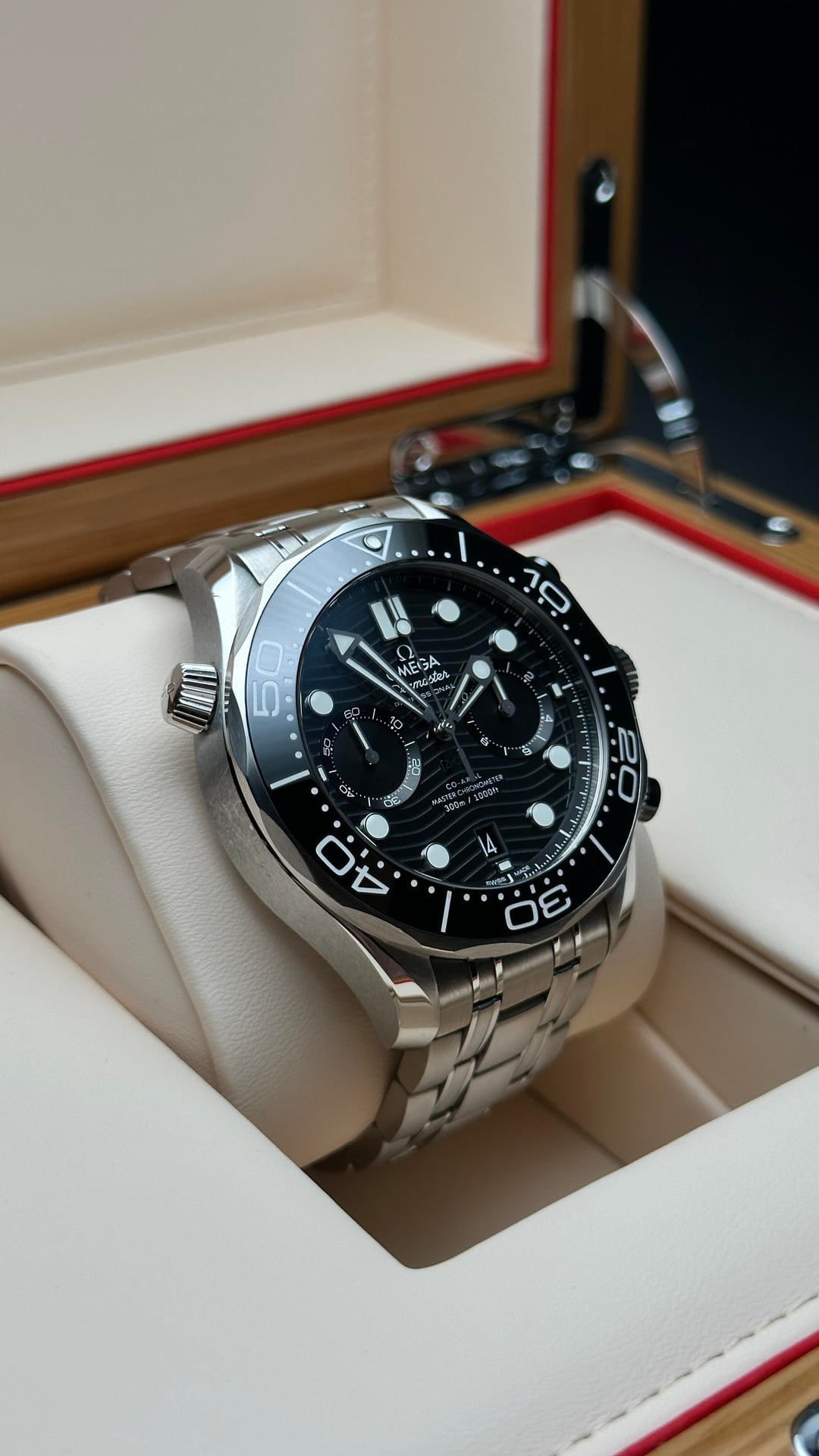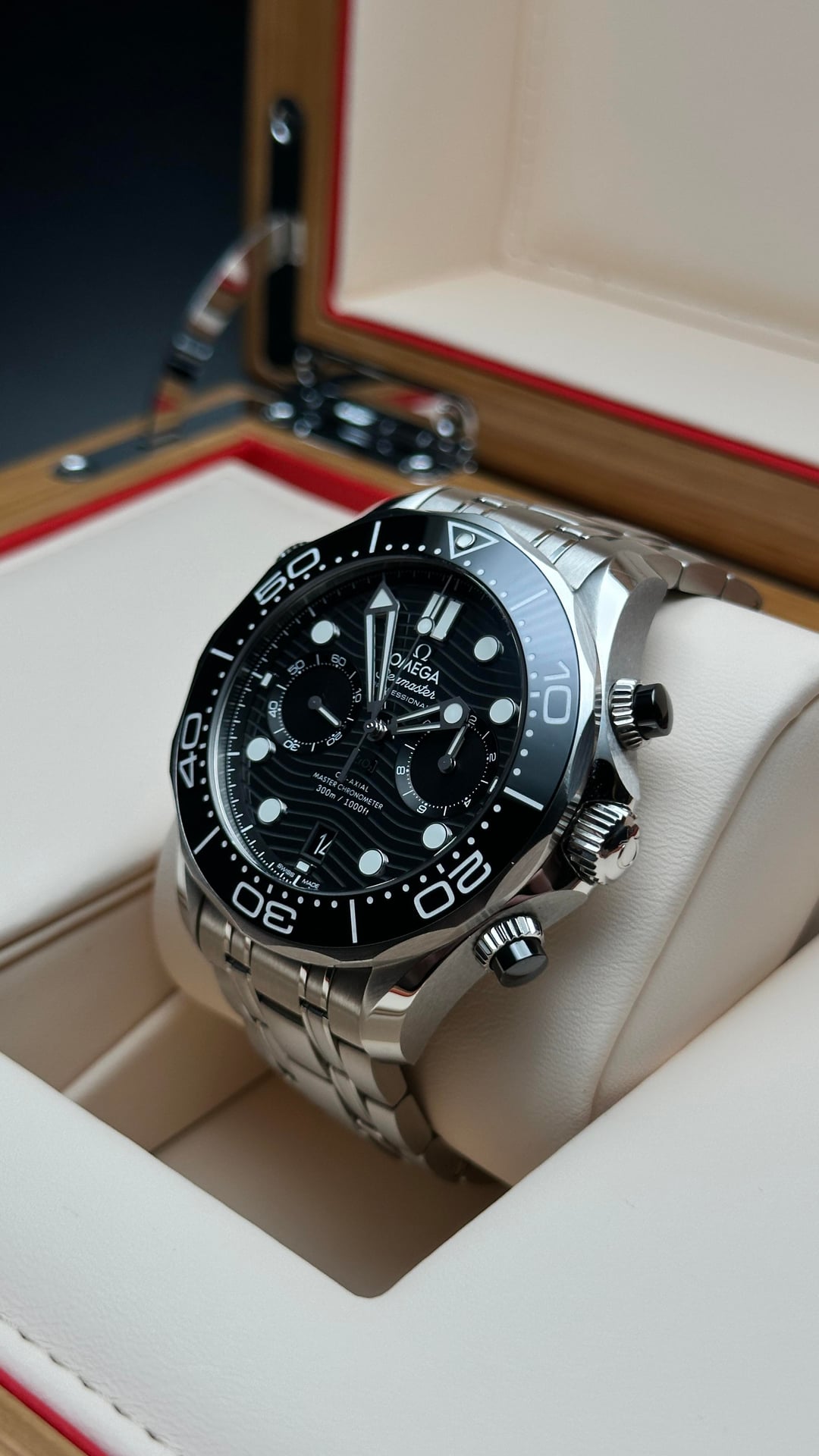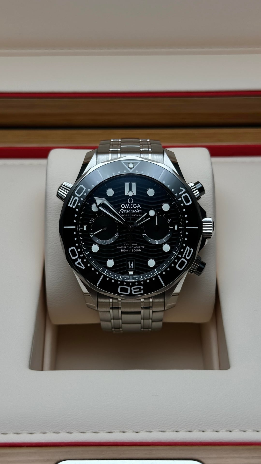 OMEGA Seamaster Diver 300M Chronograph Ref: 210.30.44.51.01.001 Watch is in good pre-owned condition with wear to the case sides and bracelet. Crystal and bezel are clean. Includes: • Inner box • Outer box • All 3 cards (warranty card dated 2021) • Operation manual • Dust bag 💰 $5,250 + label 📍 Located in Roseville, CA — in-person deal welcome ✅ Plenty of references available via FB groups & Reddit Feel free to PM with any questions or requests for additional photos.
