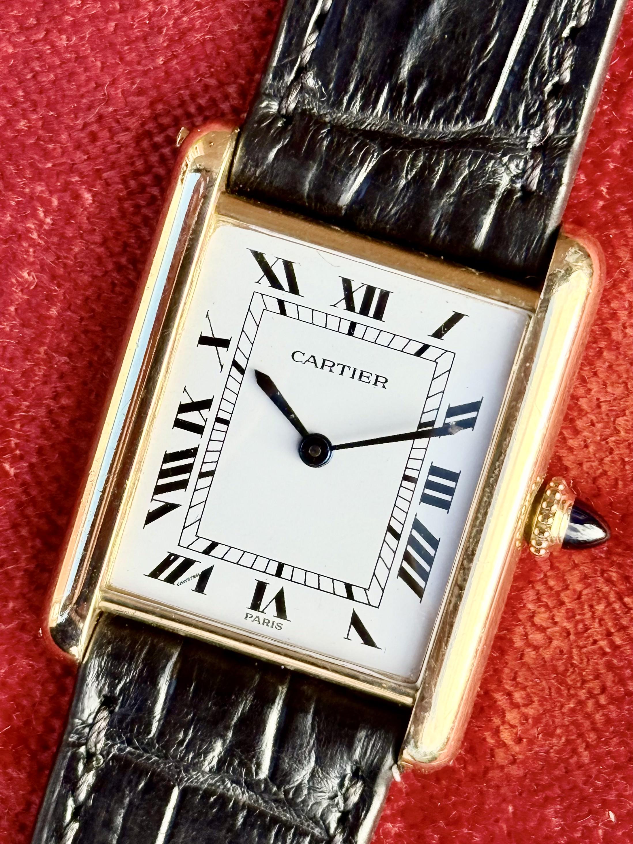 | VINTAGE MUST DE CARTIER 20MM TANK MANUAL WIND 18K VERMEIL WRIST WATCH, SERVICED! heygreatwatch (6410) |