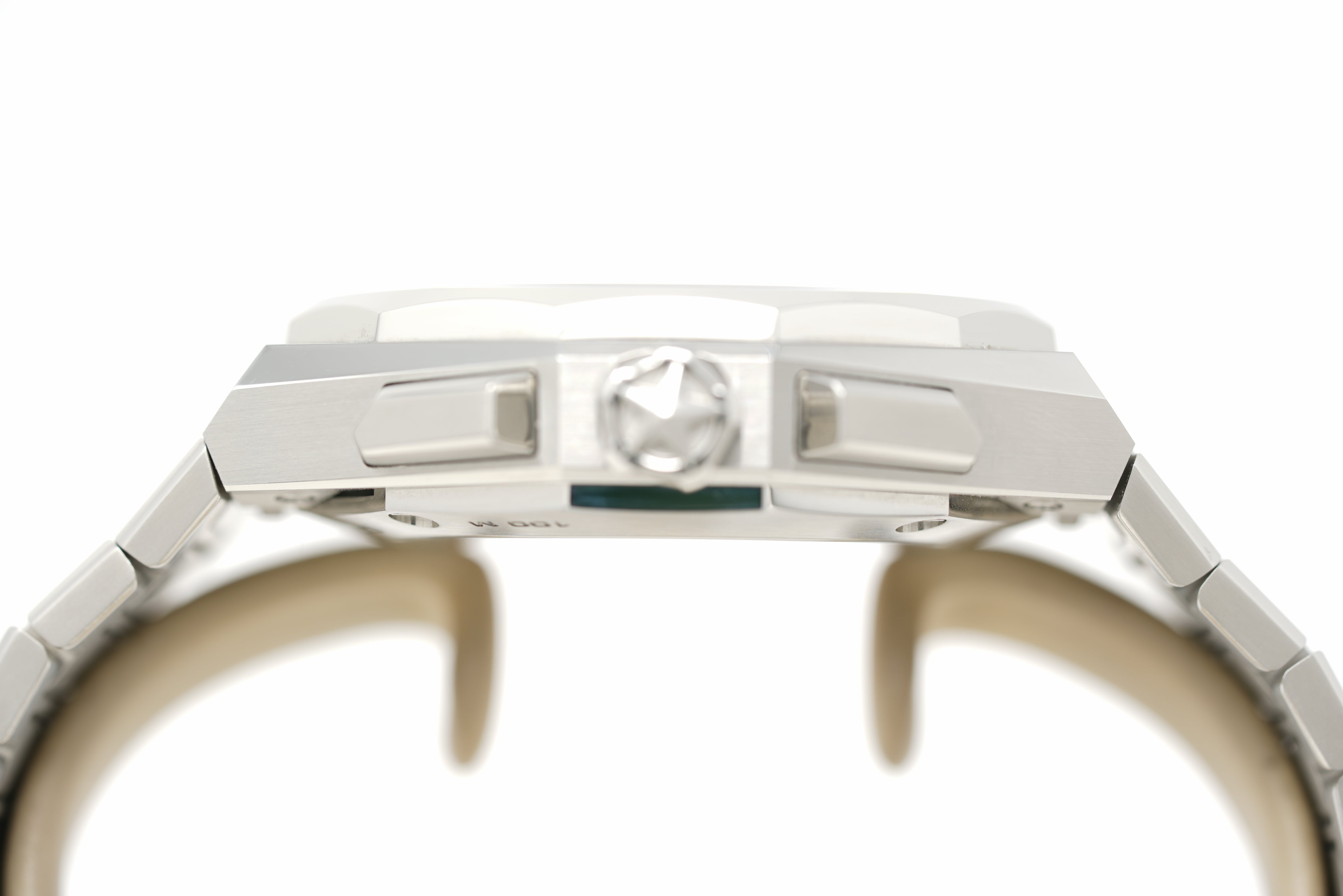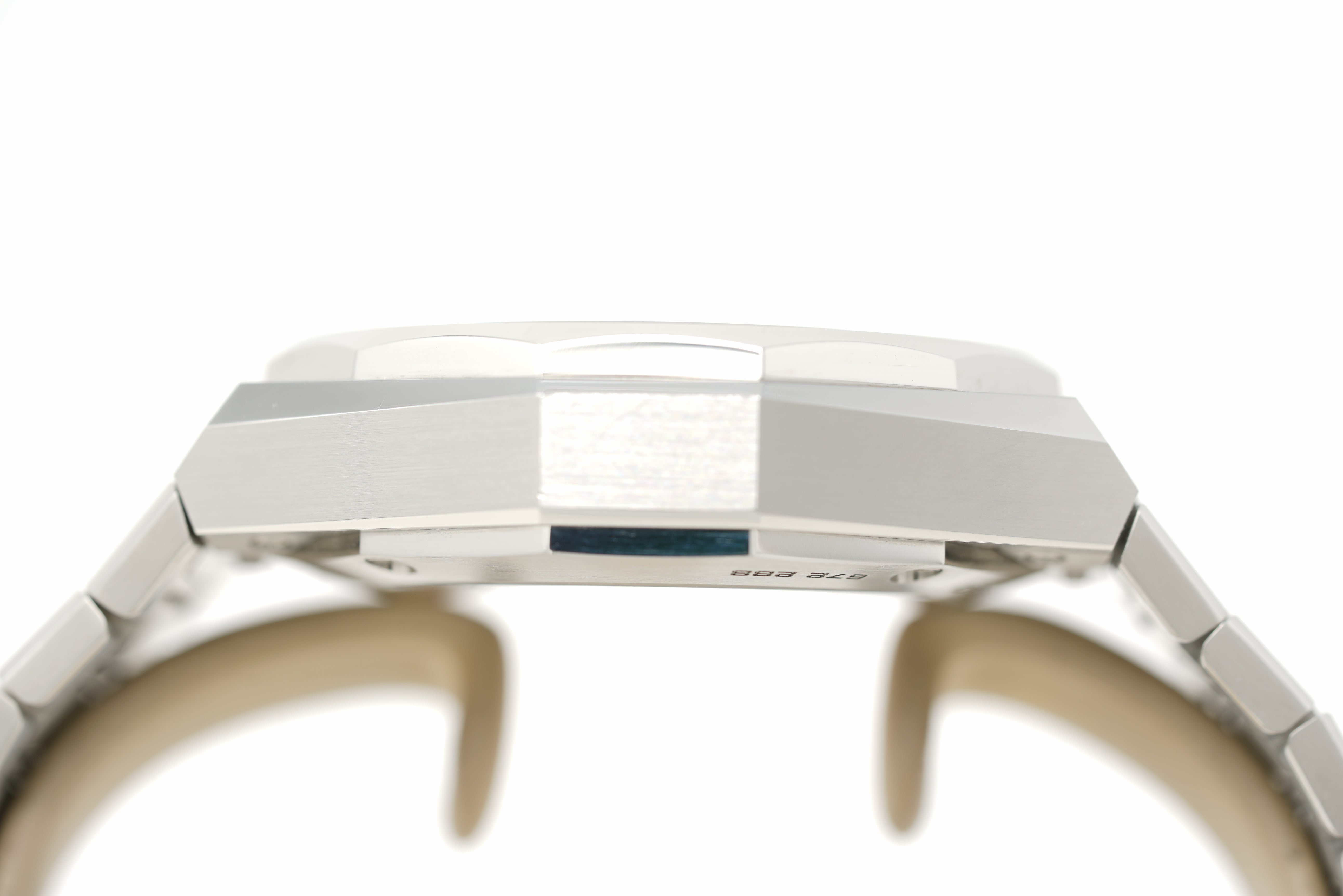 This pre-owned watch is in 87% condition due to slight marks on the bezel and throughout the case. The bracelet is in 87% condition due to slight marks on the links and clasp. Also included is an OEM strap in 93% condition due to slight wear and marks on the clasp. Originally purchased in March 2025, this watch comes with its inner and outer box, instruction manual, warranty card, hangtag, and the one-year Topper Pre-Owned Select warranty.