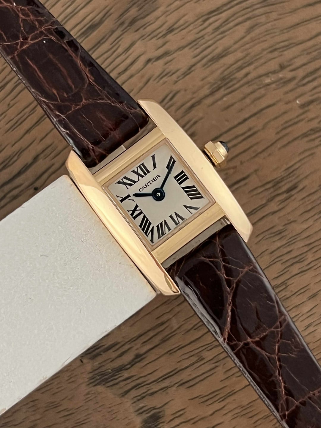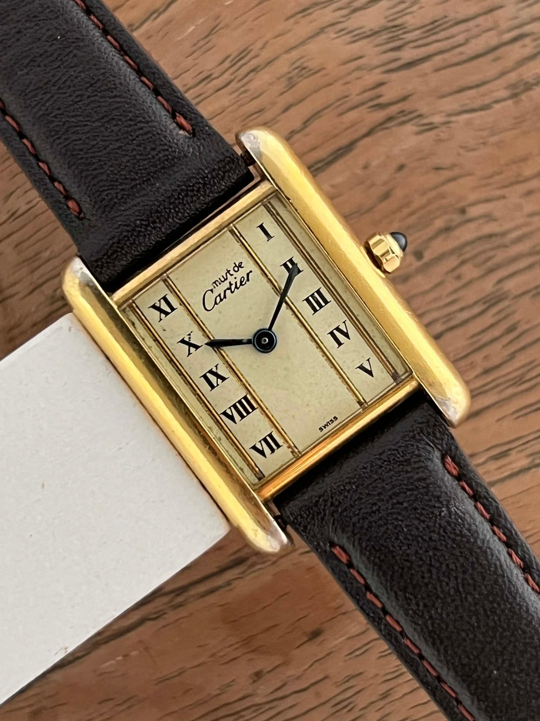 **Hello WatchExchange,** I'm back today to offer you a new haul of (mostly) vintage Cartier's. The holidays were good to me on Chrono24, but it's back to Reddit! As always, every watch shown will be keeping accurate time- checked and tested by yours truly. Battery swaps were made prior to the listing using Renata batteries wherever applicable. This time, we have 3 manual winding tank's, all from the 80's. The midsized trinity MW tank was completely overhauled last month by a professional watchmaker while the other two smaller MW tanks did not need overhauling and are keeping very accurate time. More specific information available in the details. **For reference, I am a 7" wrist.** **Please note that the lighting used to photograph these watches was intentionally chosen to highlight the wear and does not reflect how the watches will look on wrist. The watches will typically look much better in softer lighting.** As always, I will be as transparent and straightforward as possible with potential buyers. If you have any questions, please feel free to message me. I'm always happy to chat! For references, please message. [**Group Timestamp**](https://imgur.com/a/u-lovemakesasoundsoul-r-watchexchange-1-18-26-sTadVC6)
