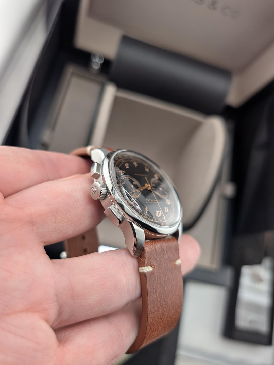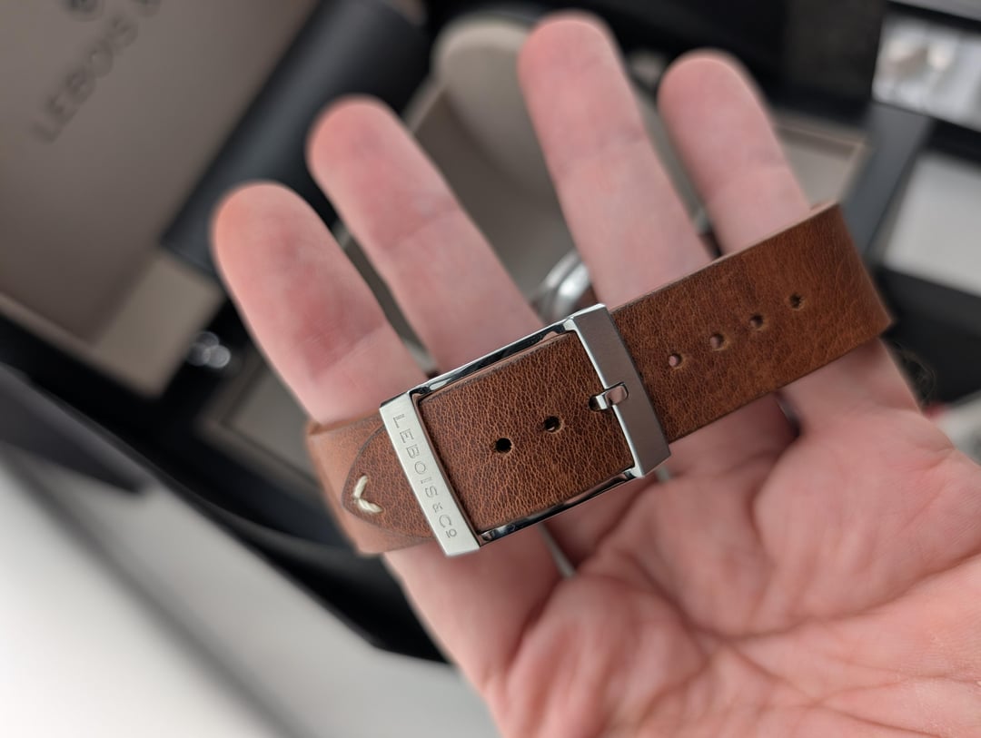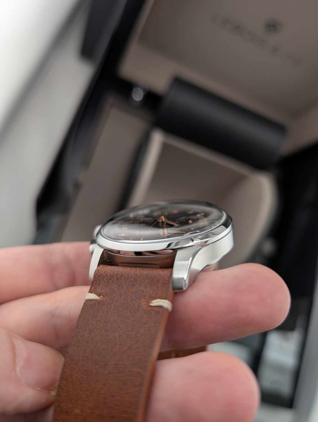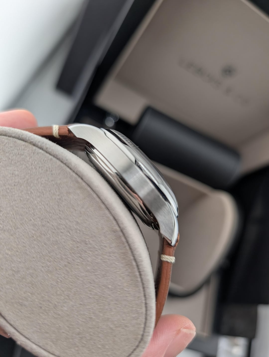 Selling my Lebois & Co Heritage Chronograph, style #324.406. Lebois calls this reference 'Script' because of the Breguet numerals on the dial. Watch is in excellent 99% condition, lightly worn, with the only signs of wear being a couple of very faint hairline scratches on the high-polished bezel. The scratches don't show up well on camera and aren't deep enough to feel with a fingernail. No dents, dings, or damage. Full kit with box and papers, 2024 warranty. Comes with an extra Lebois & Co suede brown strap and buckle. I'm the original owner, selling because I've only worn this watch 4 or 5 times in the time I've owned it. This watch has excellent wearable dimensions for a mechanical chronograph if you have medium or small sized wrists, with a 39mm case width, 47mm lug to lug, and 13mm thick. Asking for $2400 net to me shipped insured, US seller looking for US sales only. Not looking for trades. I accept payment through wire, Zelle, or Paypal (F&F only unless you have significant transaction feedback). I mostly sell on eBay where I have 100% positive feedback with over 1000 transactions, which I'm happy to prove to anyone worried about buying from me. Timestamp: [https://imgur.com/a/RDmXjc5](https://imgur.com/a/RDmXjc5)