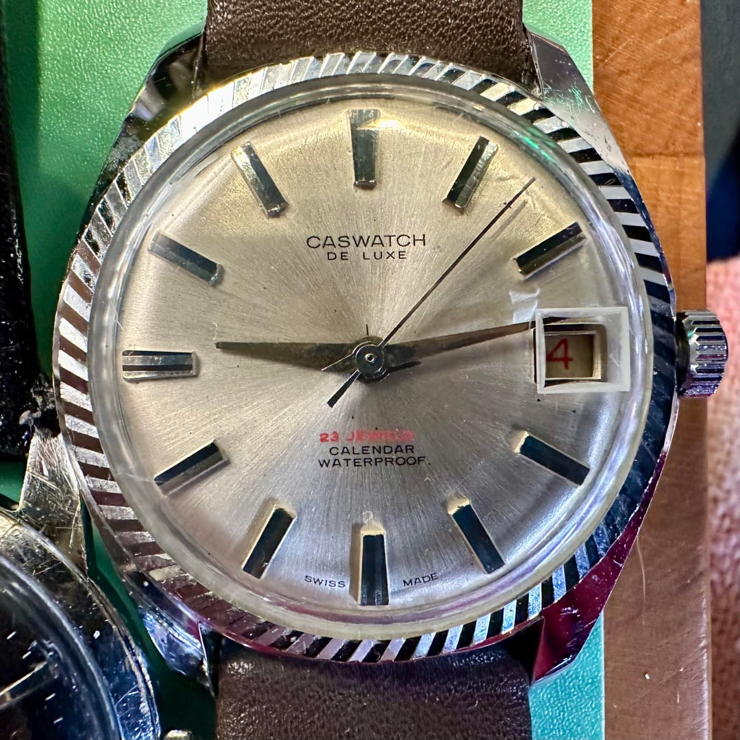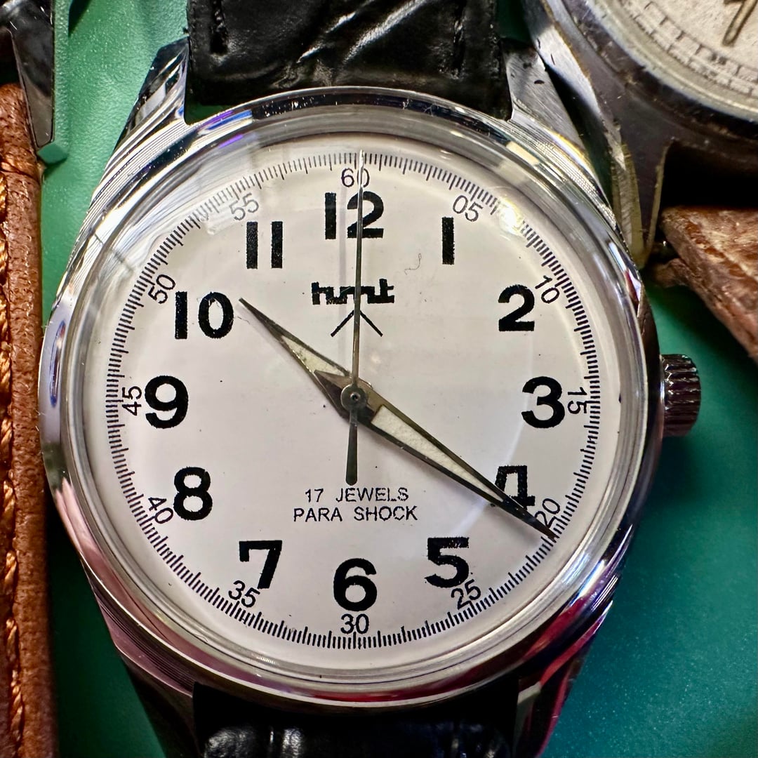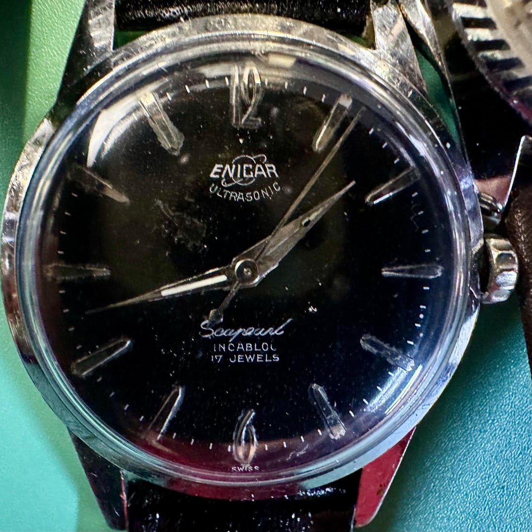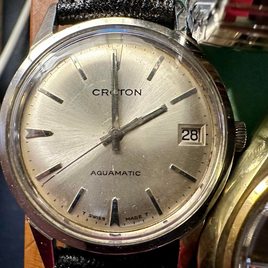 Hey r/Watchexchange! Clearing out a bulk lot of vintage mechanical pieces. This is a "collector's starter kit" or "reseller lot" featuring a heavy-hitter Enicar and several unique historical pieces. The Lineup (Left to Right, Top to Bottom): 1. Croton Aquamatic - $99 • Movement: Swiss Automatic. • Extra Info: Built for ruggedness; Croton famously supplied Admiral Richard Byrd’s 1955 Antarctic expedition. 2. Wakmann Incabloc - $89 • Movement: Swiss Manual. • Extra Info: The Breitling Connection. Wakmann was Breitling’s official U.S. partner. They shared components and designs to bypass U.S. import duties, making this a "stealth" Breitling-adjacent piece. 3. Le Gant (Montgomery Ward) - $69 • Movement: Japanese Mechanical. • Extra Info: While higher-end Le Gants used Swiss movements (like Zenith), this Japanese-heart model represents the reliable, robust "workhorse" era of 1970s department store contracts. 4. Westclox 17J - $59 • Movement: Manual Wind. • Extra Info: A classic mid-century American-market staple. Clean, reliable, and perfectly sized for a vintage aesthetic. 5. HMT Para Shock - $59 • Movement: Manual Wind (based on Citizen 0201). • Extra Info: India's legendary "Watch of the Nation." These are celebrated for being nearly indestructible in high-humidity climates. 6. Milus Shockproof - $89 • Movement: Swiss Manual. • Extra Info: The "Life Barter" Connection. Milus "Snow Star" watches were part of survival kits for WWII US Navy pilots to be used as currency if they were shot down. 7. Stabilis (Marshall Field & Co.) - $79 • Movement: Manual Wind. • Extra Info: The Retail Icon. This was the house brand for the legendary Marshall Field’s in Chicago. They used high-quality contracted movements to provide luxury Swiss watches to their elite shoppers. 8. Citizen Homer Date - $129 • Movement: Japanese Manual, 17J. • Extra Info: The Homer was the official watch of the Japanese National Railways. This "Para 40M Water" version is a highly accurate, sought-after vintage tool watch. 9. Cortina 17J - $59 • Movement: Manual Wind. • Extra Info: Elegant Breguet-style numerals with a sub-seconds dial. The peak of 1960s dress watch design. 10. Camy - $69 • Movement: Swiss Manual. • Extra Info: The Raymond Weil Connection. Raymond Weil spent 26 years at Camy and eventually led the company before starting his own namesake brand. 11. Enicar Ultrasonic Seapearl - $109 • Movement: Swiss Manual. • Extra Info: The Star of the Lot. Seapearls were officially tested by the US Navy SEALs in the late 50s alongside Rolex and Blancpain. The "Ultrasonic" refers to Enicar’s signature lab-cleaning process. 12. Caswatch De Luxe - $89 • Movement: 23J Swiss Ebauche (Automatic). • Extra Info: A serious sleeper. It houses a high-jewel Swiss Ebauche inside a classic "Datejust" style case with a fluted bezel and date magnifier. Condition: All mechanical. All are currently running, but service history is unknown. Sold as-is. Sales info: Shipping $10 flat USPS in CONUS PayPal or Venmo F&F (G&S add 5% for established users) Happy to discount for multiple purchases, or make a reasonable offer on the entire lot!
