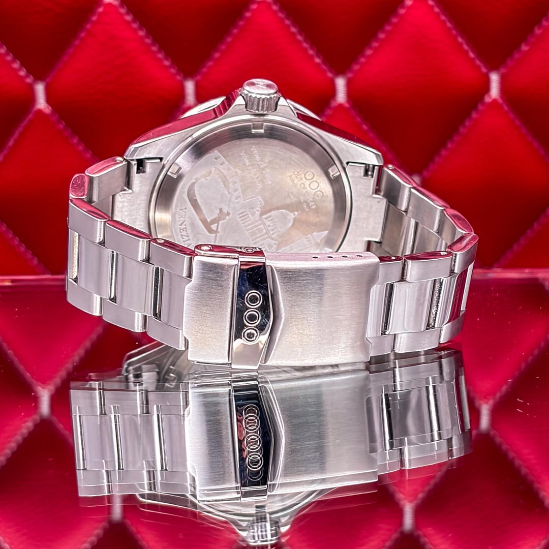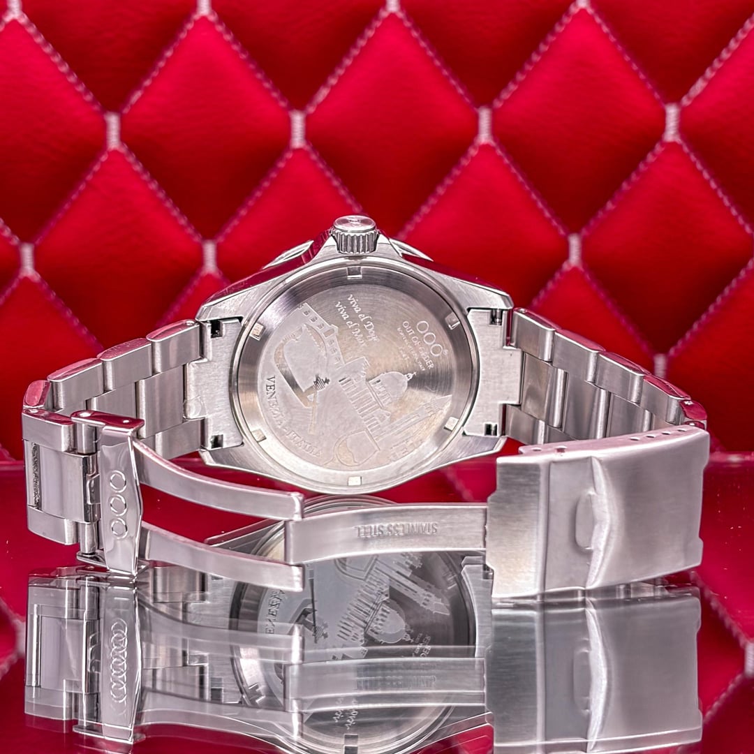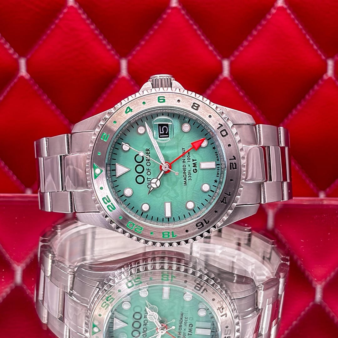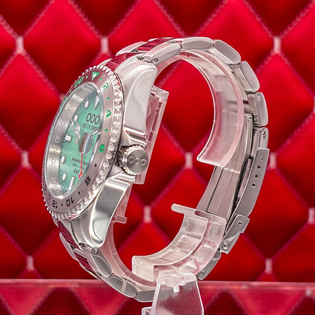 🏒🥅🚨 Out of Order GMT Venezia Ultra Brushed - Swiss Made - Full Set - 2025 This is the Out of Order GMT Venezia Ultra Brushed. This is the "Swiss Made" version featuring the Swiss Ronda 515 24h Quartz movement. It features OOO’s signature "Damaged in Italy" aesthetic with a unique ultra-brushed 316L stainless steel case. The highlight is the green dial with a hidden luminescent map of Venice’s neighborhoods that glows in the dark. The watch is in good pre-owned condition and is ready for a new home. 💰 Price: 💲310 USD Condition & Photography Please review all photos for the most accurate representation of this watch's condition. Our macro photography is designed to capture every detail, including the smallest imperfections, ensuring you can buy with complete confidence. Shipping & Service We ship fully insured overnight via FedEx for your peace of mind. We are happy to arrange a video call to show the watch and answer any questions—just reach out anytime. We guarantee the authenticity and accuracy of all our timepieces. Your satisfaction is our highest priority, and we strive for a smooth, transparent, and 100% positive transaction. As a dedicated hockey coach and passionate timepiece collector (@pucks\_timepieces), I've spent years immersed in the world of horology. I now combine this passion with my hockey-playing daughters, and together we create the unique presentations you see here. Our photography is inspired by contemporary artists like KAWS, Banksy, Joan Cornellà, Death NYC, and Shepard Fairey. This artistic approach adds a distinctive, creative character to how each watch is presented. When you purchase from me, you can expect a seamless experience. I'm highly responsive and happy to provide extra photos or details to ensure you feel great about your purchase. Timestamps: https://drive.google.com/file/d/19peey\_rYJCx8dJighrKy5URXQuICvoKF/view?usp=sharing & https://drive.google.com/file/d/1BiAMFAXyYQq3MwJeGXZFlq4mv4cWzfQK/view?usp=sharing