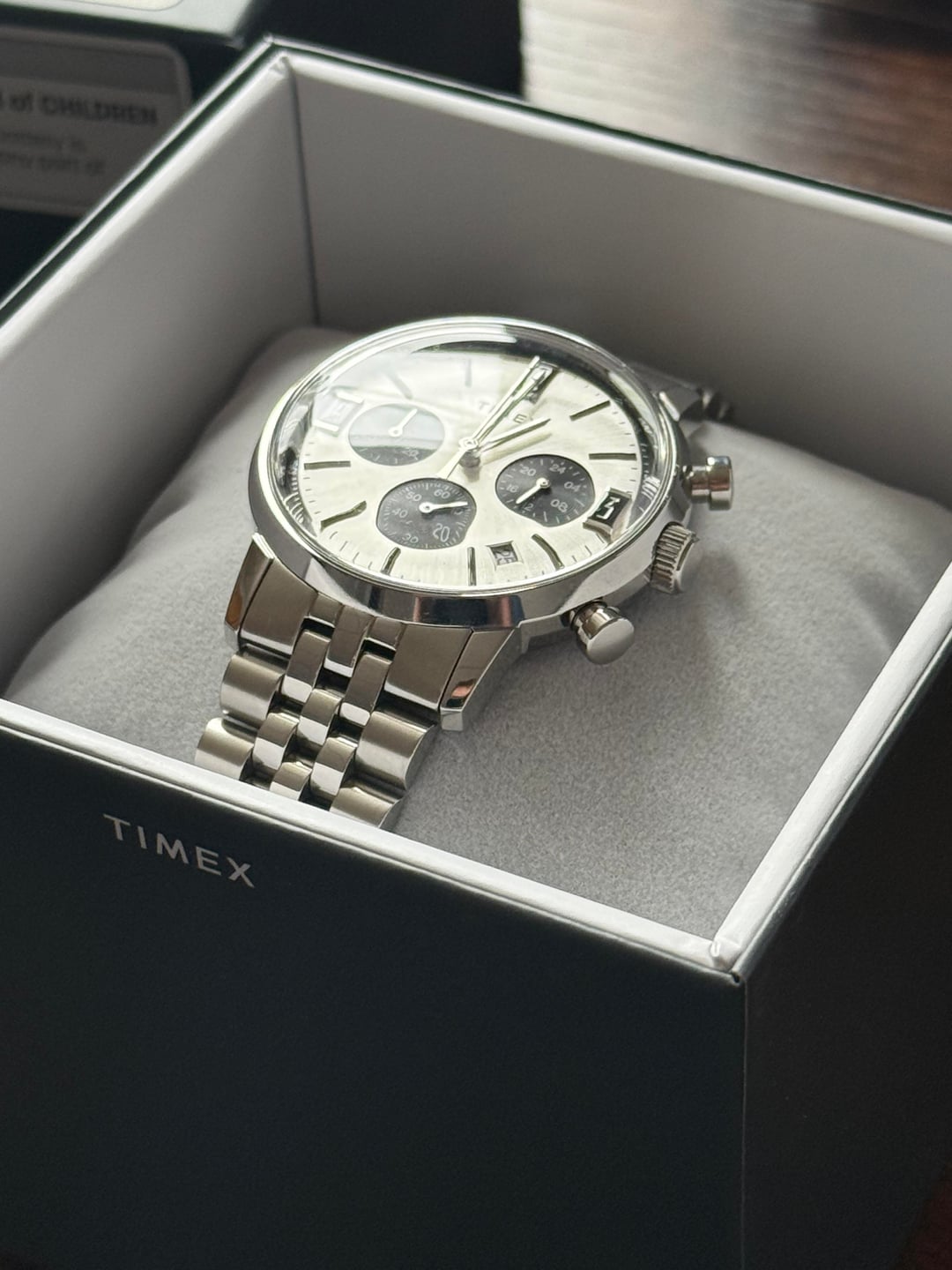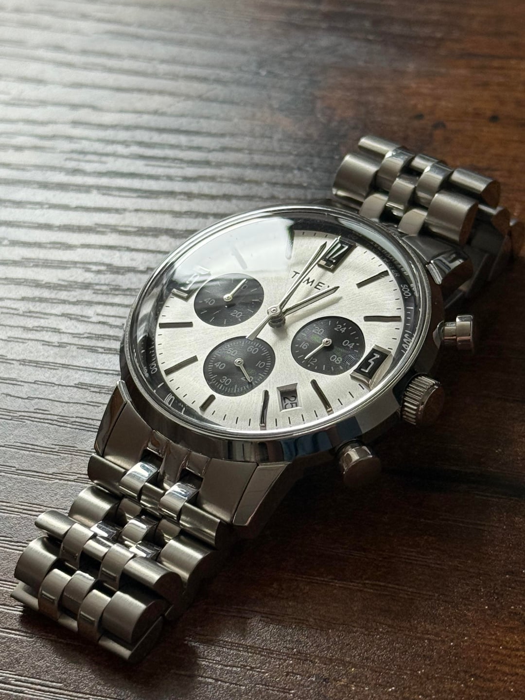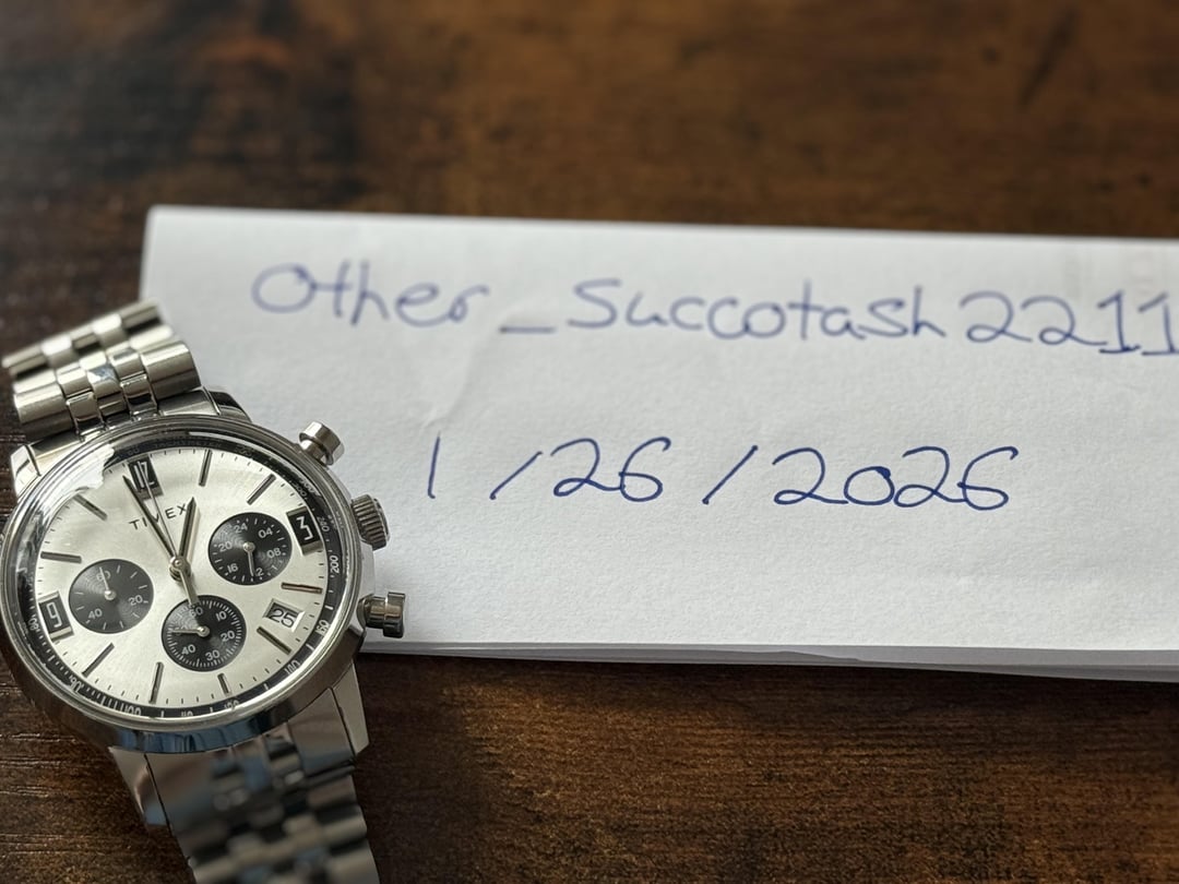 Looking to sell my Timex Marlin Chronograph. It's honestly a really nice watch - great dimensions/feel/bracelet, I just don't wear it much. It has been on wrist less than 5 times with no scratches/issues I can find. Purchased in October 2025. Comes with the watch, original box + sleeve, all bracelet links.