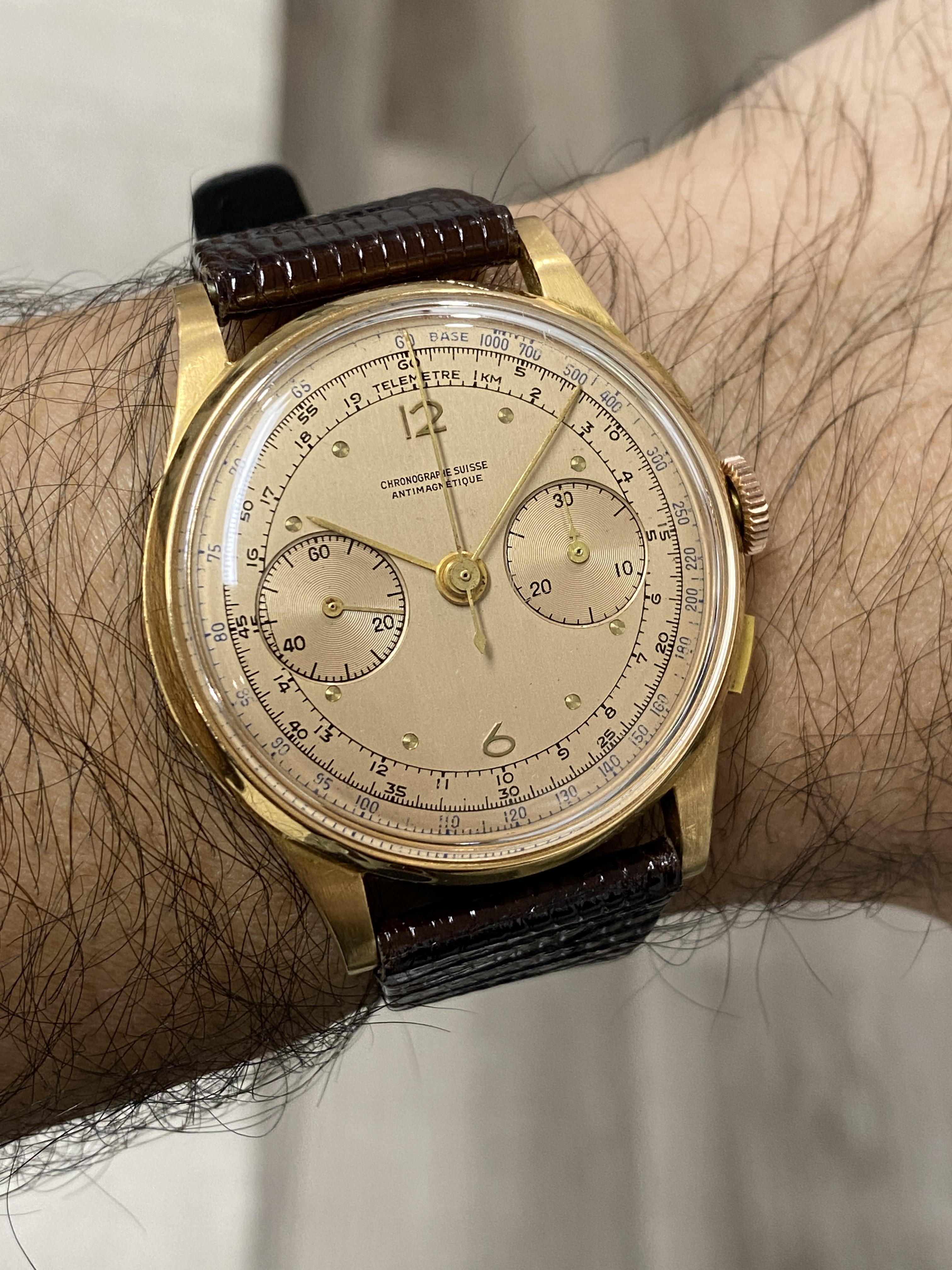 Hello All - I am putting for sale - Chronograph Suisse. 18K Solid Gold. Very nice. AM strap. Salmon Dial. I am asking $2450 + shipping . 📷 More Pics: [https://www.dropbox.com/scl/fo/74l4c6nanxpa0ll2xy1sy/AFHgnk5TYmNjUNem54m13s4?rlkey=7dbns9daor4buwl0twfejeskw&st=u8y40dqu&dl=0](https://www.dropbox.com/scl/fo/74l4c6nanxpa0ll2xy1sy/AFHgnk5TYmNjUNem54m13s4?rlkey=7dbns9daor4buwl0twfejeskw&st=u8y40dqu&dl=0) 📆 Timestamp: [https://www.dropbox.com/scl/fi/ccli9budl5hfcy1cwev8i/IMG\_5780.JPG?rlkey=k2wa4dd47c3avtaknngz07ge3&st=ccq6rk09&dl=0](https://www.dropbox.com/scl/fi/ccli9budl5hfcy1cwev8i/IMG_5780.JPG?rlkey=k2wa4dd47c3avtaknngz07ge3&st=ccq6rk09&dl=0) Watch located in NJ USA. All my listings here: [https://www.watchrecon.com/?query=watchex\_enterprises&last\_days=0](https://www.watchrecon.com/?query=watchex_enterprises&last_days=0) watchex\_enterprises - WatchRecon I am very comfortable doing a facetime to show the watch if needed. Please PM me for any questions that you may have. I am certain it will go to a good home. Thanks for looking. \*\* 🛡️Buy with Confidence!! 700+ references. \*\* ⭐️Checkout my profile for other amazing watches. \*\* 📦All packages are shipped Fedex with insurance. \*\* 🌎Shipping accepted globally.